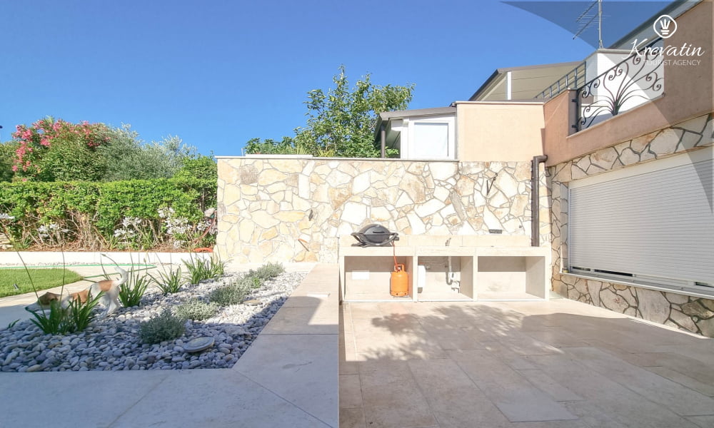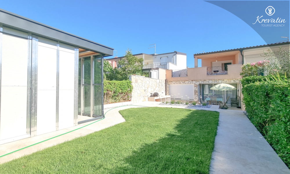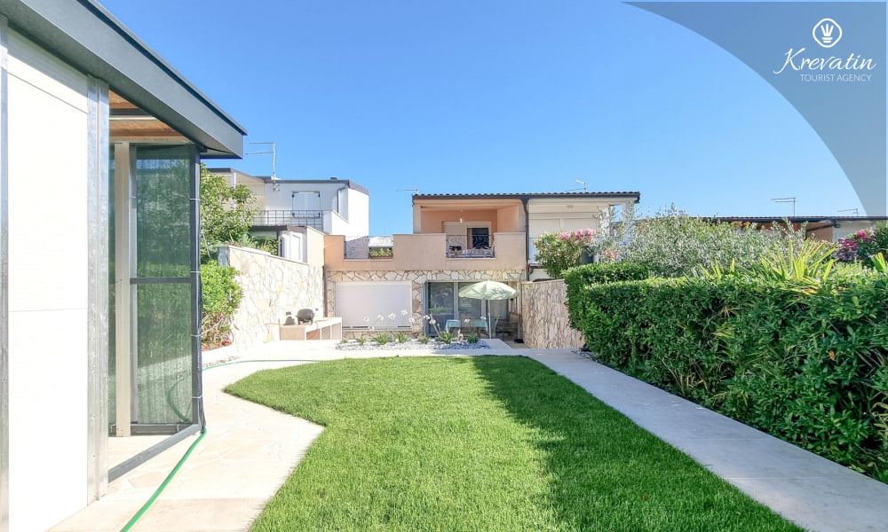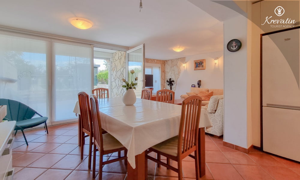 Dieses schöne Ferienhaus für bis zu 6 Personen befindet sich auf zwei Etagen: im Erdgeschoss gibt es ein großes Wohnzimmer, eine Küche mit Esszimmer, ein Schlafzimmer mit zwei Stockbetten und ein Badezimmer. Ein Doppelzimmer befindet sich auf der ersten Etage mit Ausgang auf Balkon. Die Küche ist mit Elektroherd, Backofen, Kühlschrank, Mikrowelle und Kaffeemaschine ausgestattet. Es gibt einen schönen Garten und eine Terrasse mit Grillplatz zur verfügung. Inklusive sind SAT-TV und Bettwäsche. Haustiere sind willkommen gegen Gebühr.