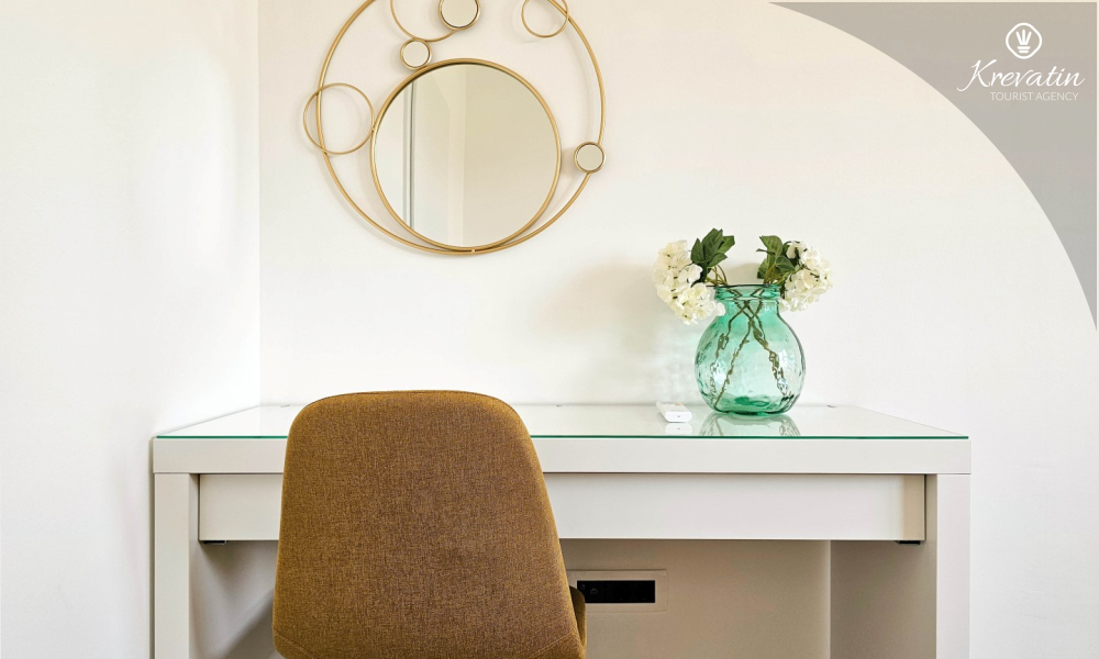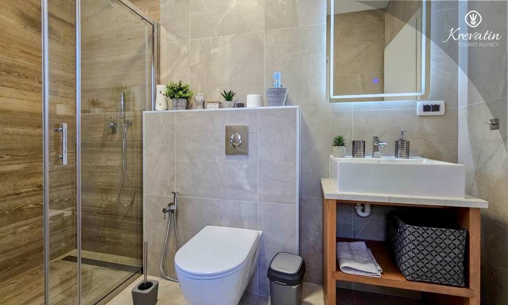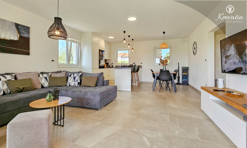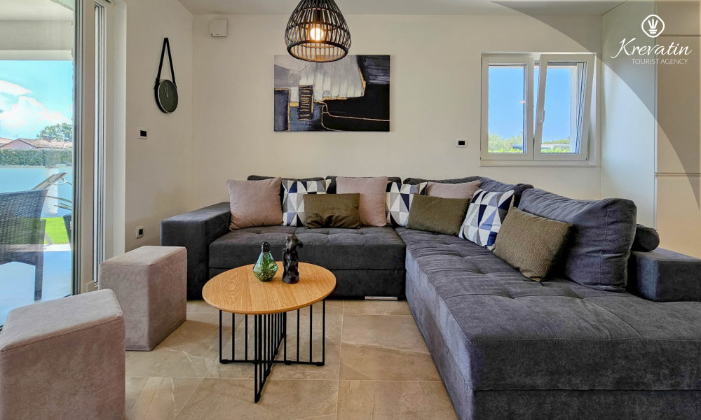 Im Inneren der Villa finden Sie 2 komfortable Schlafzimmer und 2 moderne Badezimmer. Das Wohnzimmer ist geräumig und mit einem Sofa ausgestattet. Hier können Sie entspannen und Zeit mit Familie oder Freunden verbringen.