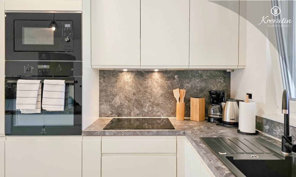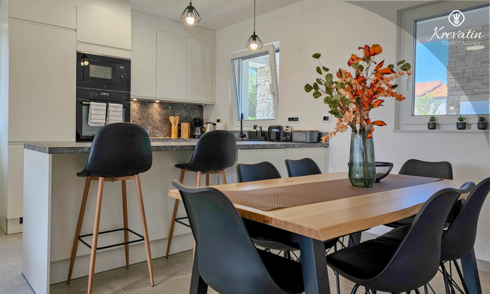 Genießen Sie das sonnige und warme Wetter auf dem schönen Garten mit Grill und Sitzecke. Kinder werden sich über das Trampolin freuen, das auch im Hof vorhanden ist. Die Villa bietet außerdem eine moderne Küche mit allen notwendigen Geräten für die Zubereitung köstlicher Mahlzeiten.