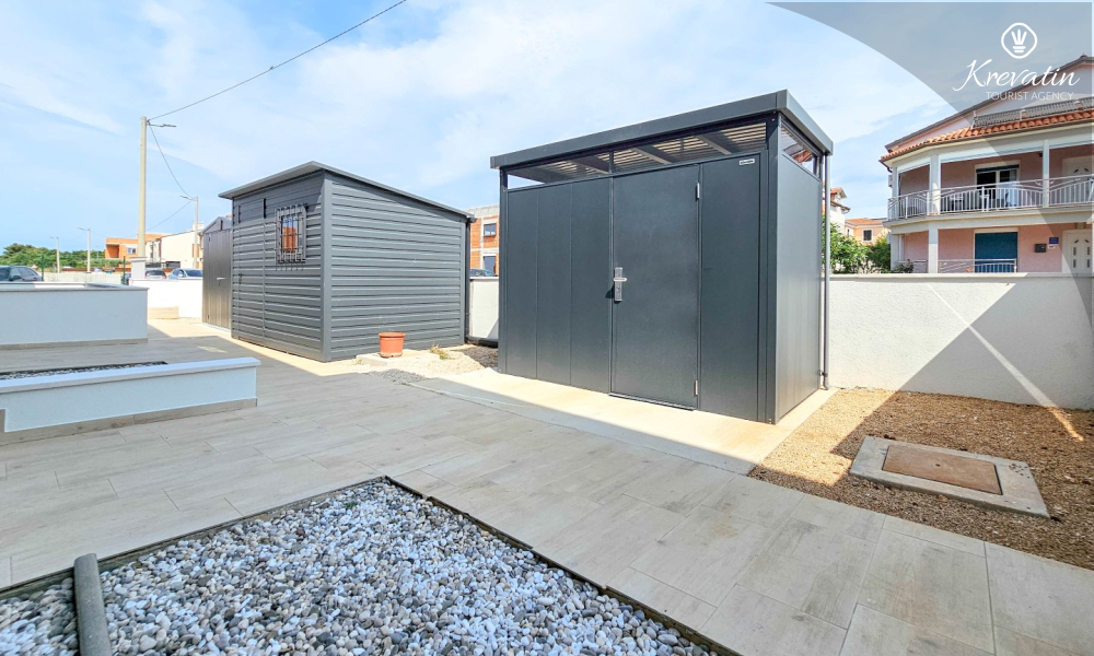 Im Erdgeschoss des Hauses befinden sich ein modernes Badezimmer, eine gut ausgestattete Küche mit Esszimmer und ein gemütliches Wohnzimmer. Das Wohnzimmer hat Zugang zu einer großzügigen Terrasse von 40 Quadratmetern, die Ihnen einen herrlichen Blick auf das Grün und die Natur um Sie herum bietet. Dies ist der ideale Ort, um morgens einen Kaffee zu genießen oder abends zu entspannen. Im ersten Stock des Hauses befinden sich zwei gemütliche Schlafzimmer, ein weiteres Badezimmer und ein Abstellraum für Ihre Sachen. Darüber hinaus verfügt das Haus über einen Parkplatz für ein Fahrzeug und es gibt auch einen Abstellraum für Fahrräder, falls Sie die Umgebung auf zwei Rädern erkunden möchten.