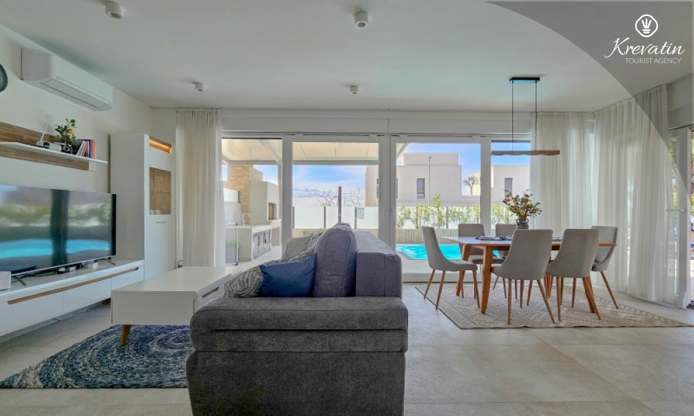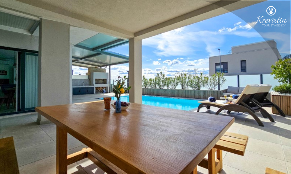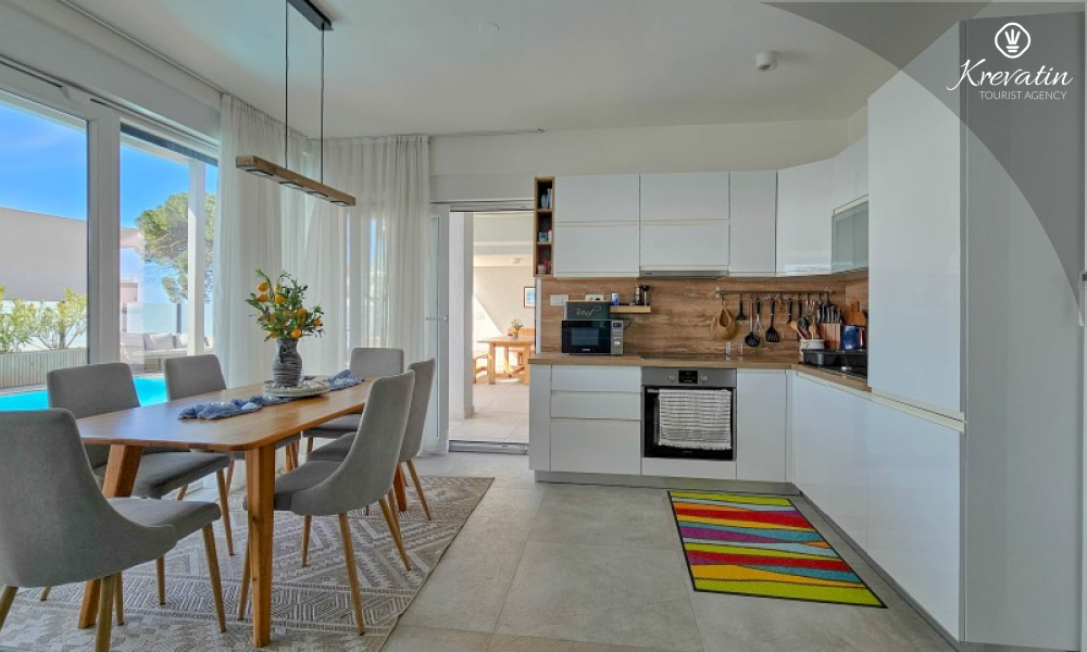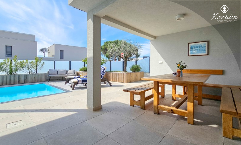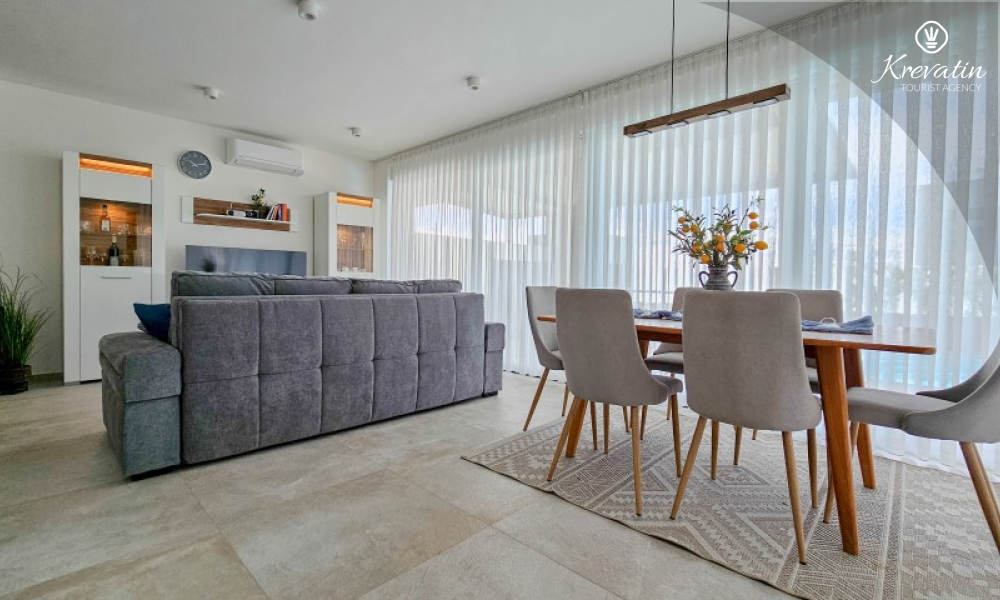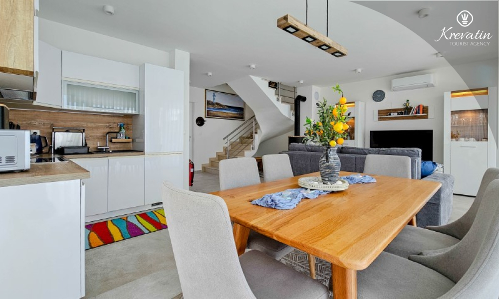 Dieses moderne, dreistöckige Reihenhaus liegt in einem ruhigen Teil von Novigrad – zentrumsnah und in Meeresnähe – und ist ideal für 4 bis 6 Personen.