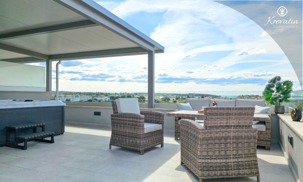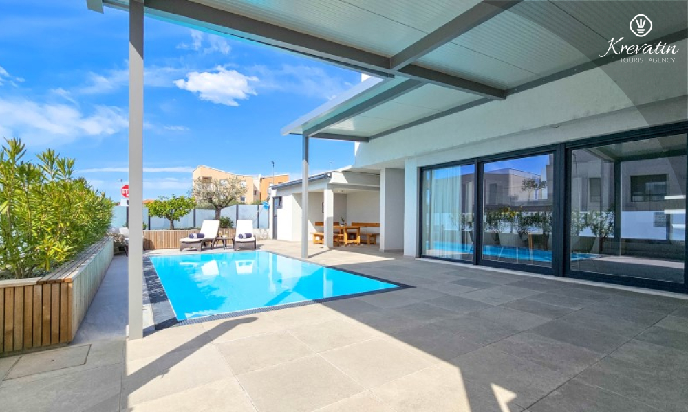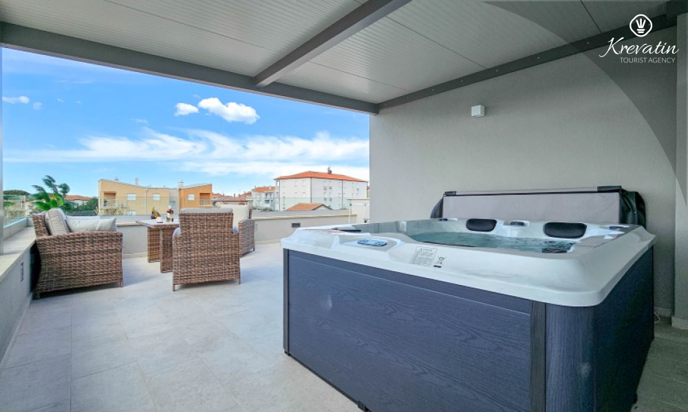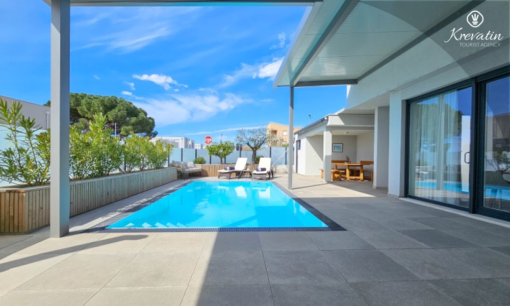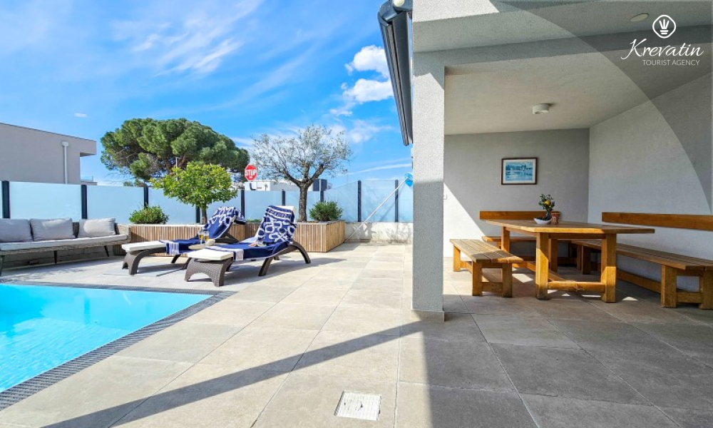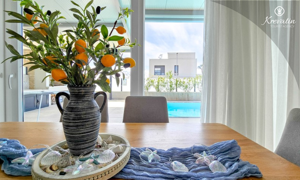 Dieses moderne, dreistöckige Reihenhaus liegt in einem ruhigen Teil von Novigrad – zentrumsnah und in Meeresnähe – und ist ideal für 4 bis 6 Personen.