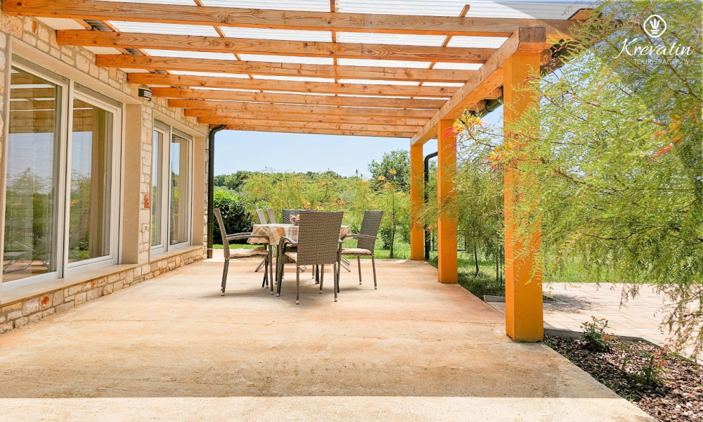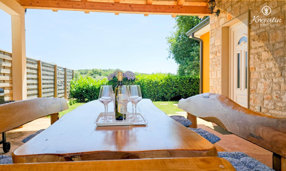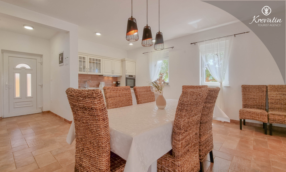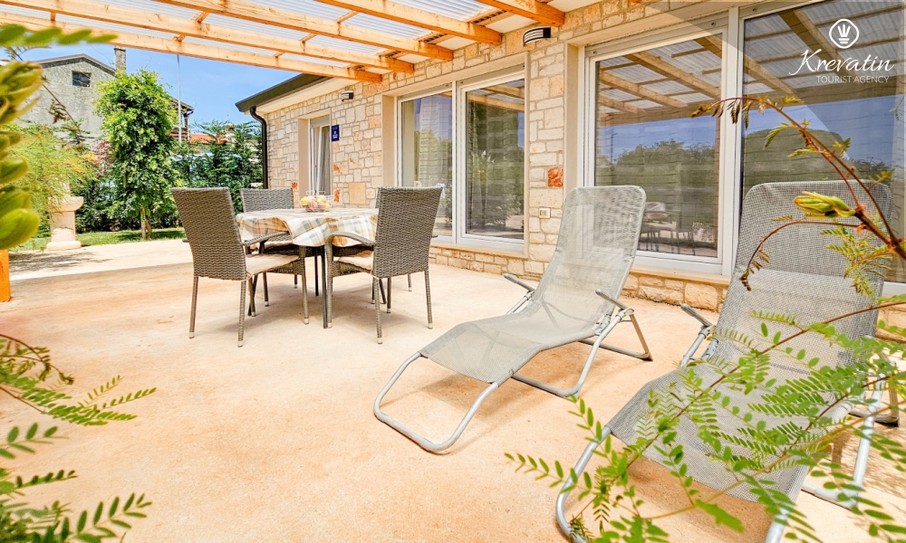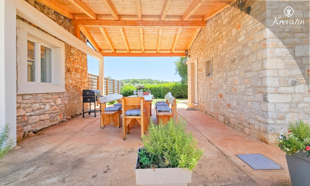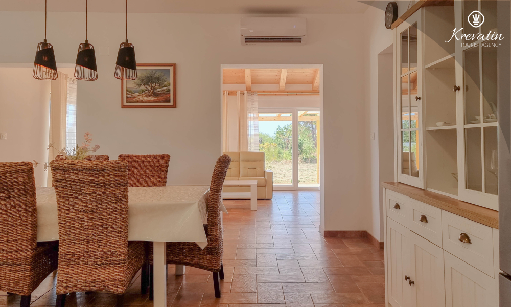 Willkommen in einer Oase der Ruhe und des Komforts im Herzen Istriens! Unser Ferienhaus in Dajla erstreckt sich über zwei Etagen mit großem Garten und bietet Platz für bis zu acht Personen.