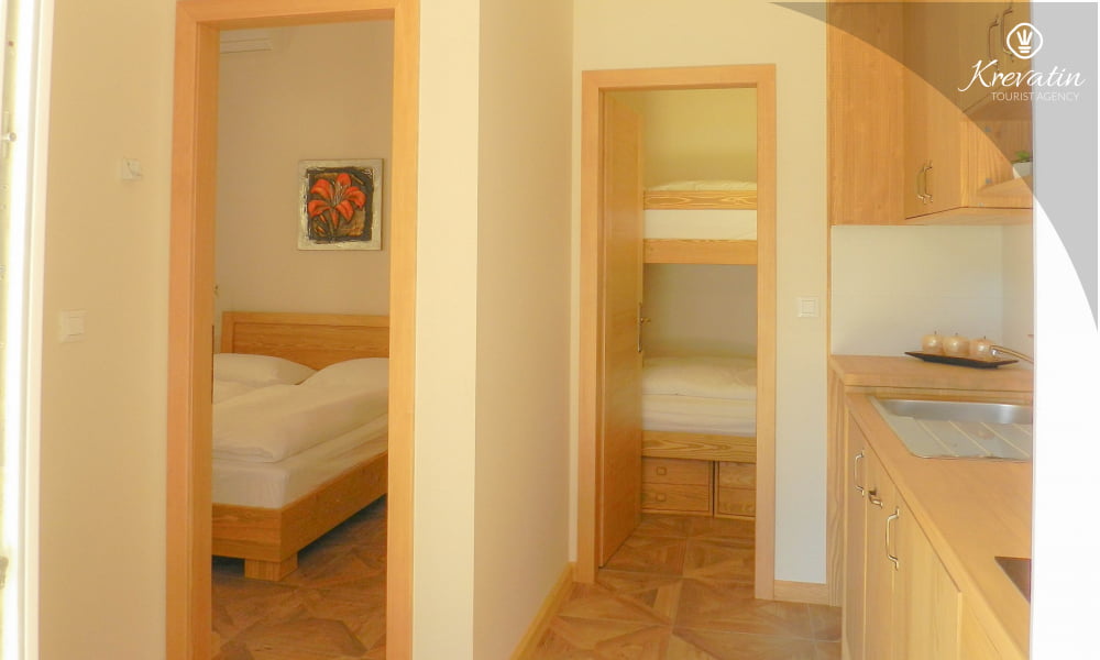 Dieses Apartment für 2 bis 4 Personen befindet sich im Erdgeschoss und besteht aus zwei Schlafzimmer (einem mit Doppelbett und einem mit zwei getrennte Betten), einem Wohnzimmer und eine Küche. Die Küche ist mit Elektroherd, Kühlschrank und Geschirrspüler ausgestattet. Darüber hinaus gibt es ein Badezimmer mit Dusche und WC und eine schöne Terrasse mit Sitzgelegenheiten.