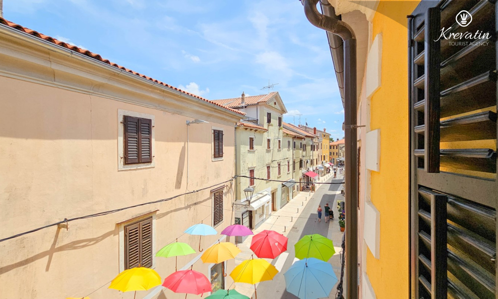 Dieses Apartment für zwei Personen befindet sich im zweiten Stock eines charmanten Hauses in der Altstadt von Novigrad und ist ideal für alle, die authentische mediterrane Atmosphäre mit Meeresnähe verbinden möchten. Nur wenige Schritte entfernt liegt ein Spaziergang am Meer, und der Blick vom Schlafzimmer führt direkt auf eine farbenfrohe Straße mit fröhlichen Sonnenschirmen – perfekt zum Entspannen und Inspirieren.