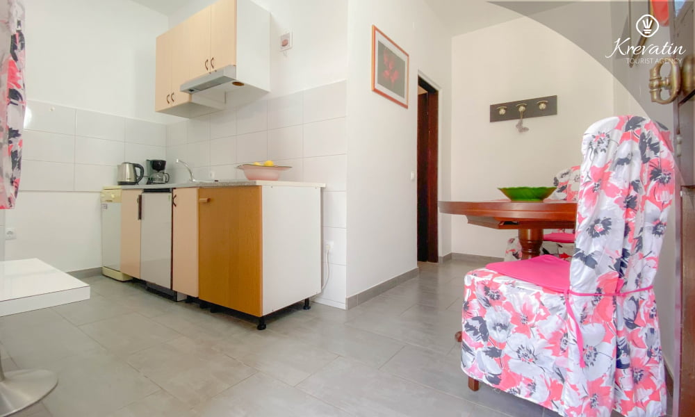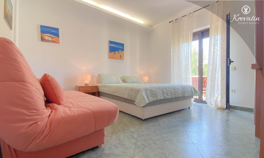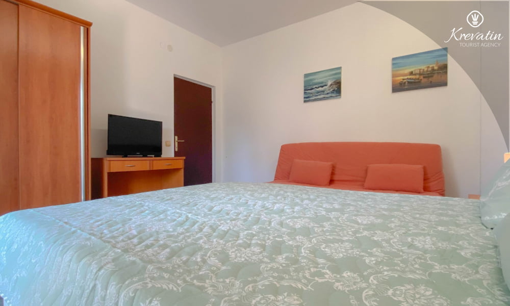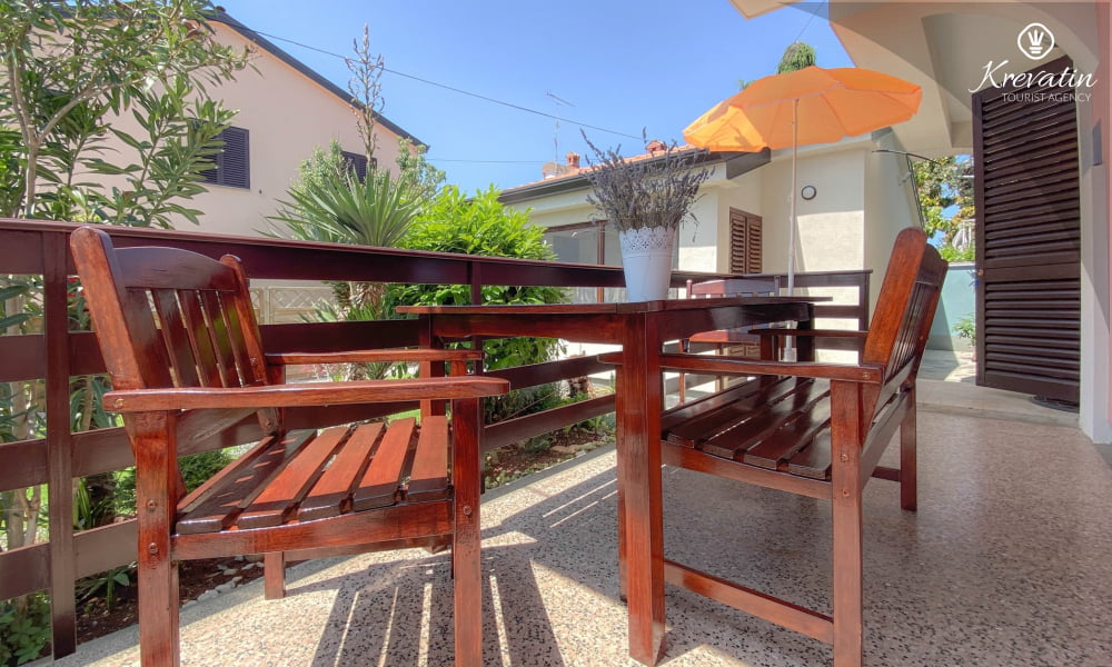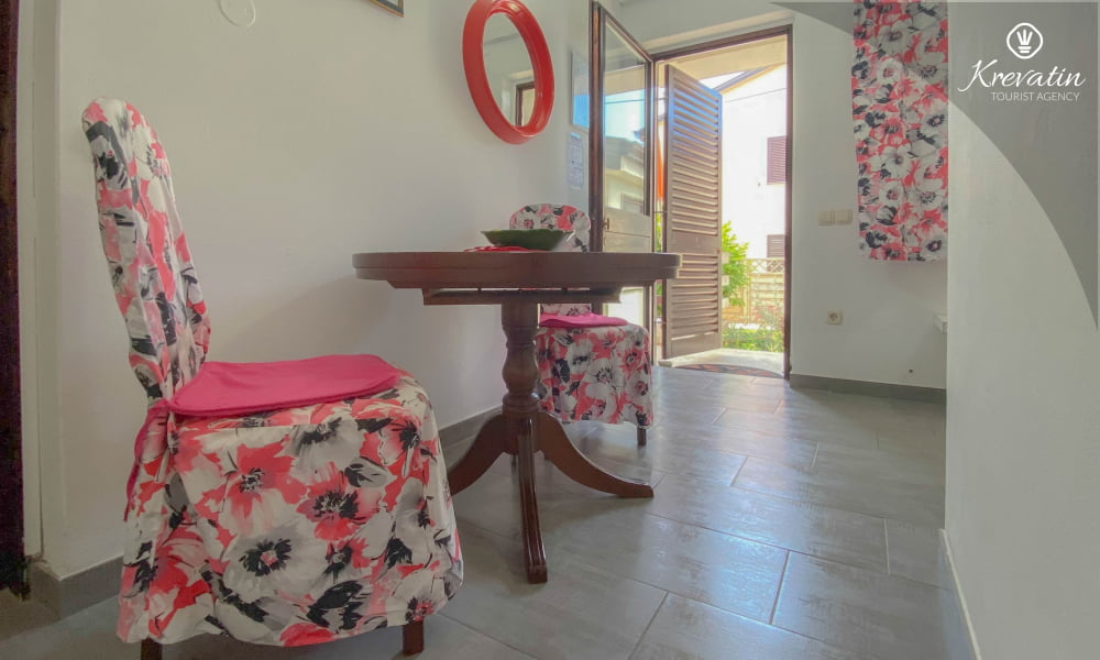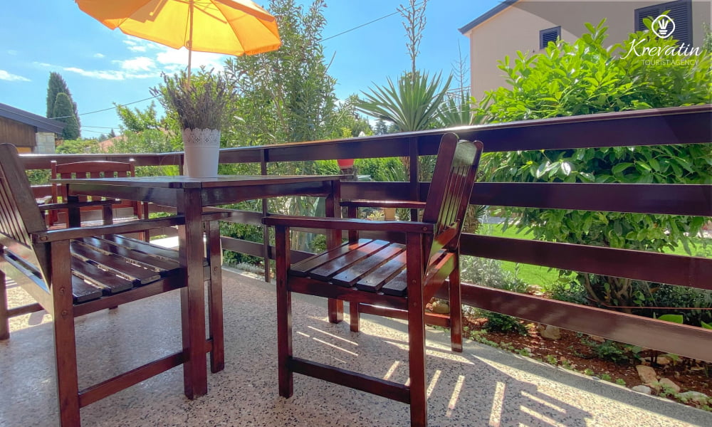 Das Apartment befindet sich im Erdgeschoss eines Einfamilienhauses und bietet ein Schlafzimmer mit Doppelbett und Schlafsofa, eine Küche mit Grundausstattung, ein Badezimmer mit Dusche und eine Terrasse mit Tisch und Stühlen – ideal für Ihren Morgenkaffee oder Ihren abendlichen Wein.