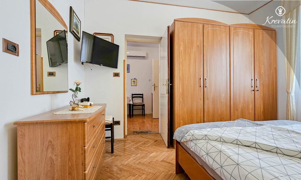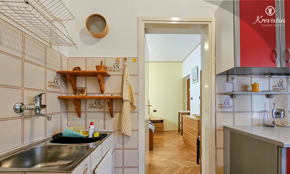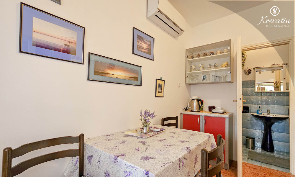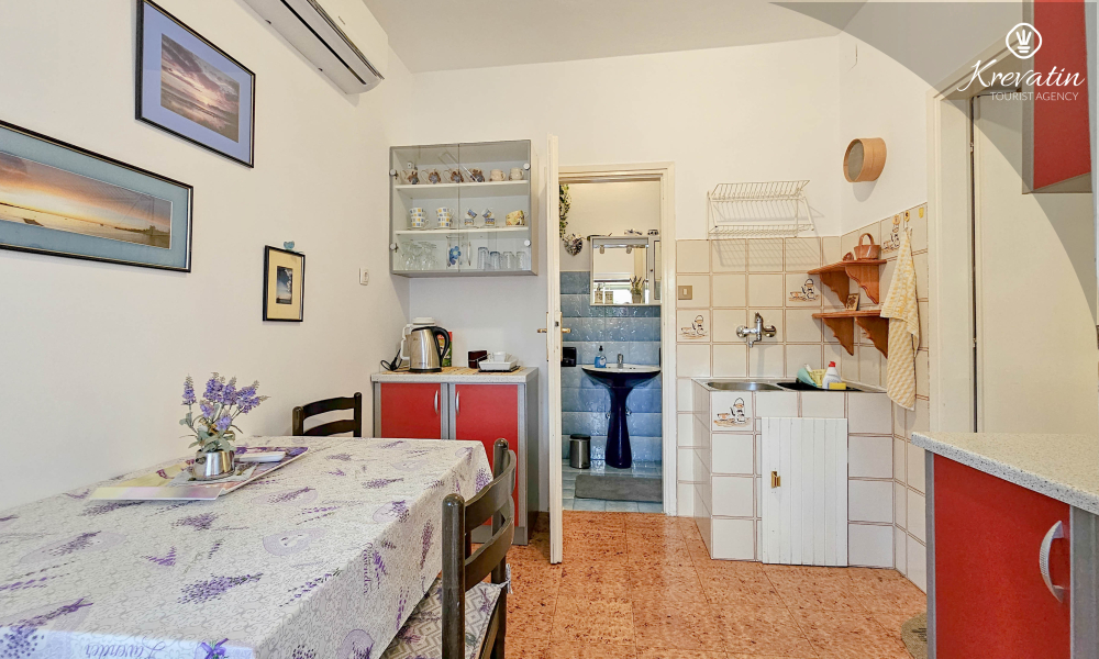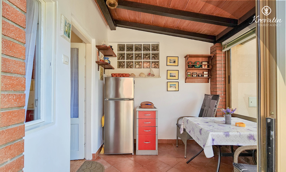 Die Wohnung verfügt über ein Schlafzimmer mit Doppelbett, eine mit grundlegenden Annehmlichkeiten ausgestattete Küche und ein praktisches Badezimmer mit Dusche und WC. Eine möblierte Terrasse lädt zum Morgenkaffee oder geselligen Beisammensein am Abend ein.