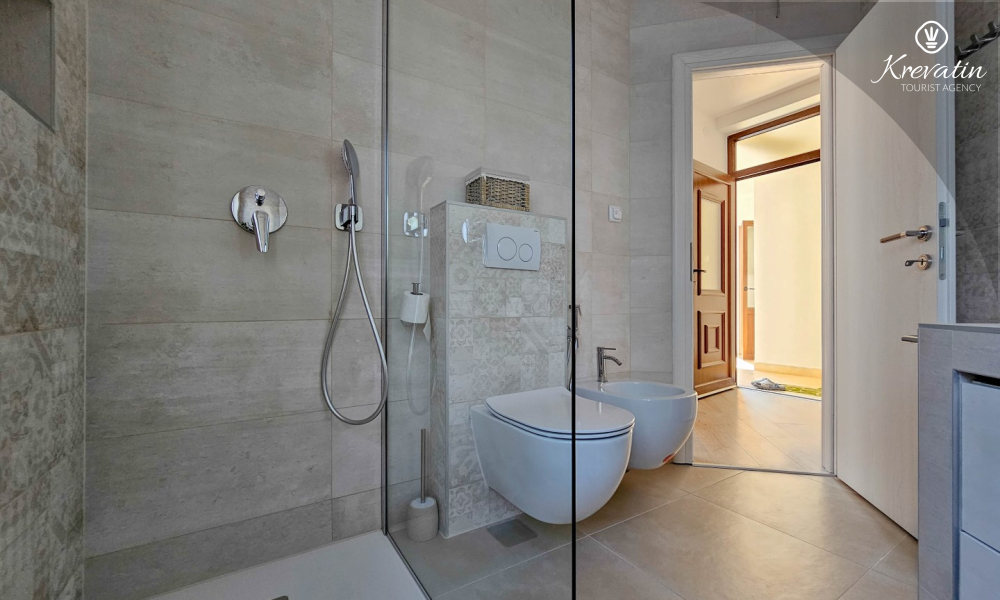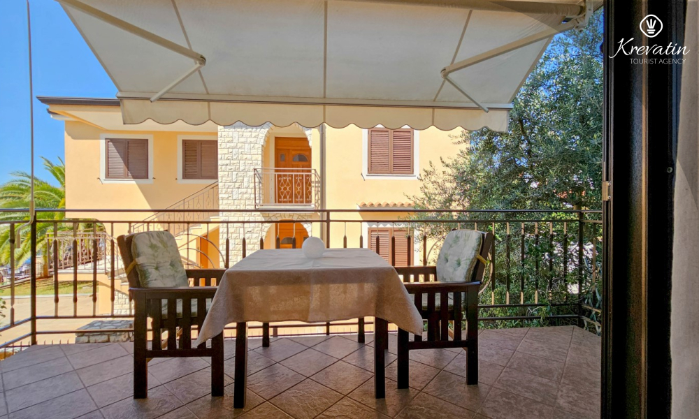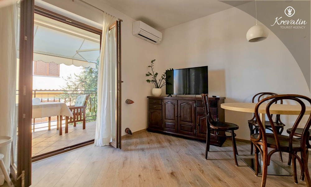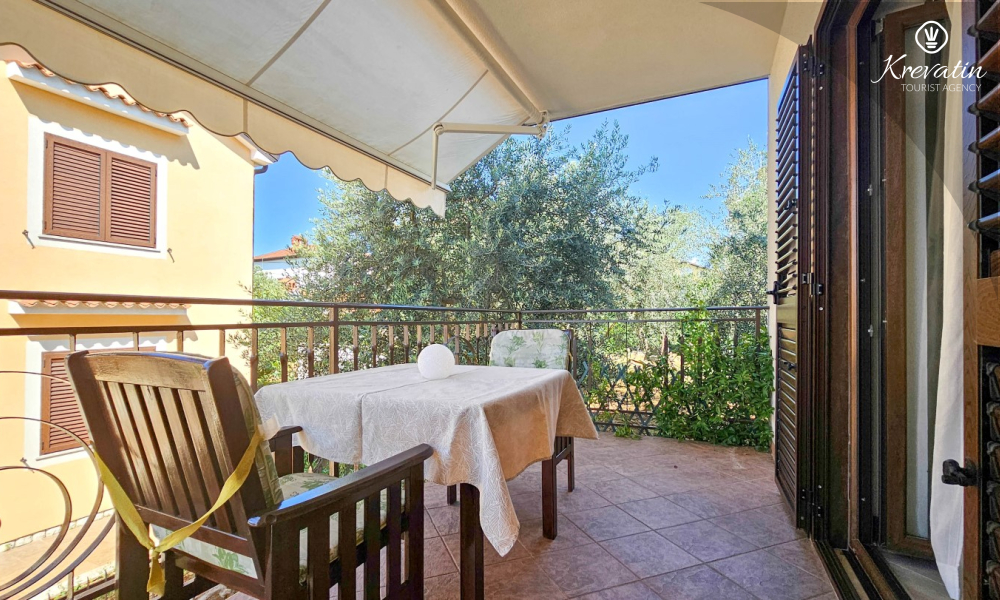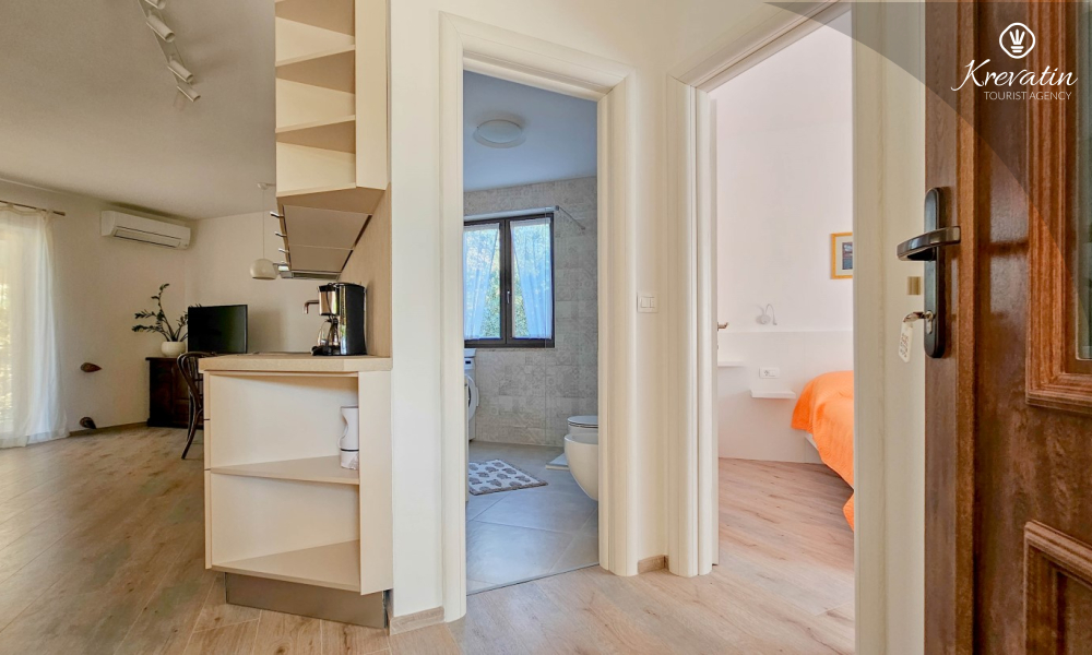 Die Wohnung befindet sich im ersten Stock eines Einfamilienhauses und bietet komfortable Unterkunft für zwei Personen.