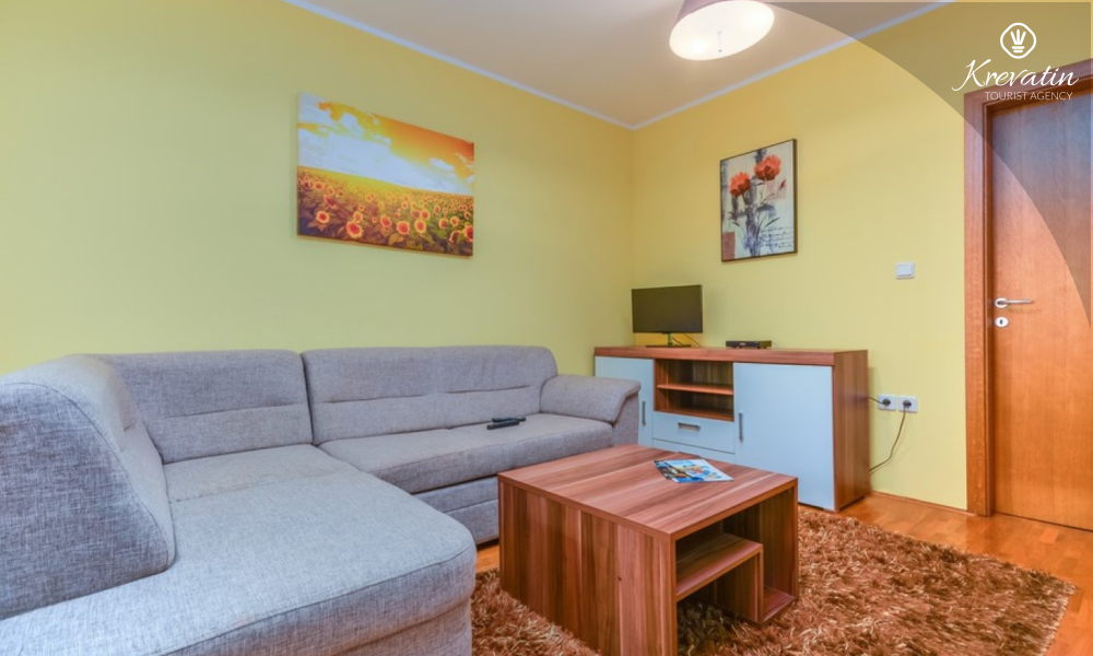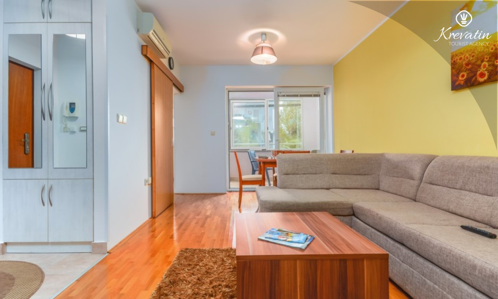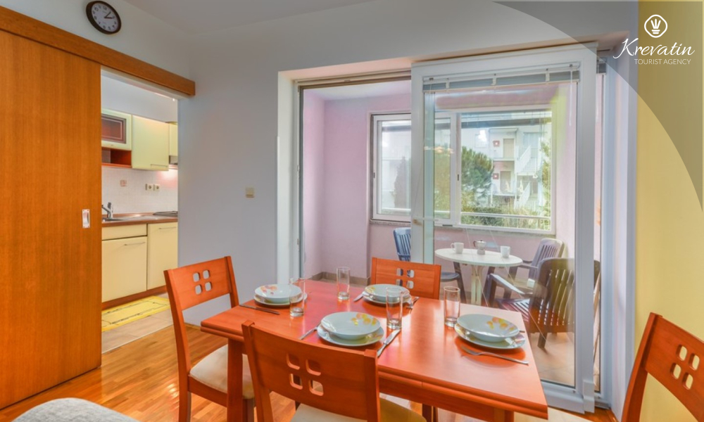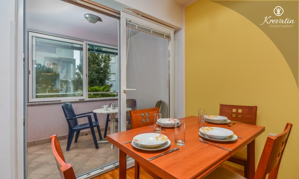 Die Wohnung bietet einen komfortablen Aufenthalt für bis zu 4 Personen. Es befindet sich im Erdgeschoss eines Wohngebäudes und bietet eine perfekte Kombination aus Komfort und Zweckmäßigkeit. Es besteht aus einem Schlafzimmer, einer Küche, einem Wohnzimmer mit Esszimmer und einem Badezimmer. Das Schlafzimmer ist mit einem Doppelbett und einem Kleiderschrank ausgestattet und hat Zugang zu einer geschlossenen Terrasse. Das Wohnzimmer bietet zusätzlichen Schlafplatz auf einer bequemen Sitzecke, die sich leicht in ein Bett für zwei Personen umwandeln lässt.