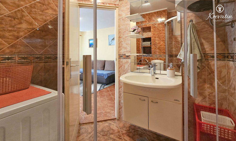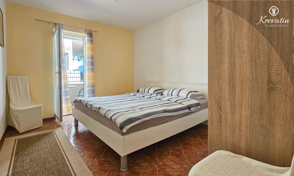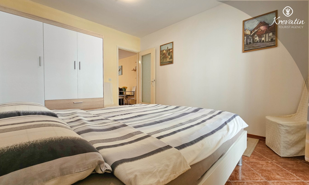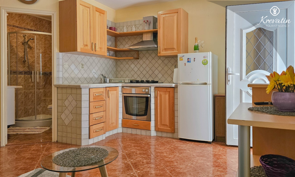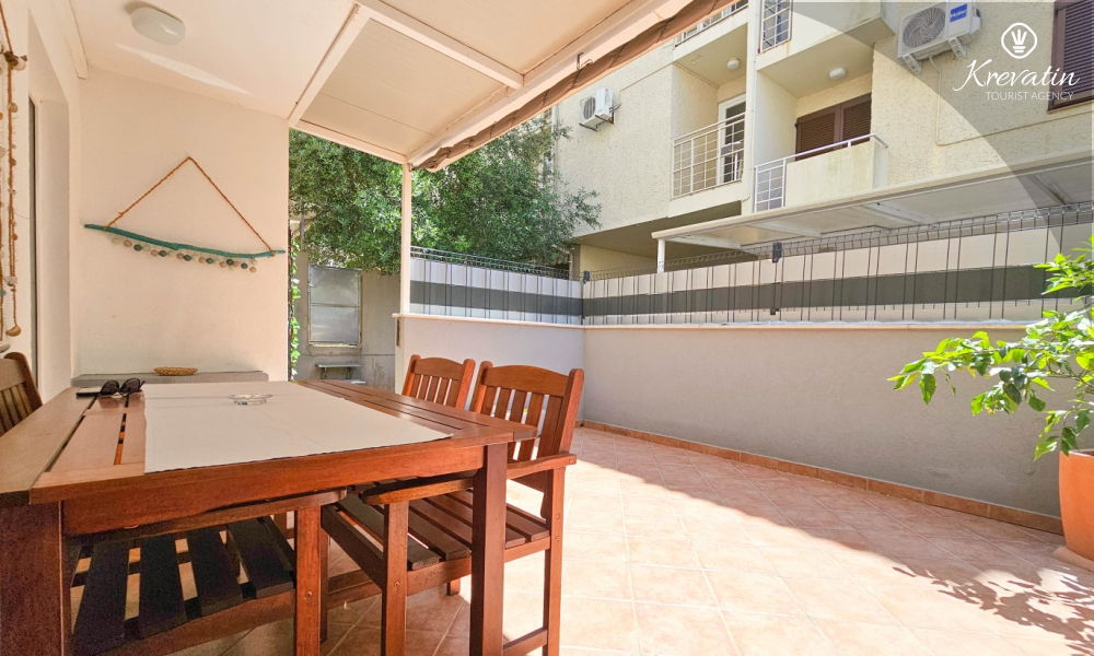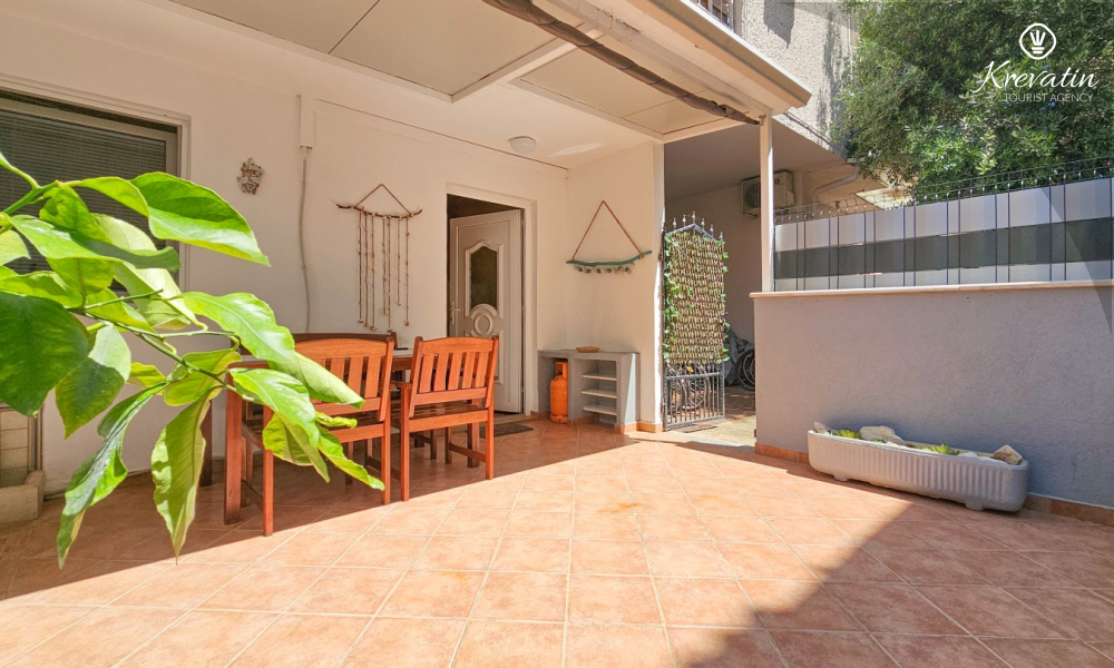 Die Wohnung besteht aus einem Schlafzimmer, einem gemütlichen Wohnzimmer mit Küche und Esszimmer und einer schönen Terrasse. Zwei weitere Gäste können bequem im Wohnzimmer schlafen. Die Küche ist mit dem Nötigsten für die Zubereitung einfacher Mahlzeiten ausgestattet und das praktische Badezimmer verfügt über eine Dusche, eine Toilette und eine Waschmaschine für Ihren Komfort. Entspannen Sie sich auf der mit Tisch und Stühlen ausgestatteten Terrasse, die sich perfekt für einen Kaffee am Morgen oder ein abendliches Beisammensein eignet. Die Wohnung ist mit TV, Klimaanlage, Internet ausgestattet, Bettwäsche und Handtücher stehen Ihnen für einen unbeschwerten Aufenthalt ohne zusätzliche Kosten zur Verfügung.