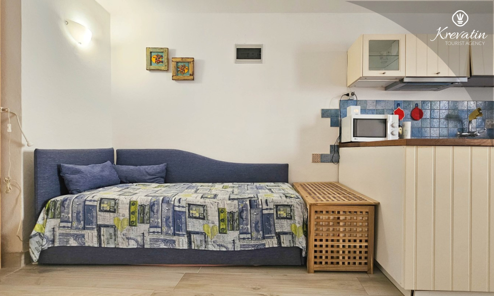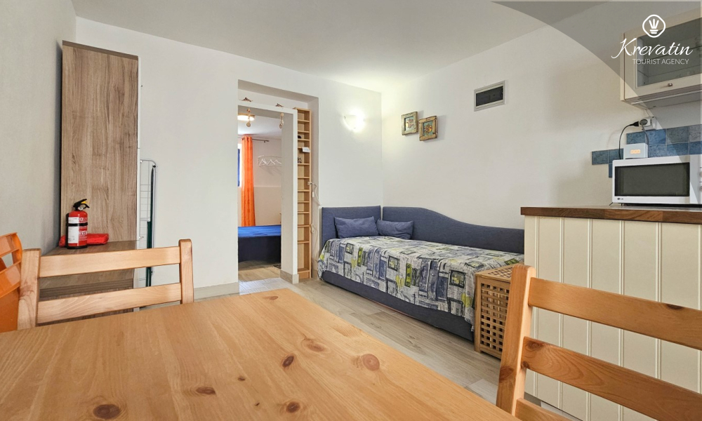 Willkommen in unserem charmanten Apartment im Herzen der Altstadt von Novigrad in Istrien! Die Wohnung besteht aus einem Schlafzimmer und einem Wohnzimmer mit Küche und Esszimmer und ist ideal für bis zu 3 Personen. Im Wohnzimmer gibt es ein bequemes Sofa, auf dem eine weitere Person schlafen kann. Die Küche ist mit dem Nötigsten ausgestattet und das Badezimmer verfügt über eine Duschkabine und eine Toilette. Klimaanlage, Bettwäsche und Handtücher sind im Preis inbegriffen und sorgen für einen angenehmen und unbeschwerten Aufenthalt.