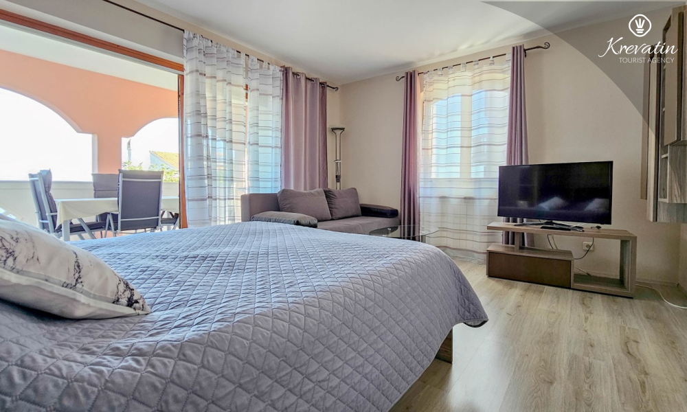 Ein geräumiges Schlafzimmer mit einem Doppelbett, einem Kleiderschrank und einem Raum zum Entspannen führt Sie zu einem schönen Balkon mit bequemen Möbeln und einem bezaubernden Blick auf das Meer. Die Küche mit Esszimmer ist mit den Grundausstattungen für die Zubereitung von Mahlzeiten ausgestattet und das Badezimmer mit Dusche sorgt für zusätzlichen Komfort. Das Apartment ist mit Klimaanlage, kostenlosem Internet und Satellitenfernsehen ausgestattet. Bettwäsche und Handtücher sind im Preis inbegriffen.