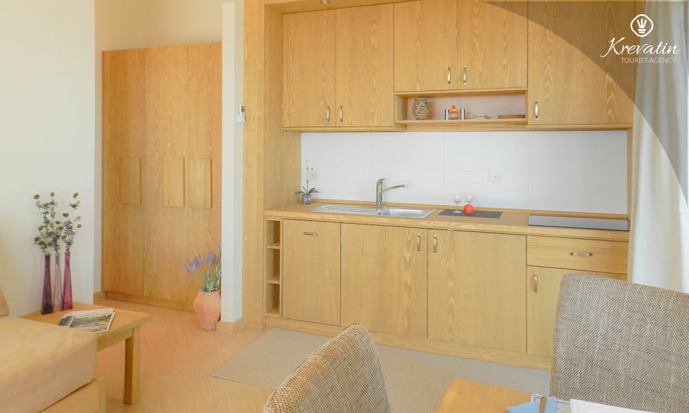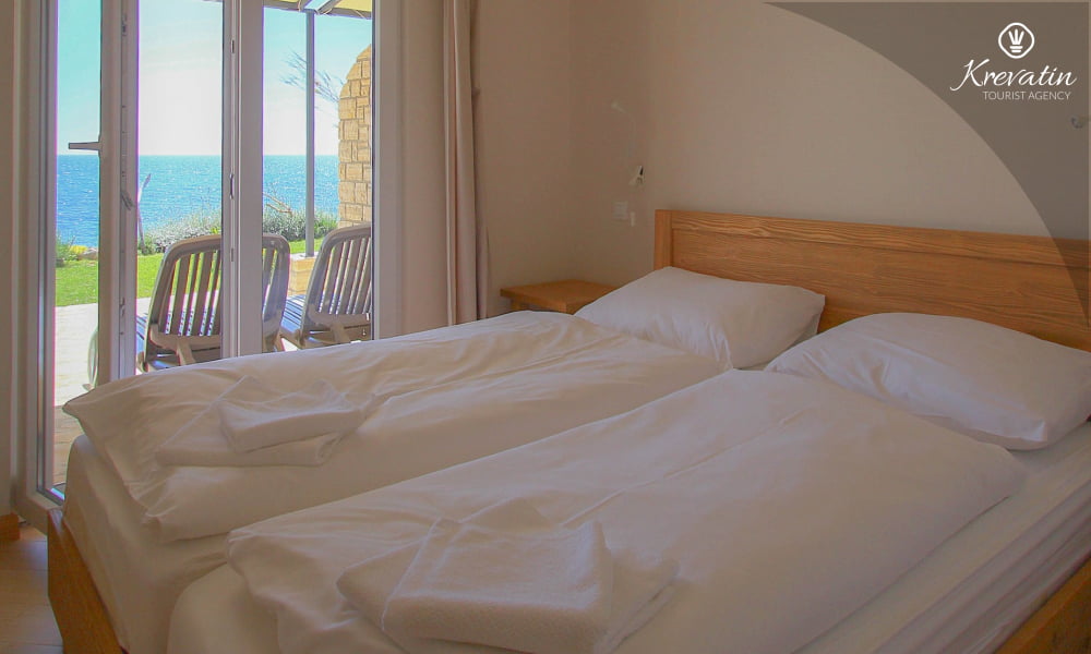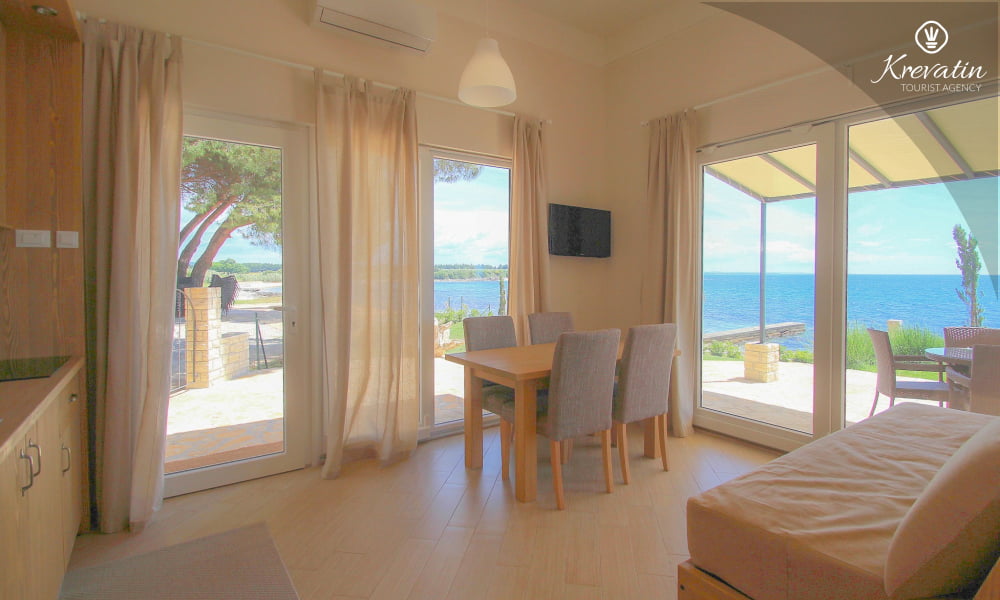 Direkt am Meer gelegen, dieses Apartment für 2 bis 4 Personen befindet sich im Erdgeschoss und besteht aus einem Schlafzimmer mit einem Doppelbett, einem Wohnzimmer mit Schlafcouch für 1-2 Personen und eine Küche. Die Küche ist mit Elektroherd, Kühlschrank und Geschirrspüler ausgestattet. Darüber hinaus gibt es ein Badezimmer mit Dusche und WC und eine schöne Terrasse mit Sitzgelegenheiten und einem Blick auf das Meer, die direkt zum Strand führt.