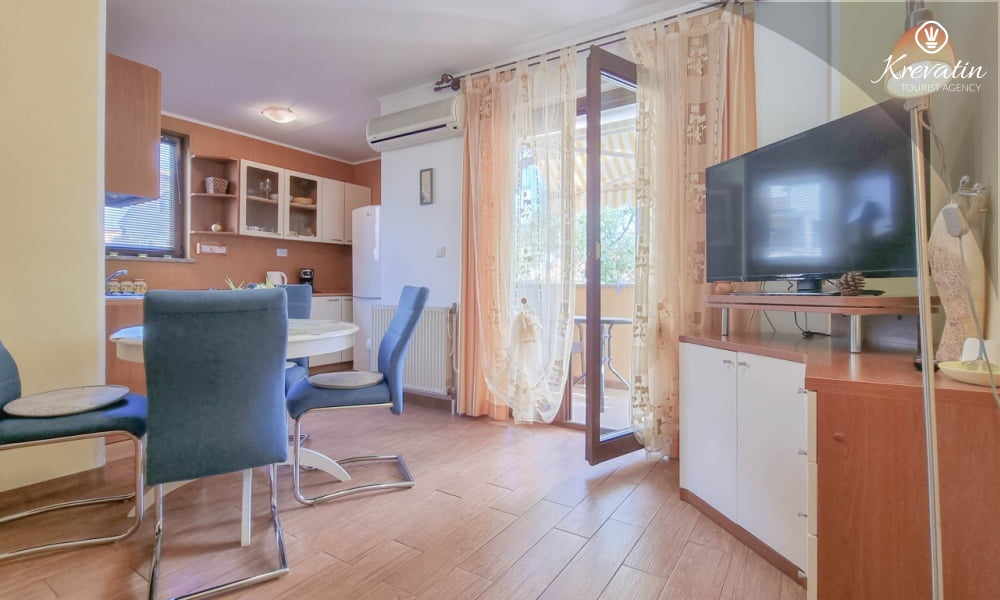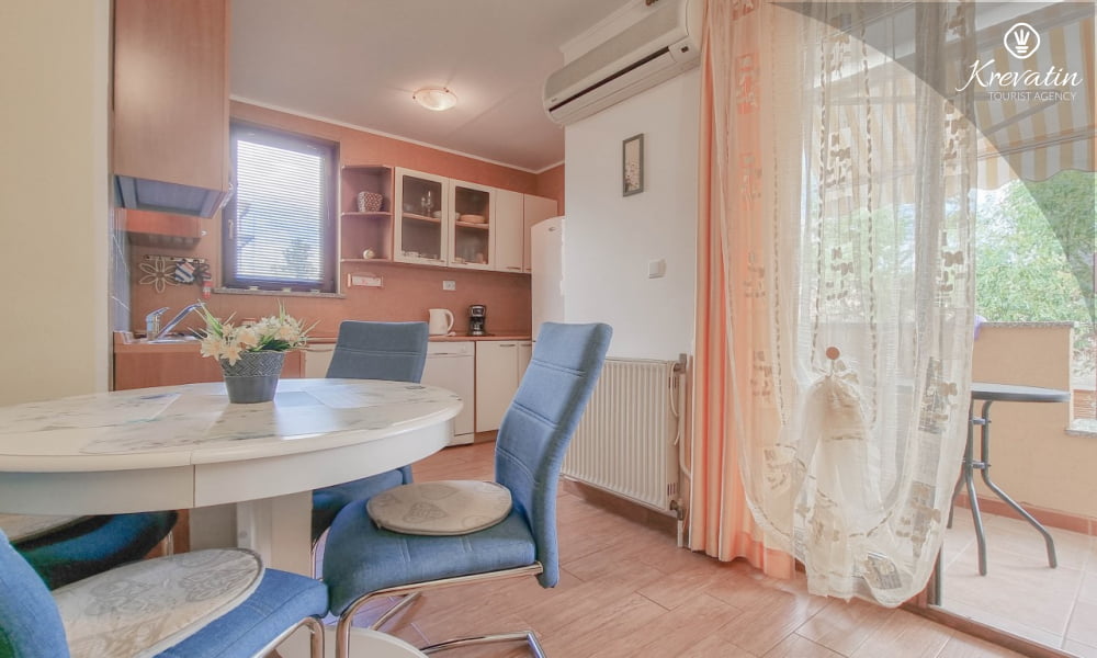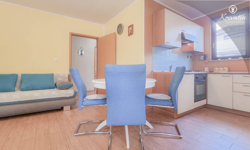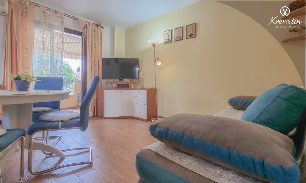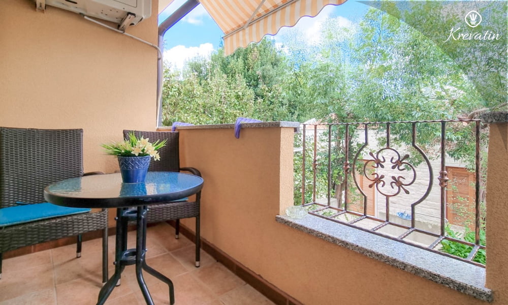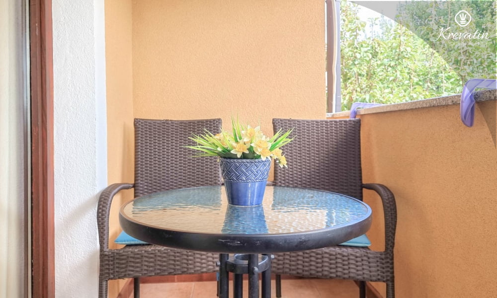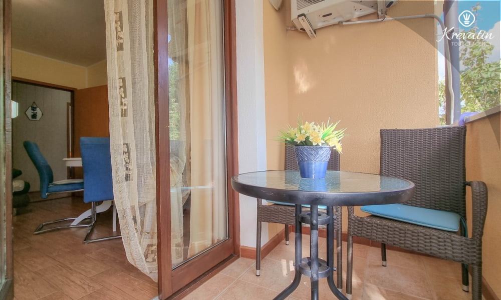 Diese Apartment für 2 bis 4 Personen, am ersten Stock gelegen, besteht aus einem Schlafzimmer und eine Wohnzimmer mit Küche. Die Küche ist mit Gas-/Elektroherd, Backofen, Kühlschrank, Spulmaschine und Kaffeemaschine ausgestattet. Desweiteren gibt es ein Badezimmer mit Dusche und Toilete, sowie einen schönen Balkon mit Terrassenmöbel. Inklusive sind SAT-TV, Klimaanlage, WLAN, Bettwäsche und Handtücher. Haustiere sind willkommen gegen Gebühr.