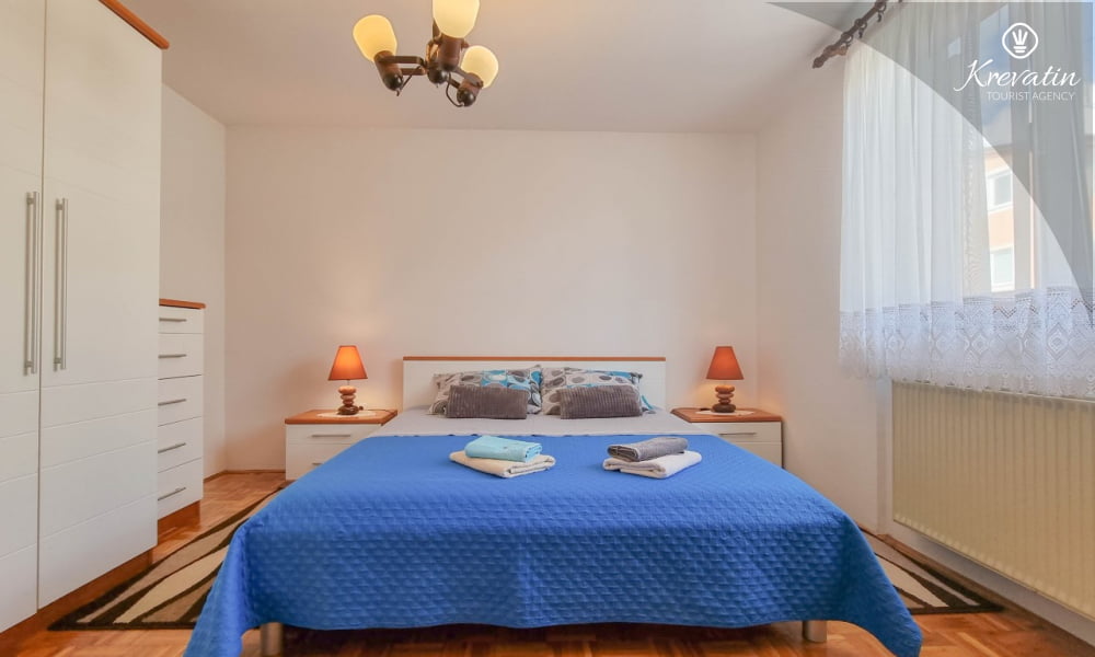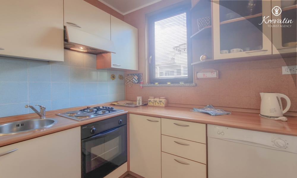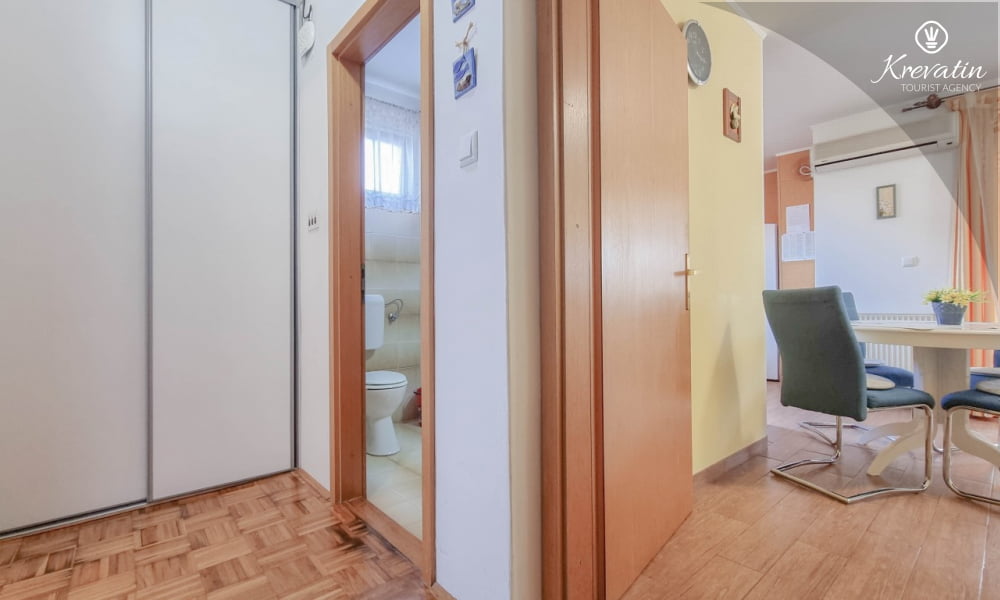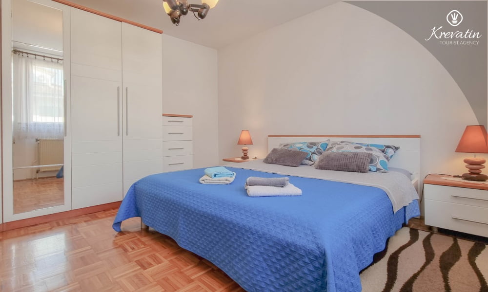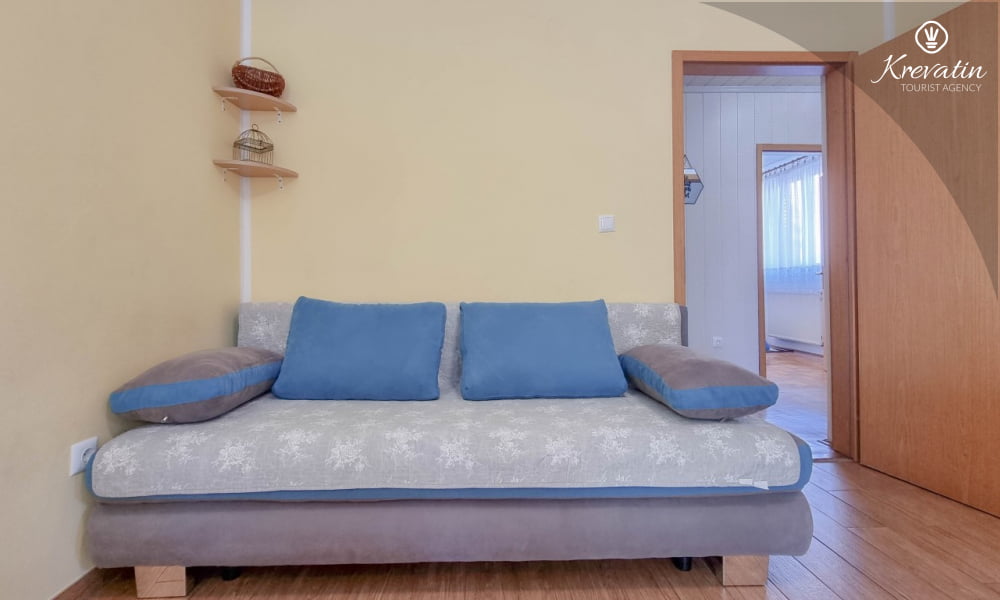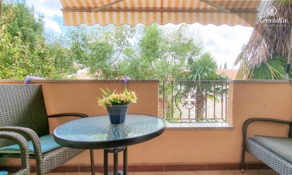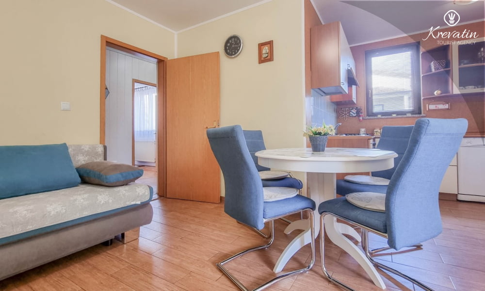 Diese Apartment für 2 bis 4 Personen, am ersten Stock gelegen, besteht aus einem Schlafzimmer und eine Wohnzimmer mit Küche. Die Küche ist mit Gas-/Elektroherd, Backofen, Kühlschrank, Spulmaschine und Kaffeemaschine ausgestattet. Desweiteren gibt es ein Badezimmer mit Dusche und Toilete, sowie einen schönen Balkon mit Terrassenmöbel. Inklusive sind SAT-TV, Klimaanlage, WLAN, Bettwäsche und Handtücher. Haustiere sind willkommen gegen Gebühr.