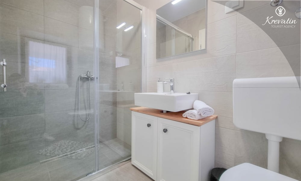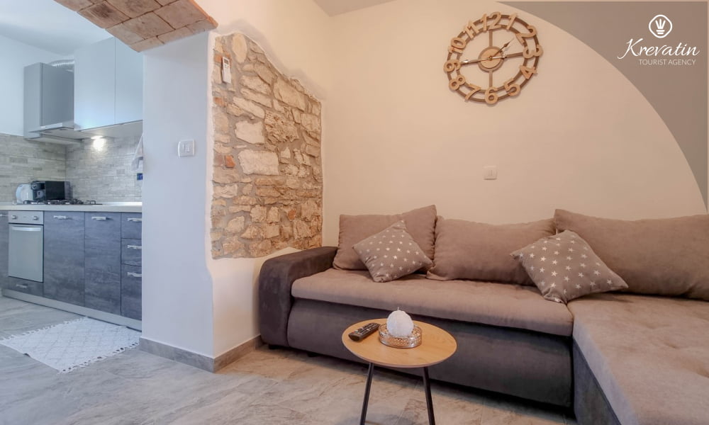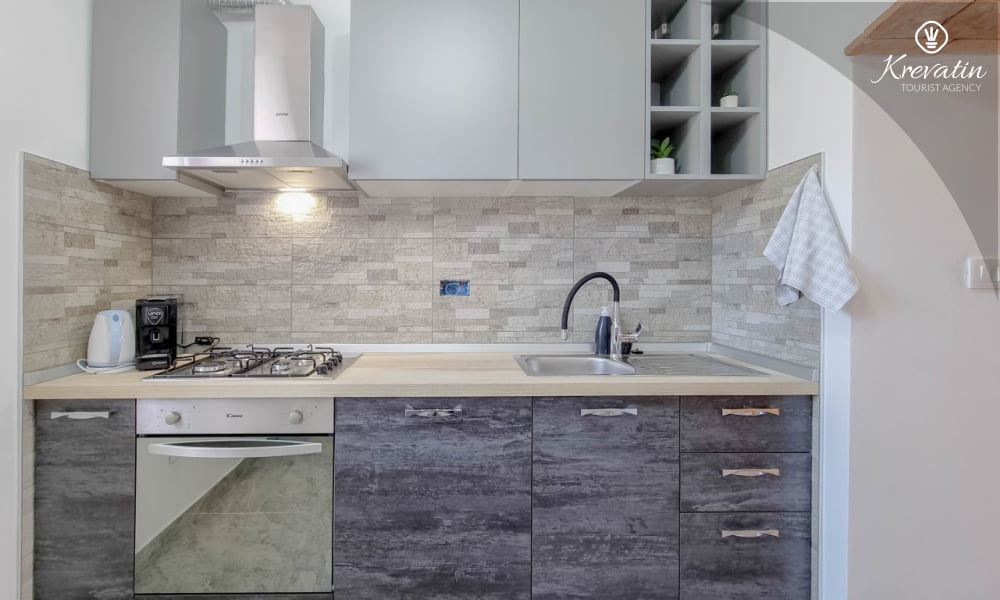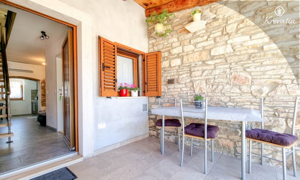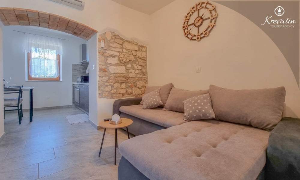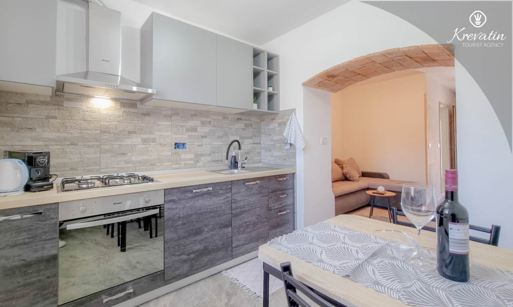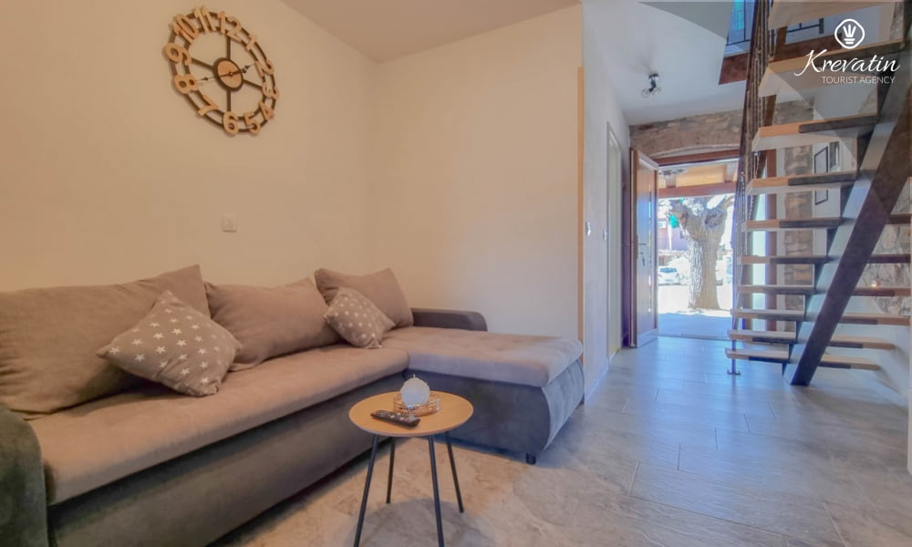 Dieses komfortable Apartment erstreckt sich über zwei Etagen und bietet komfortable Unterkunft für bis zu drei Personen – ideal für einen erholsamen Urlaub an der Adria.