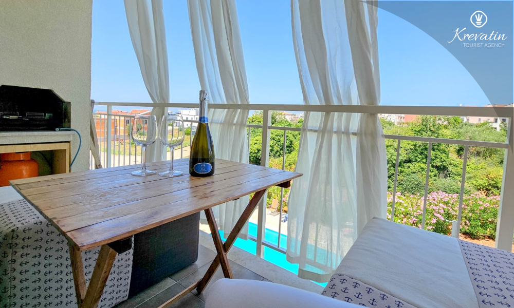 Dieses charmante Apartment im zweiten Stock eines Wohnhauses ist ideal zum Entspannen in Novigrad, abseits des Trubels und nur wenige Gehminuten vom Strand und Stadtzentrum entfernt.