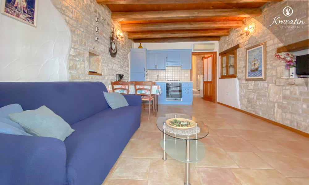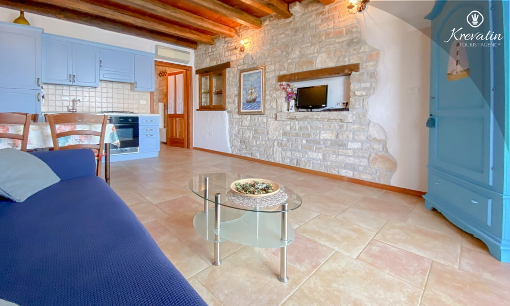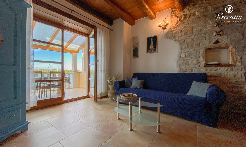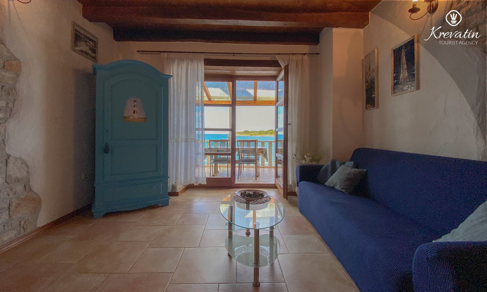 Es besteht aus einem Schlafzimmer mit einem komfortablen Doppelbett und einem Wohnzimmer mit Schlafcouch für zwei weitere Personen. Die Küche ist mit den wichtigsten Utensilien für die Zubereitung einfacher Mahlzeiten ausgestattet, und das Badezimmer verfügt über Dusche und WC. Vom Balkon mit herrlichem Meerblick können Sie Ihren Aufenthalt im Freien genießen.