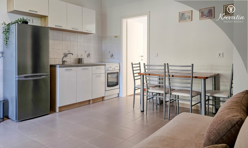 Es besteht aus einem Schlafzimmer, einem Wohnzimmer mit Schlafsofa und einer komplett ausgestatteten Küche. Den Gästen steht ein praktisches Badezimmer mit Dusche und WC sowie eine gemütliche Terrasse mit Tisch und Stühlen zur Verfügung, die zum Entspannen im Freien einlädt.