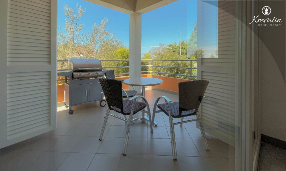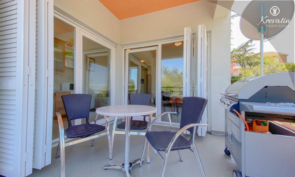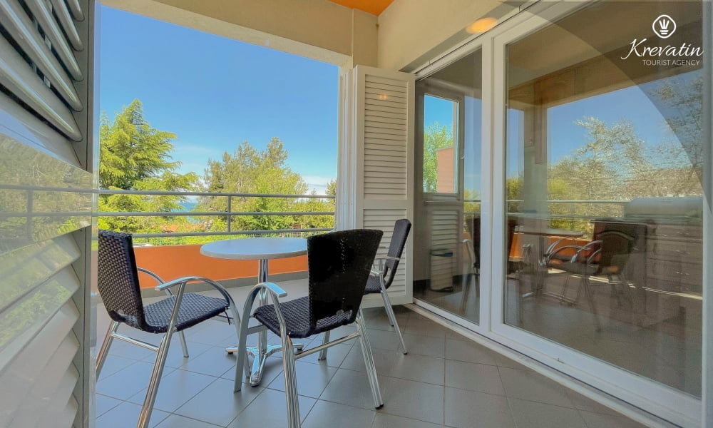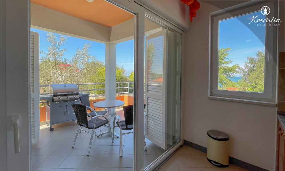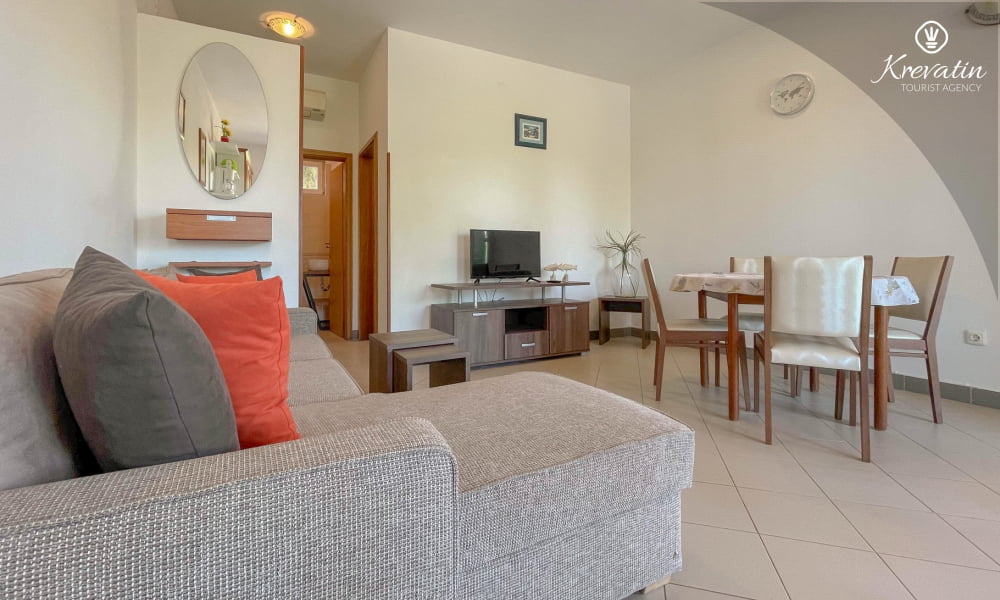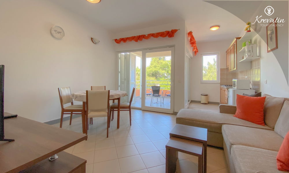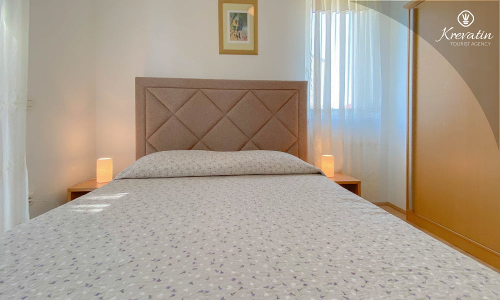 Diese Apartment für bis 4 Personen befindet sich im Erdgeschoss und verfügt über einem Schlafzimmer, ein Wohnzimmer mit ein Sofabett und eine Küche. Die Küche ist mit Elektroherd, Kühlschrank und Kaffemaschine ausgestattet. Desweiteren gibt es noch ein Badezimmer mit Dusche und WC und eine Terrasse mit Möbeln und teilweise Meerblick. Inklusive sind SAT-TV, Klimaanlage, WiFi, Bettwäsche und Handtücher. Haustiere sind nicht erlaubt.