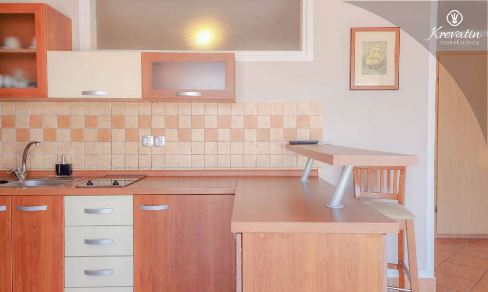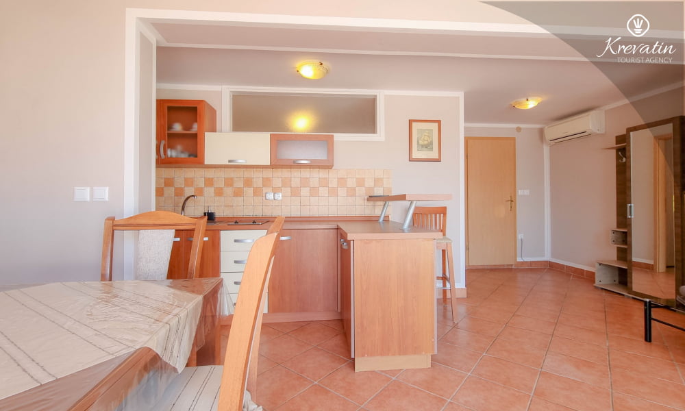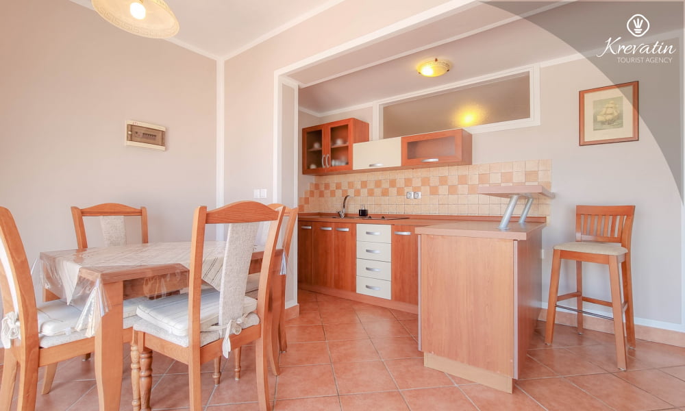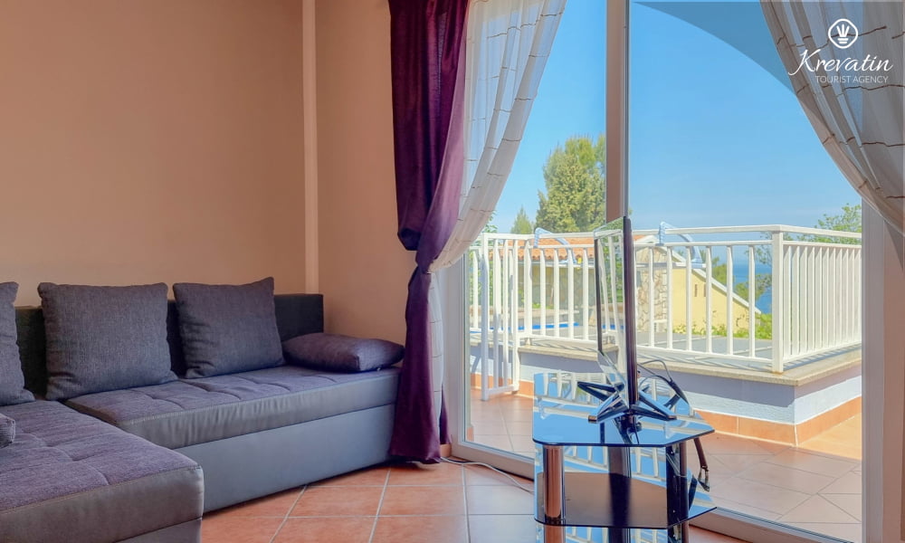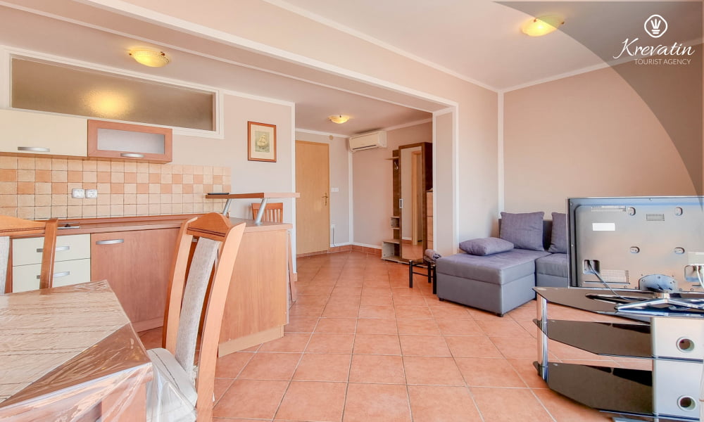 Das Apartment verfügt über ein Schlafzimmer, ein Wohnzimmer mit gut ausgestatteter Küche und Essbereich sowie ein Badezimmer mit Dusche und WC. Im Wohnzimmer befindet sich ein Schlafsofa für eine weitere Person. Außerdem gibt es einen Balkon mit Meerblick, auf dem Sie Ihren Morgenkaffee oder Ihren abendlichen Aperitif genießen können.