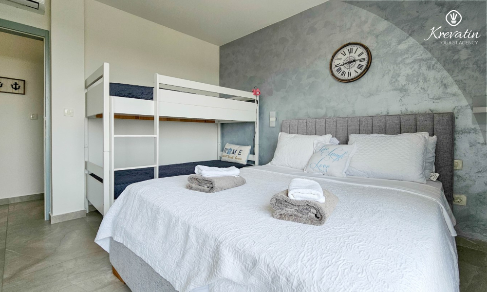 Im Erdgeschoss befinden sich eine modern ausgestattete Küche mit Essbereich, ein geräumiges Wohnzimmer mit einem Schlafsofa für zwei weitere Personen, ein Badezimmer und eine Waschküche. Im ersten Stock befinden sich zwei komfortable Schlafzimmer mit Doppelbetten und ein weiteres Badezimmer.