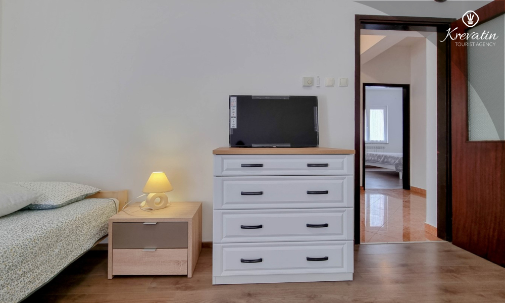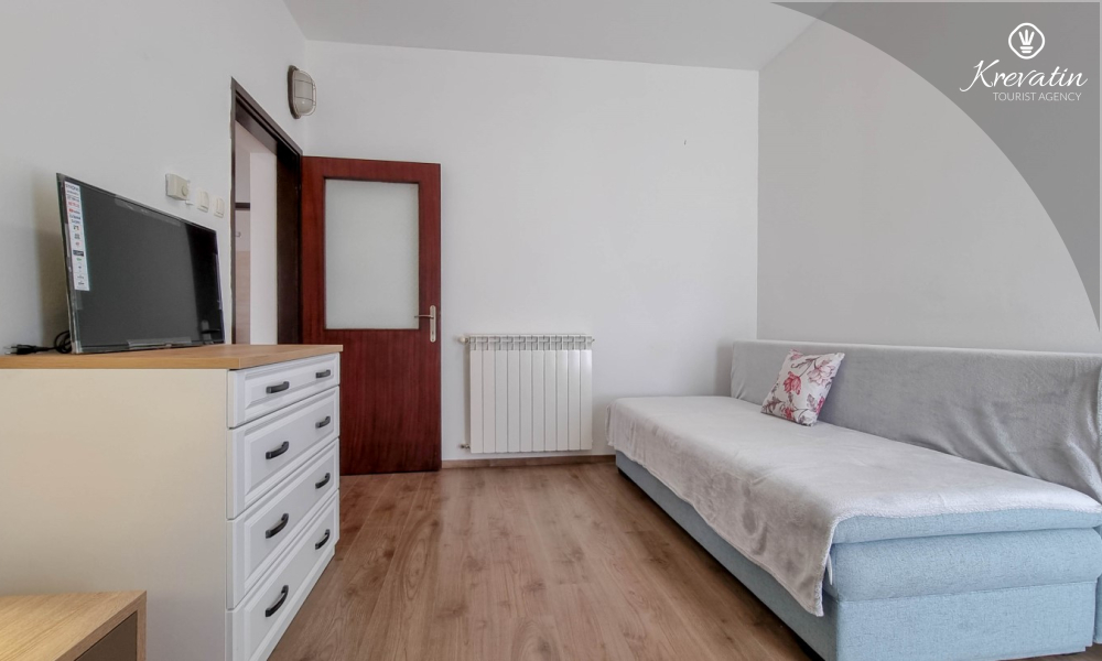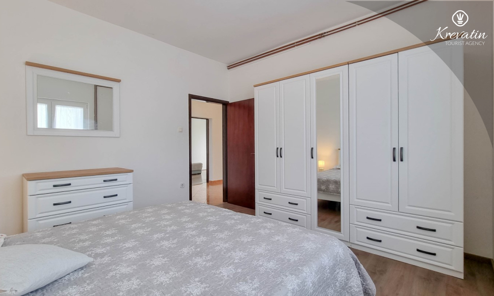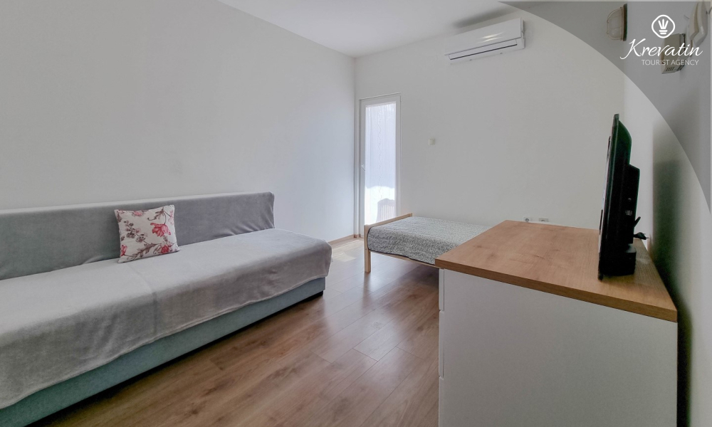 Dieses Apartment für 2 bis 4 Personen befindet sich im Hochparterre und besteht aus einem Schlafzimmer, einem Wohnzimmer mit einem Schlafsofa und einem Einzelbett sowie einer Küche. Die Küche ist mit Elektroherd, Backofen, Kühlschrank und Kaffeemaschine ausgestattet. Außerdem gibt es ein Badezimmer mit Dusche und WC und einen schönen Balkon mit Mobiliar. SAT-TV, WLAN, Klimaanlage, Bettwäsche und Handtücher sind im Preis inbegriffen.