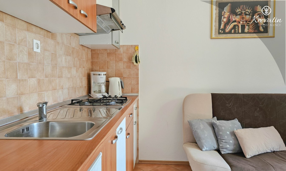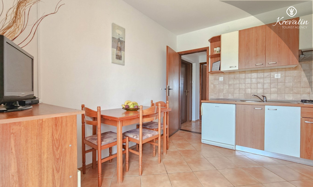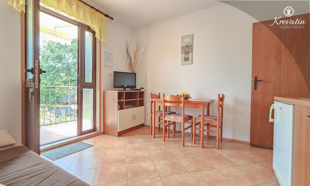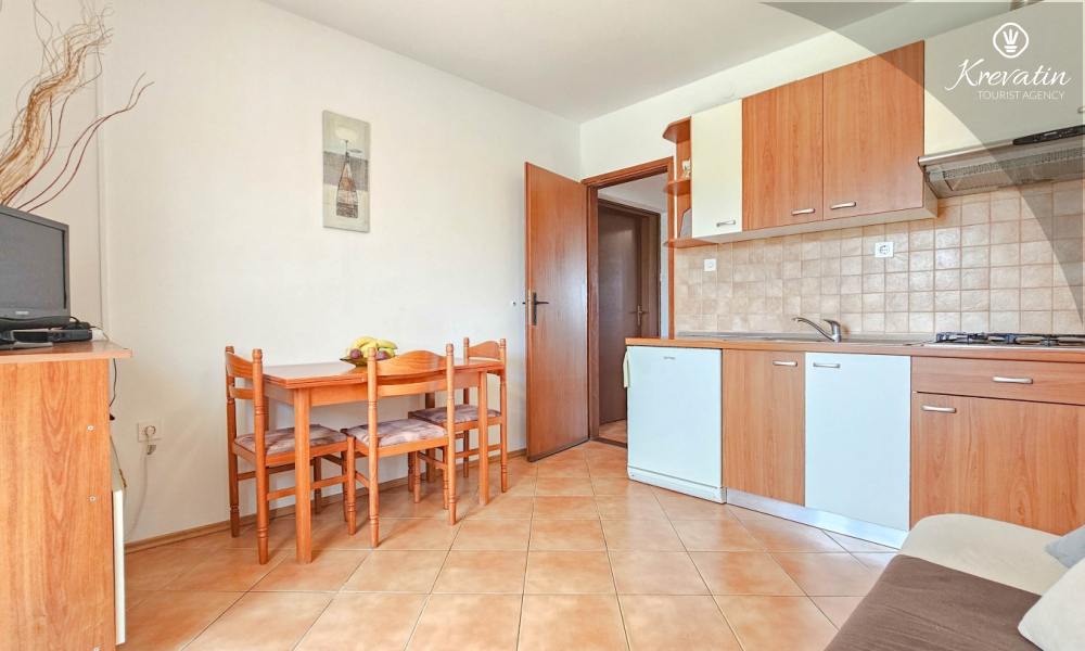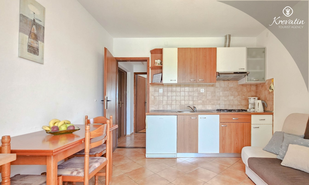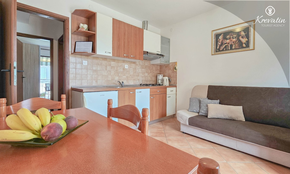 Dieses Apartment im ersten Stock liegt in einem ruhigen Teil von Novigrad und bietet die perfekte Mischung aus Komfort und Entspannung. Es ist ideal für Paare und besteht aus einem gemütlichen Schlafzimmer, einer praktisch ausgestatteten Küche mit Essbereich und einem Badezimmer mit Dusche. Für den Morgenkaffee oder das gesellige Beisammensein bei einem Glas Wein am Abend steht außerdem ein Balkon zur Verfügung.
