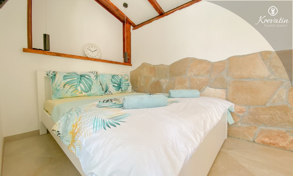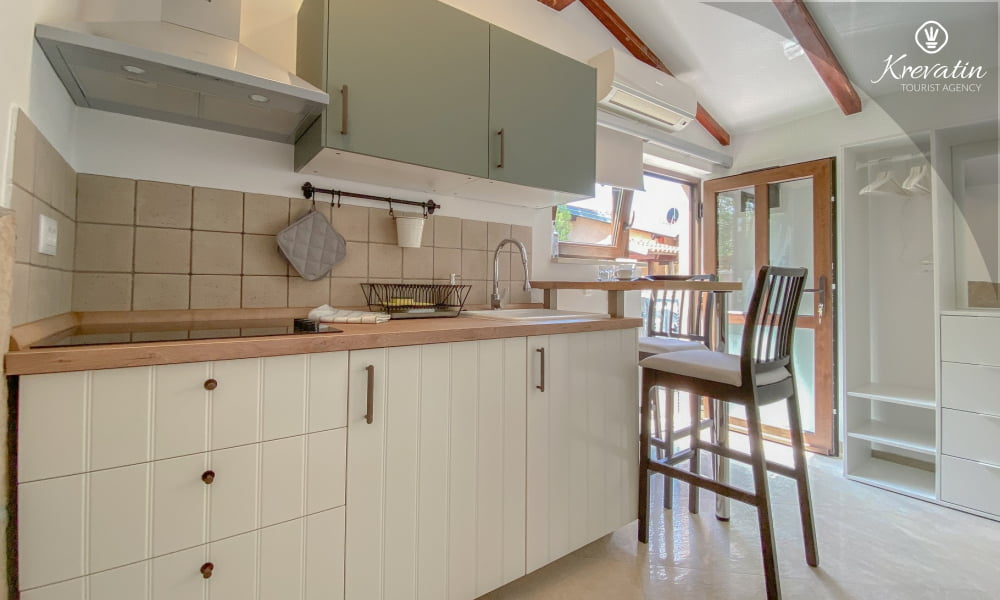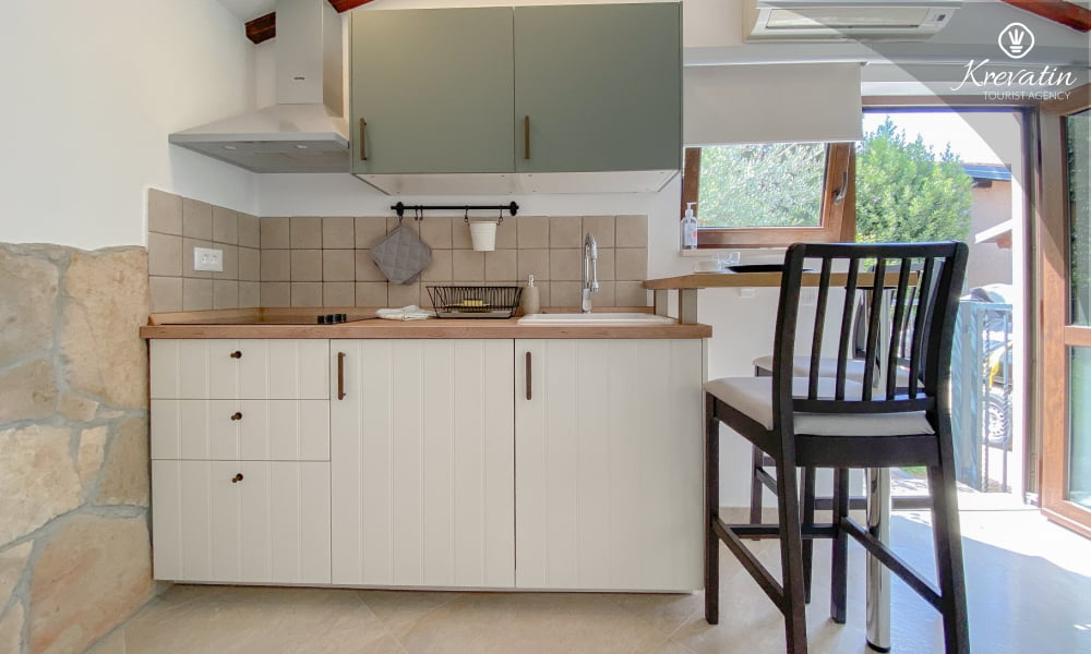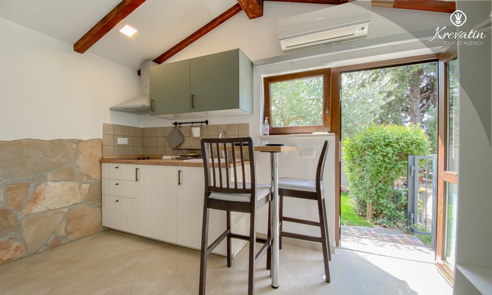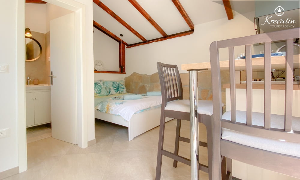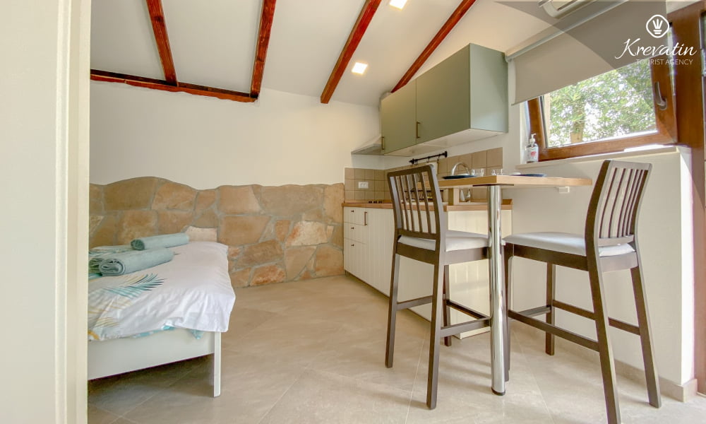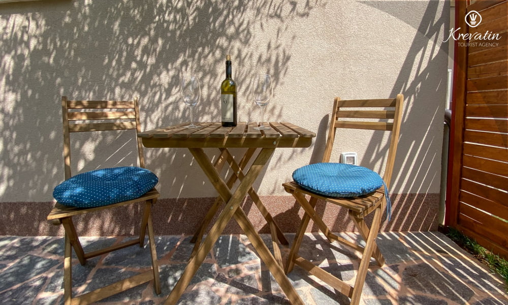 Das Apartment verfügt über ein bequemes Doppelbett und eine voll ausgestattete Küche mit den wichtigsten Utensilien für die Zubereitung einfacher Mahlzeiten. Das Badezimmer ist mit Dusche und WC ausgestattet. Die möblierte Terrasse eignet sich ideal zum Entspannen im Freien.