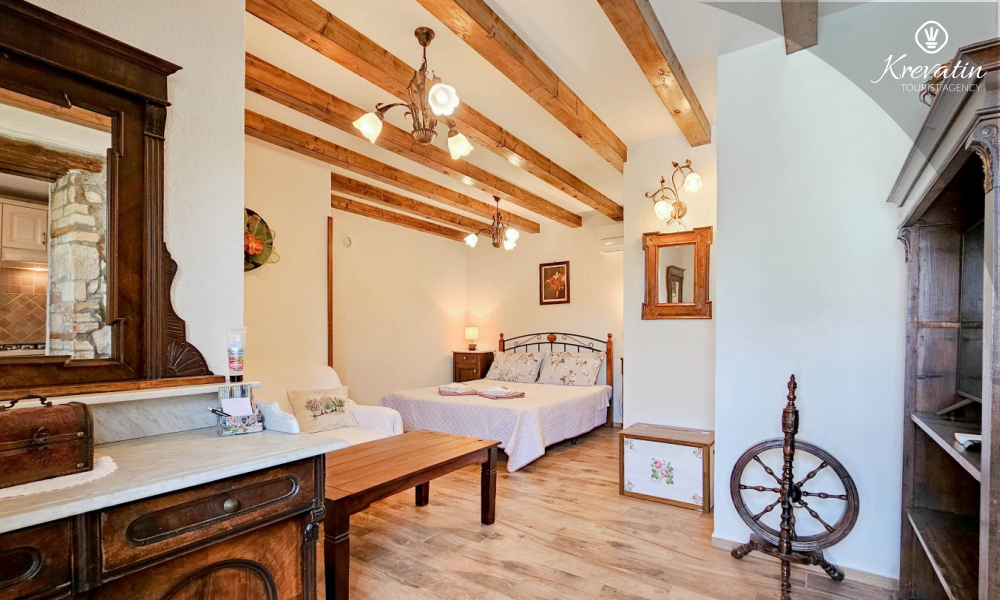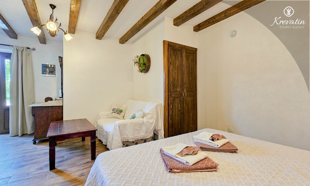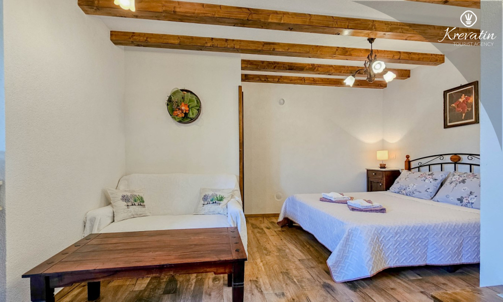 Obwohl das Apartment nicht direkt am Meer liegt, ist es nur wenige Autominuten vom Strand und der charmanten Altstadt von Novigrad entfernt. Dort erwarten Sie vielfältige gastronomische Angebote, Strandpromenaden, Weingüter und ein unvergessliches istrisches Flair.