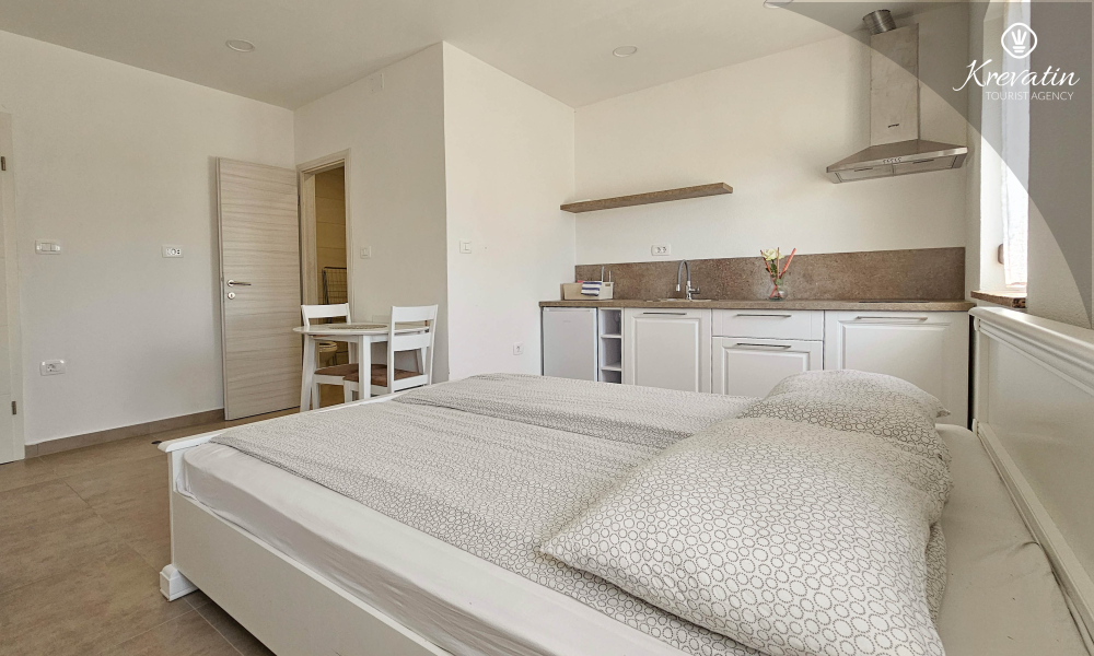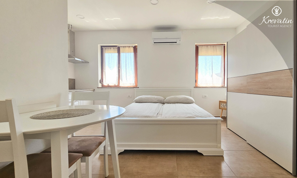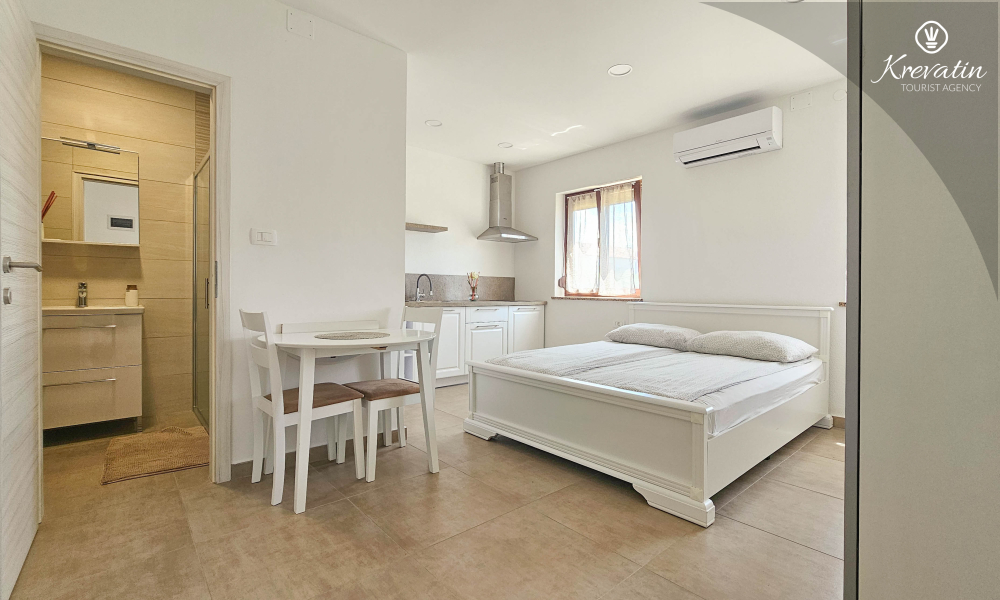 Willkommen in unserem modernen Studio-Apartment im Herzen von Umag. Dieses Apartment im Erdgeschoss bietet Komfort und Bequemlichkeit für bis zu zwei Personen.