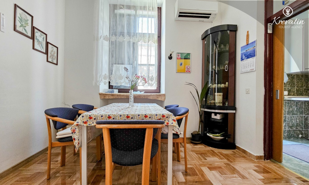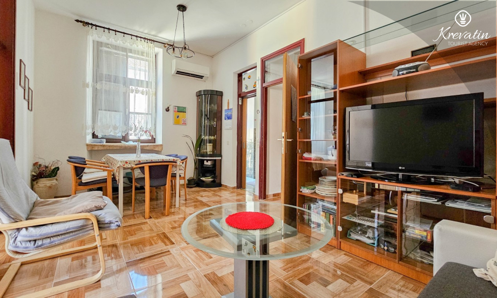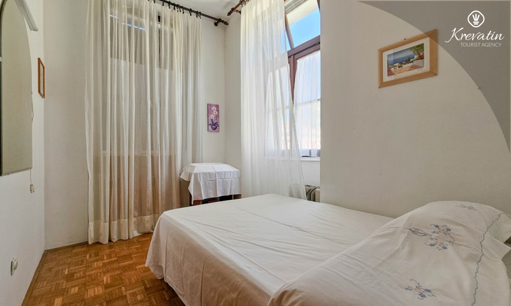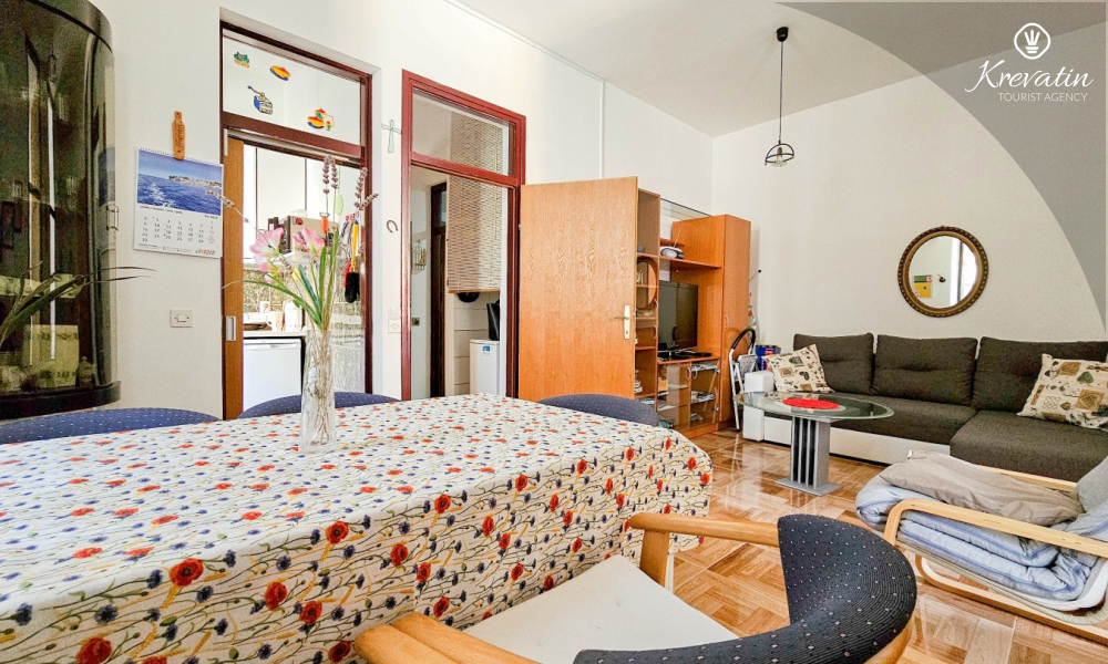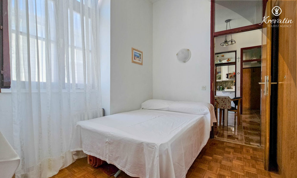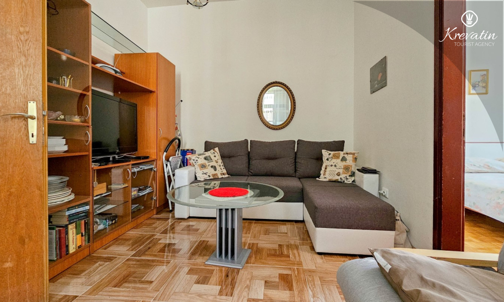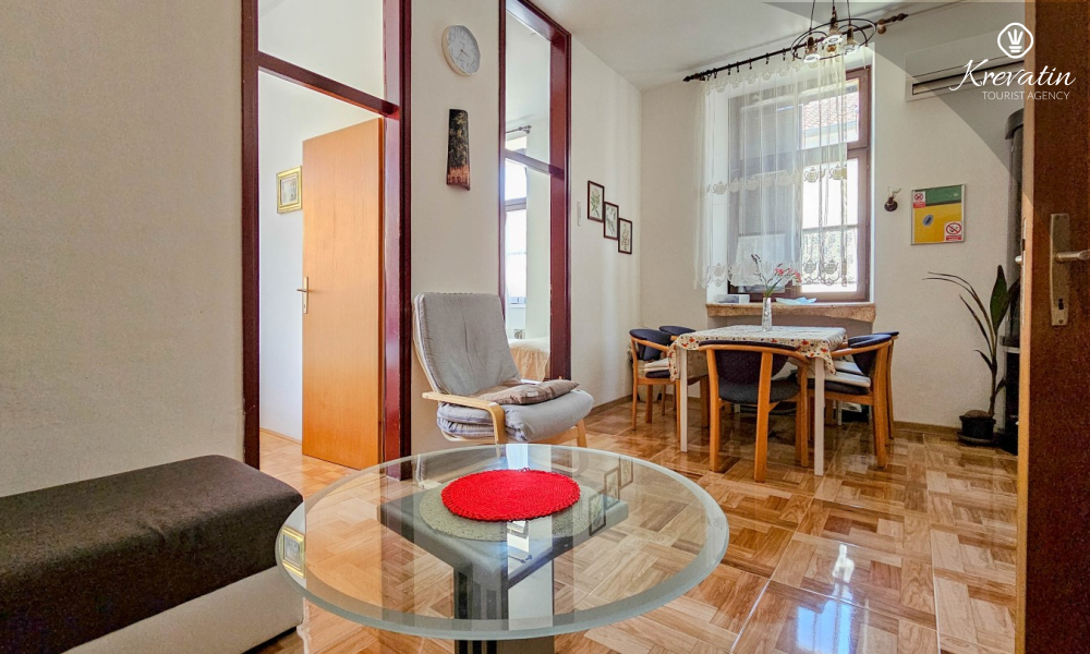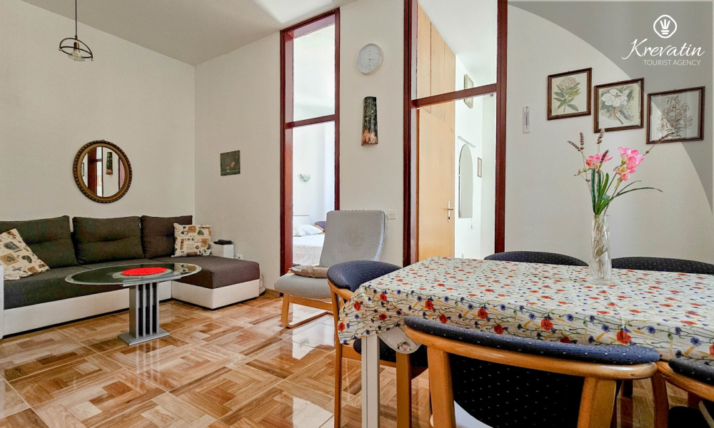 Die Wohnung befindet sich im ersten Stock und ist ideal für bis zu 4 Personen. Sie verfügt über zwei Schlafzimmer – eines mit einem Doppelbett und eines mit einem Einzelbett – sowie ein bequemes Schlafsofa im Wohnzimmer, das als zusätzlicher Schlafplatz genutzt werden kann.