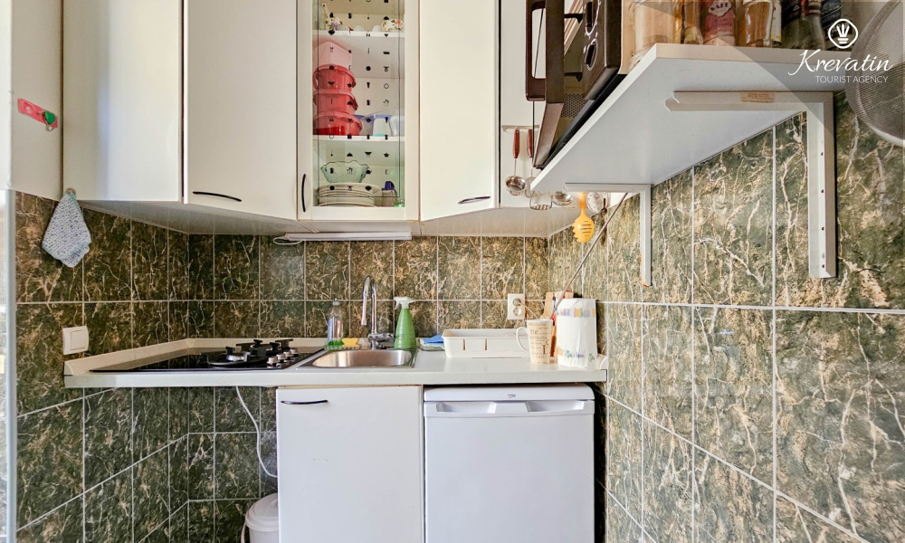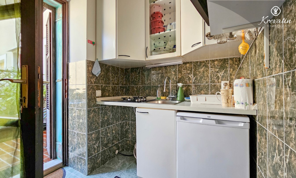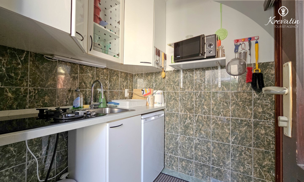 Die Küche ist mit den wichtigsten Utensilien ausgestattet, und das Badezimmer verfügt über eine Duschkabine und ein WC. Klimaanlage, Bettwäsche und Handtücher sind im Preis inbegriffen und sorgen für einen angenehmen und sorglosen Aufenthalt.