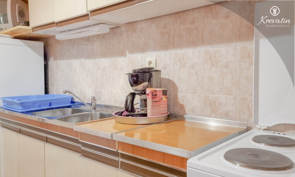 Das Apartment verfügt über zwei komfortable Schlafzimmer, eine Küche mit Essbereich und Grundausstattung sowie ein Badezimmer mit Dusche und WC. Eine Terrasse mit Gartenmöbeln und Meerblick ist ebenfalls vorhanden – ideal für den Morgenkaffee oder gesellige Abende.