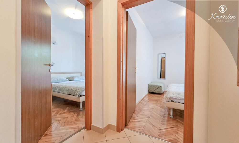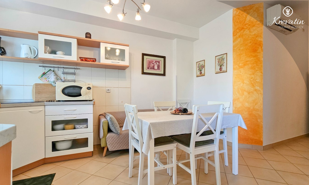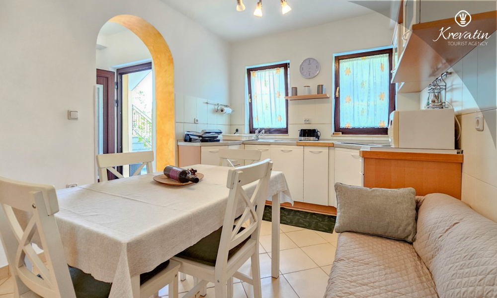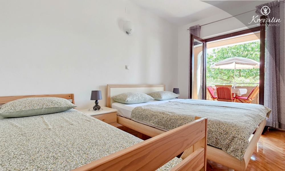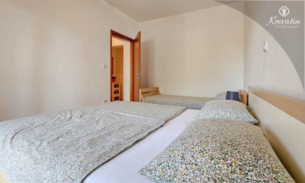 Die Wohnung bietet zwei Schlafzimmer, eine Küche mit Grundausstattung zur Zubereitung von Mahlzeiten, ein Badezimmer mit Dusche und WC sowie zwei überdachte Terrassen mit Tisch und Stühlen – ideal zum Entspannen an der frischen Luft. Ein Gemeinschaftsgarten mit Grillmöglichkeit steht Ihnen ebenfalls zur Verfügung.