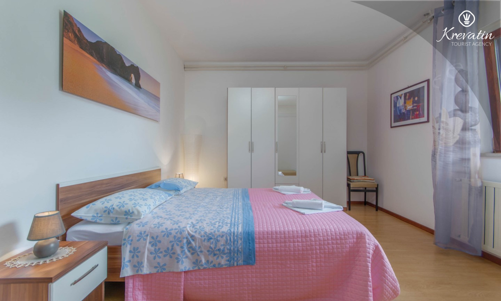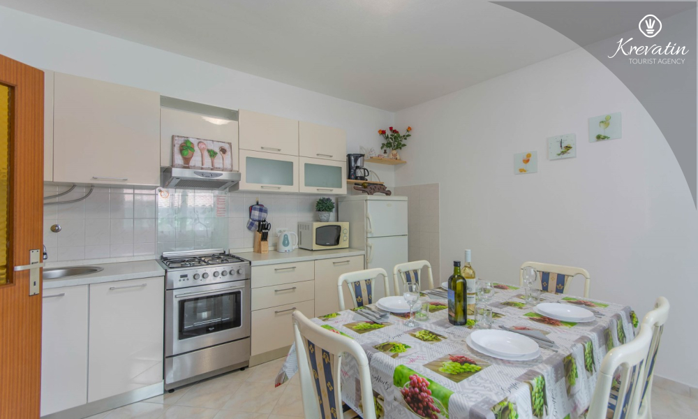 Die Ferienwohnung für 4 bis 5 Personen befindet sich im Erdgeschoss eines Einfamilienhauses. Sie verfügt über zwei Schlafzimmer, eine mit den wichtigsten Annehmlichkeiten ausgestattete Küche, ein Badezimmer mit Dusche und WC sowie eine Terrasse mit Blick auf den Garten – ideal für den Morgenkaffee oder einen entspannten Abend.