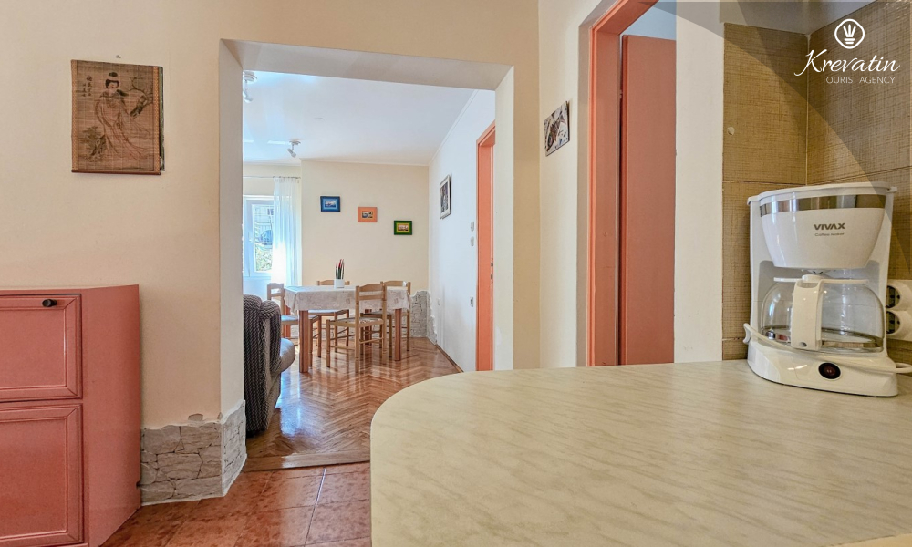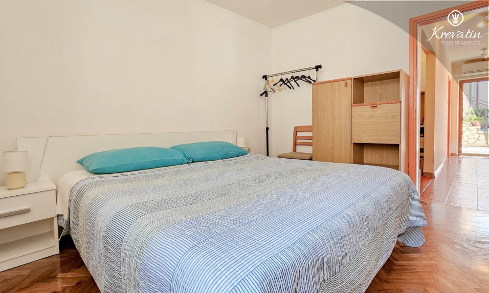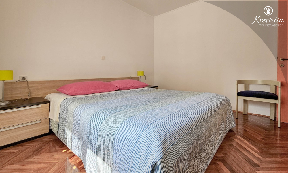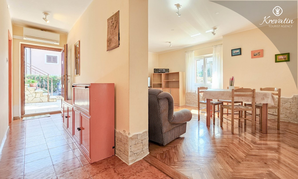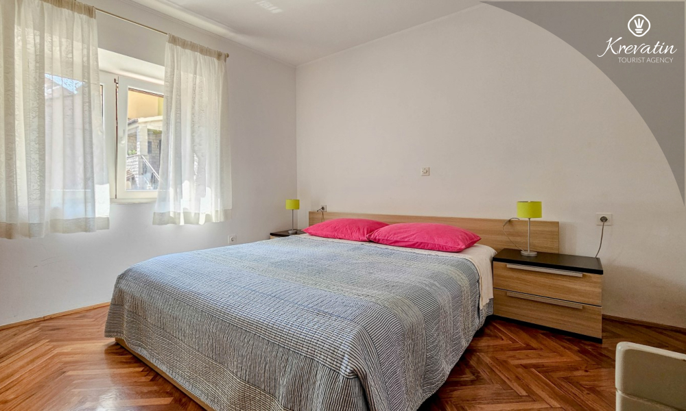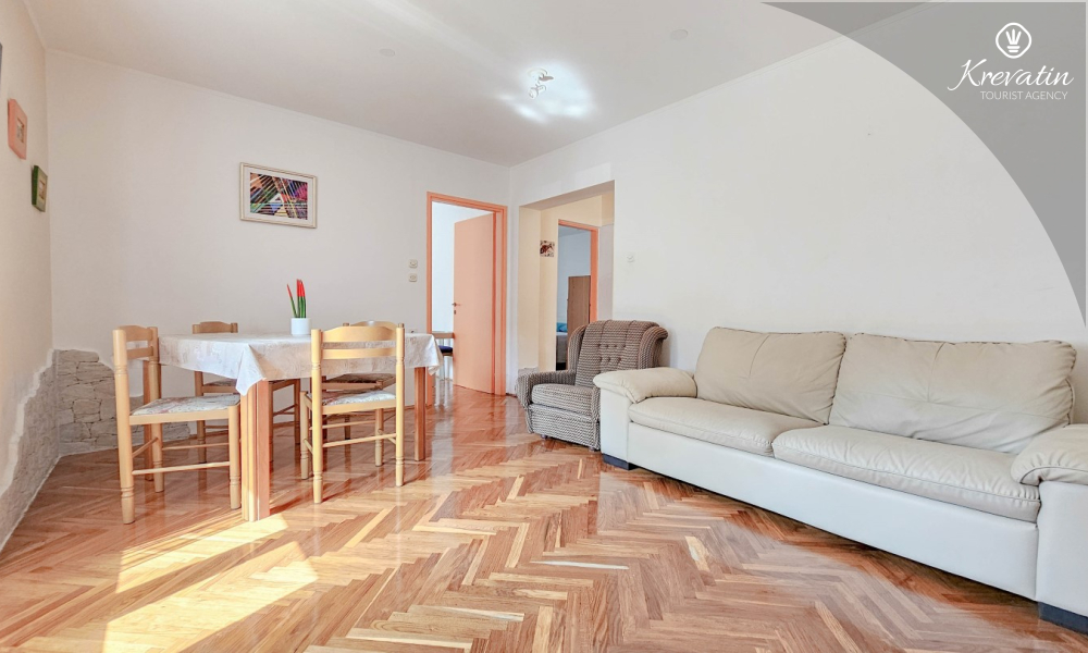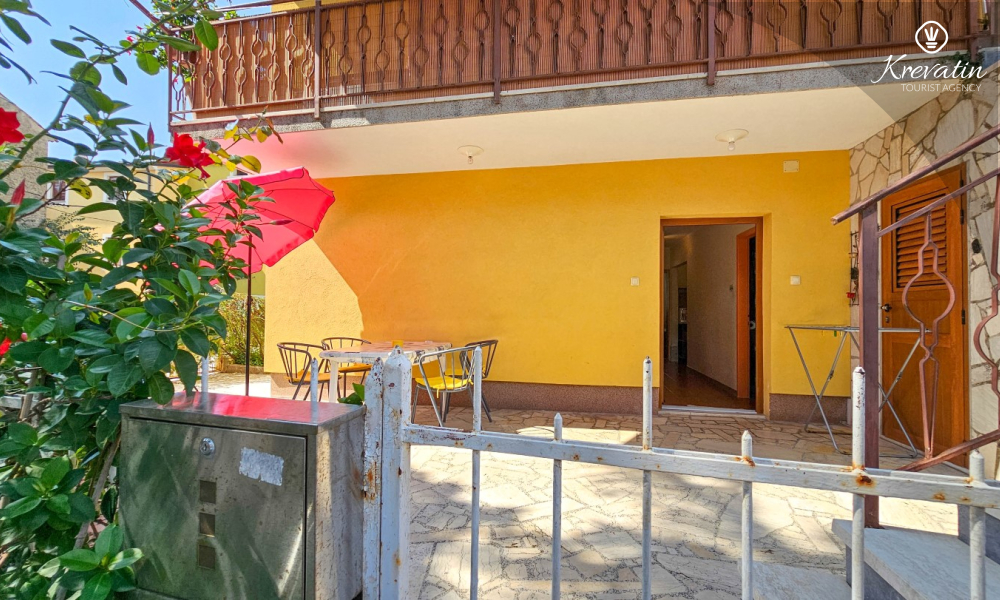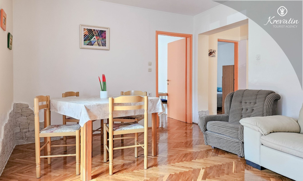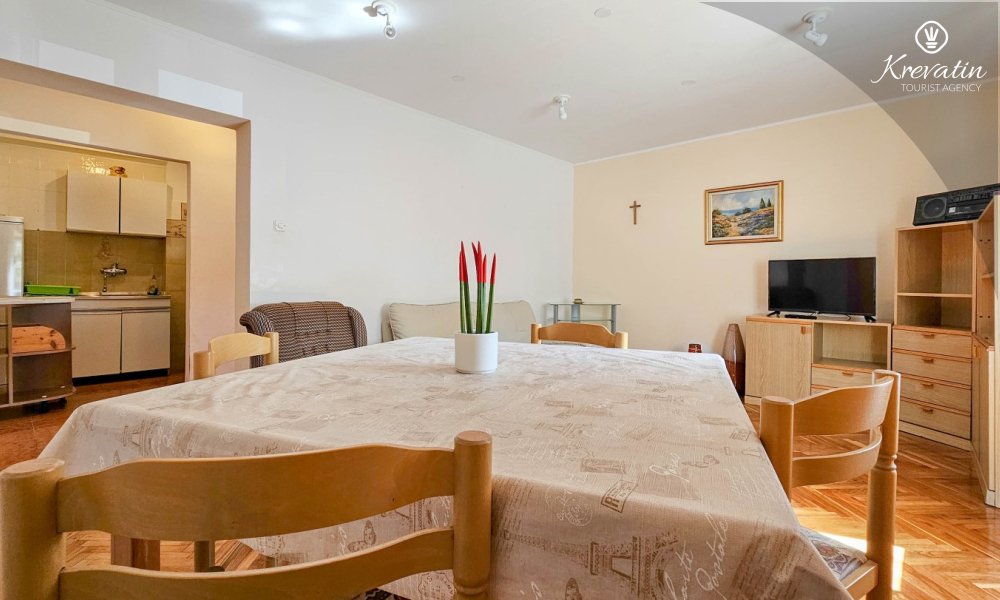 Das Apartment befindet sich im Erdgeschoss eines Einfamilienhauses und verfügt über zwei Schlafzimmer mit Doppelbetten, ein Wohnzimmer mit Essbereich, eine mit grundlegenden Annehmlichkeiten ausgestattete Küche sowie ein Badezimmer mit Dusche und WC. Eine geräumige Terrasse mit Tisch und Stühlen ist der perfekte Ort für einen Morgenkaffee oder einen entspannten Abend.
