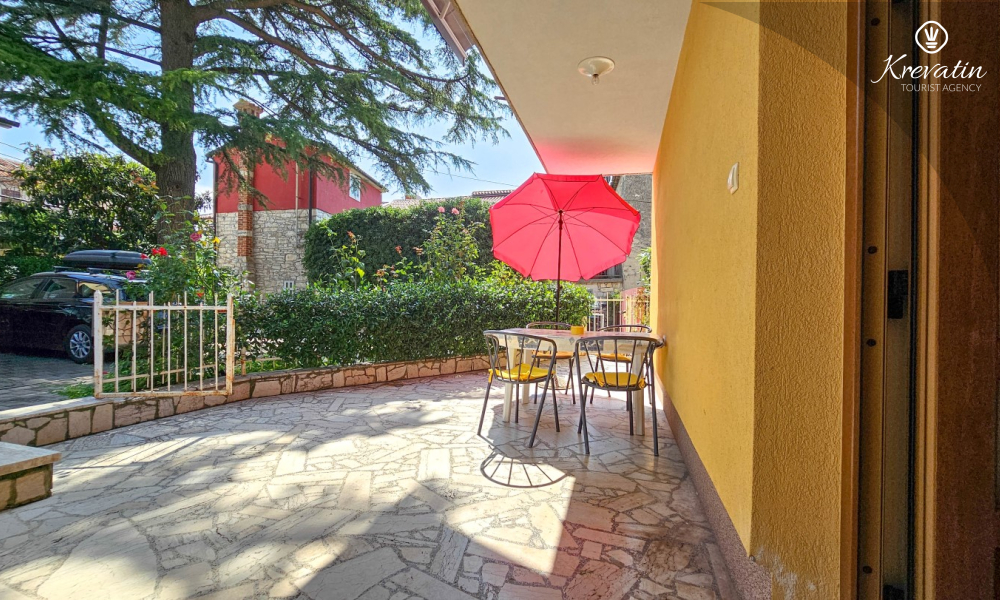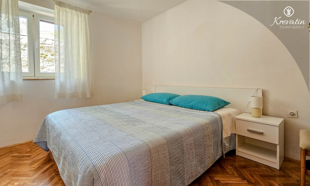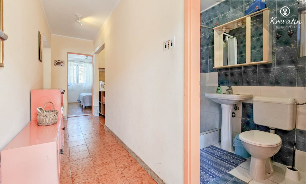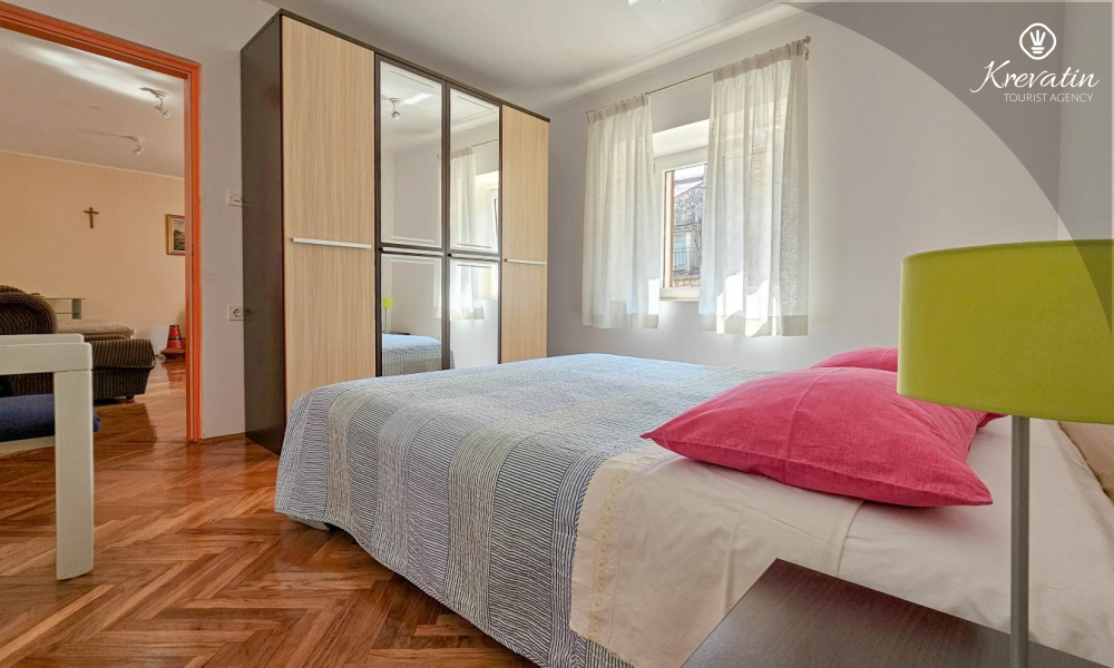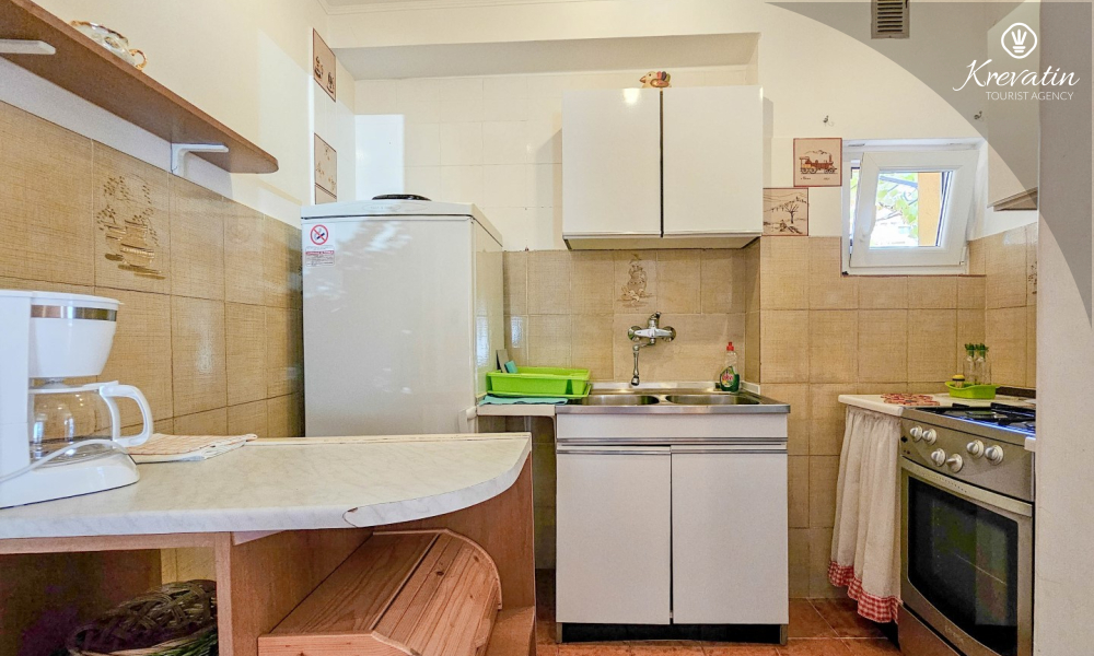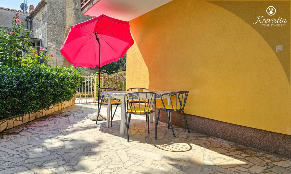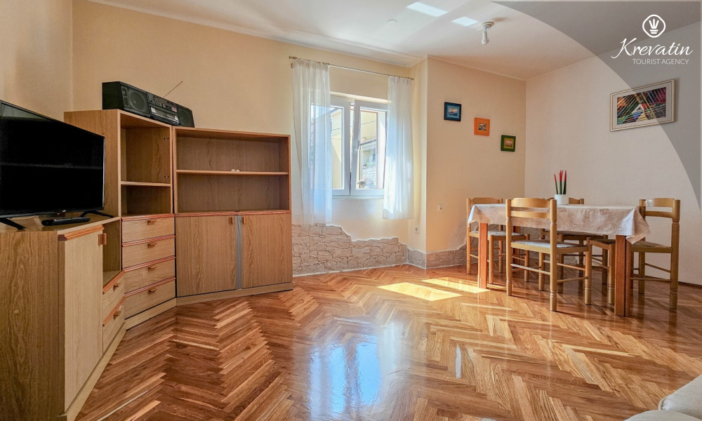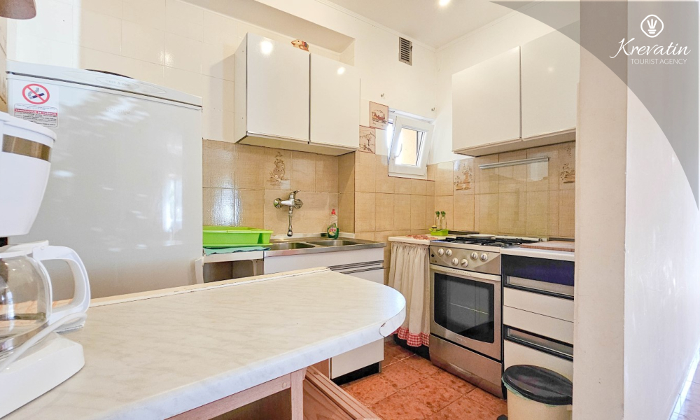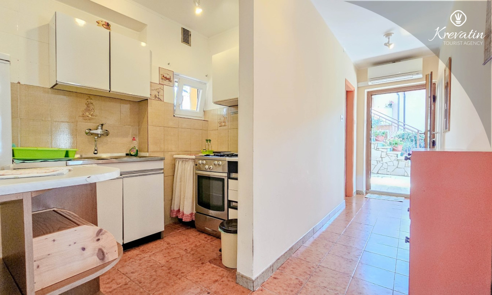 Das Apartment befindet sich im Erdgeschoss eines Einfamilienhauses und verfügt über zwei Schlafzimmer mit Doppelbetten, ein Wohnzimmer mit Essbereich, eine mit grundlegenden Annehmlichkeiten ausgestattete Küche sowie ein Badezimmer mit Dusche und WC. Eine geräumige Terrasse mit Tisch und Stühlen ist der perfekte Ort für einen Morgenkaffee oder einen entspannten Abend.