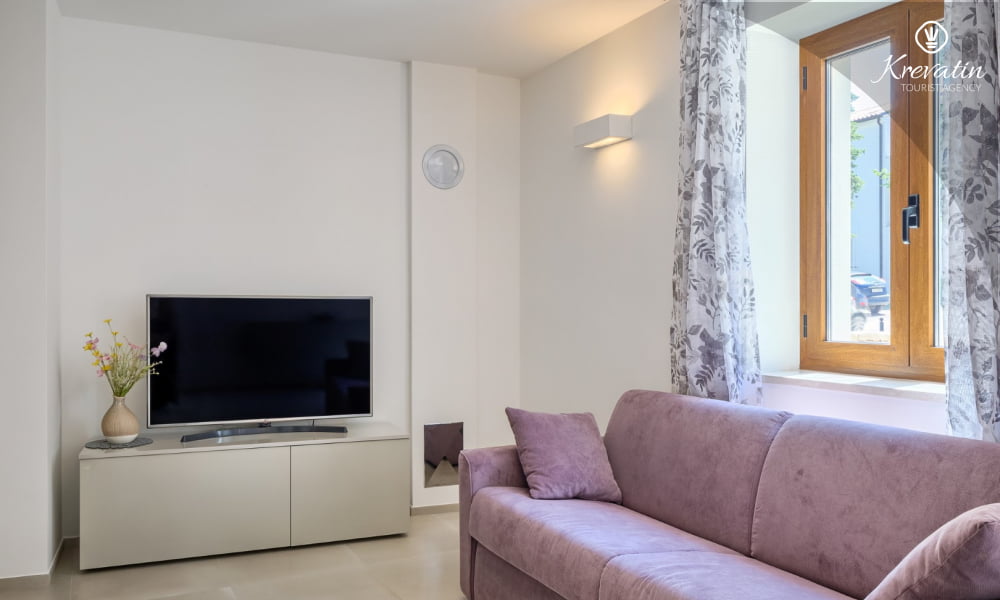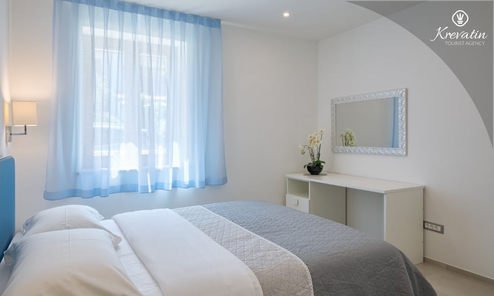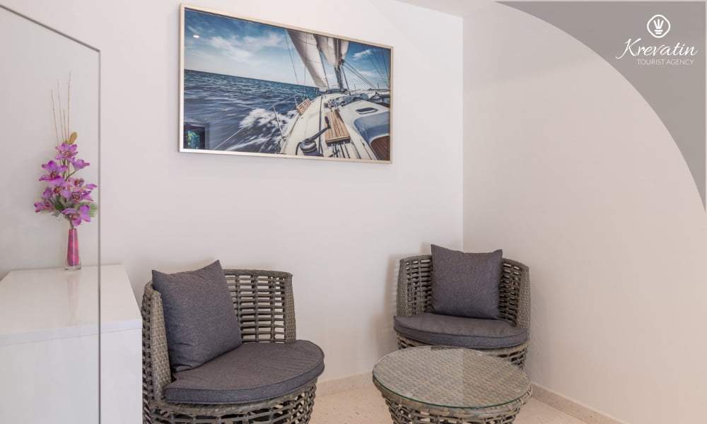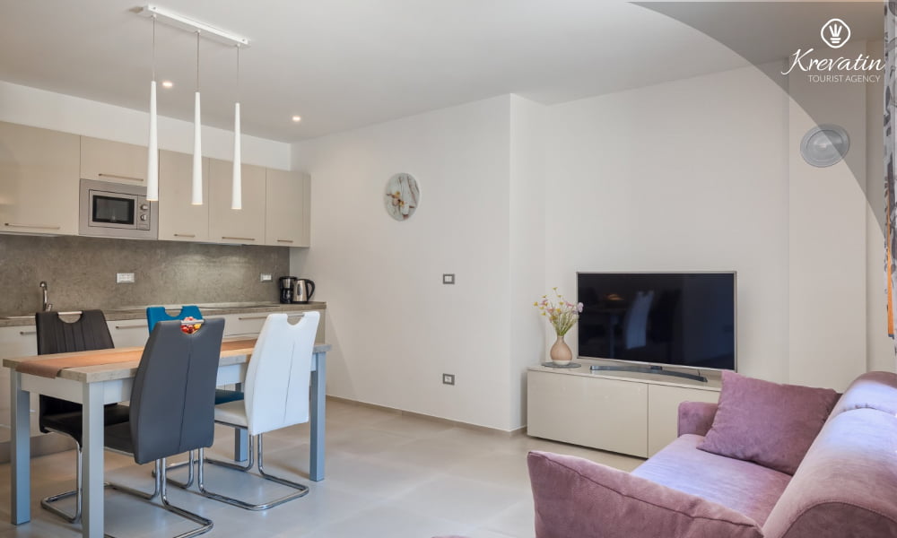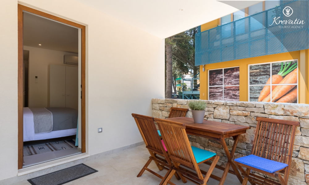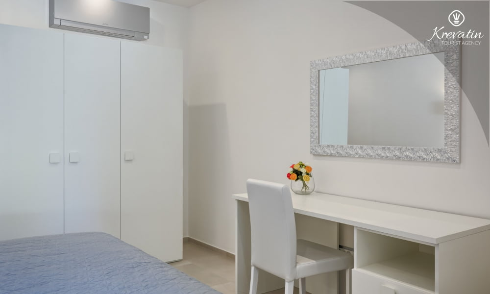 Diese Wohnung für bis zu 6 Personen befindet sich im Erdgeschoss eines Hauses im Zentrum der Stadt und besteht aus zwei Schlafzimmern, einem Wohnzimmer und einer Küche mit Esszimmer. Die Küche ist mit Elektroherd, Kühlschrank, Wasserkocher und Kaffeemaschine ausgestattet. Weiterhin gibt es ein Badezimmer mit Dusche und Toilette und ein Badezimmer mit Toilette. Fön, Bügeleisen und Bügelbrett stehen zur Nutzung bereit. Eine Terrasse mit Tisch und Stühlen ist ebenfalls vorhanden. SAT-TV, Klimaanlage, WLAN und Bettwäsche sind im Preis inbegriffen.