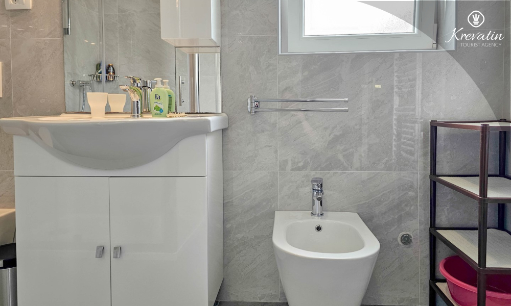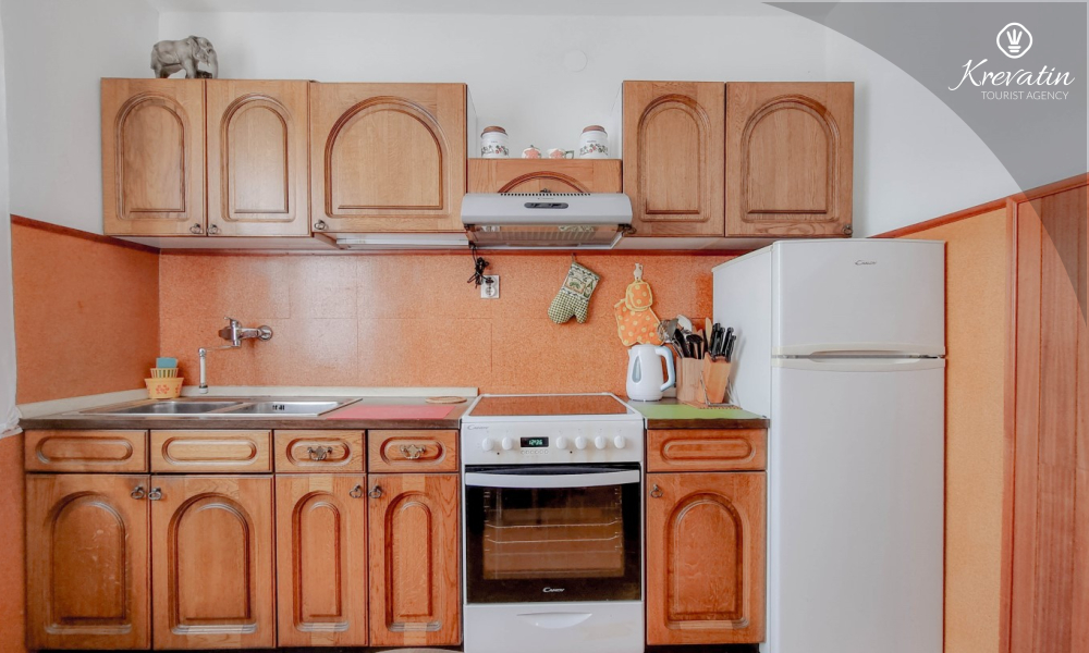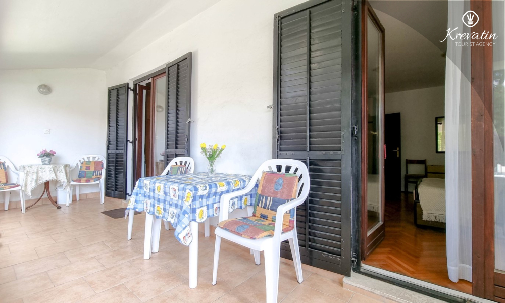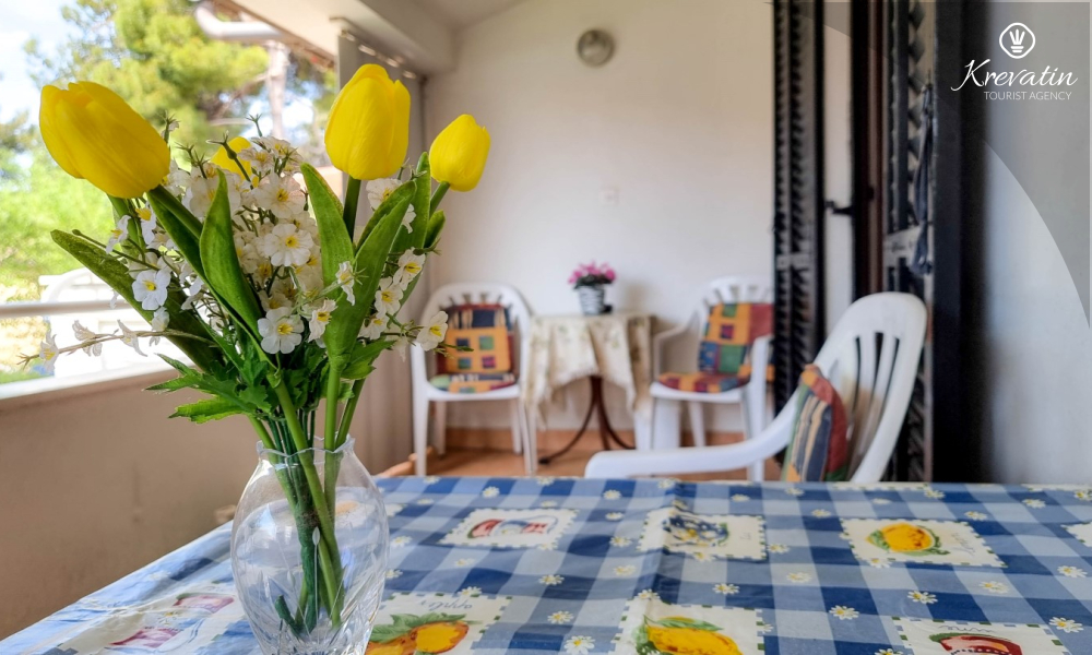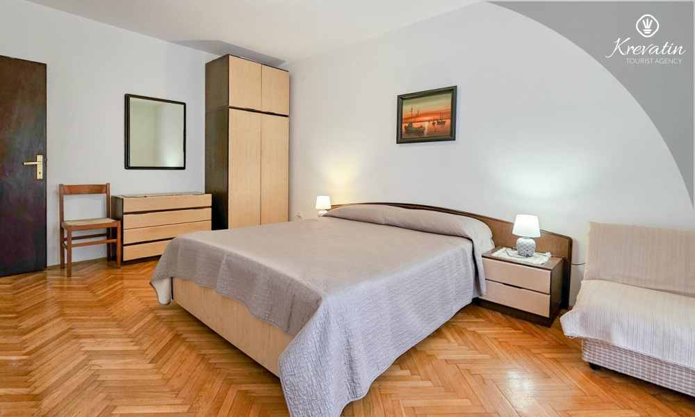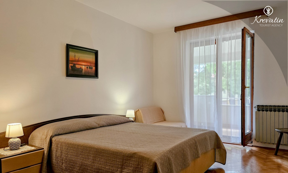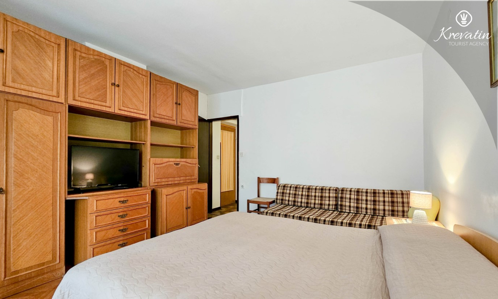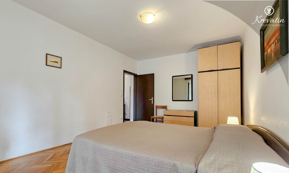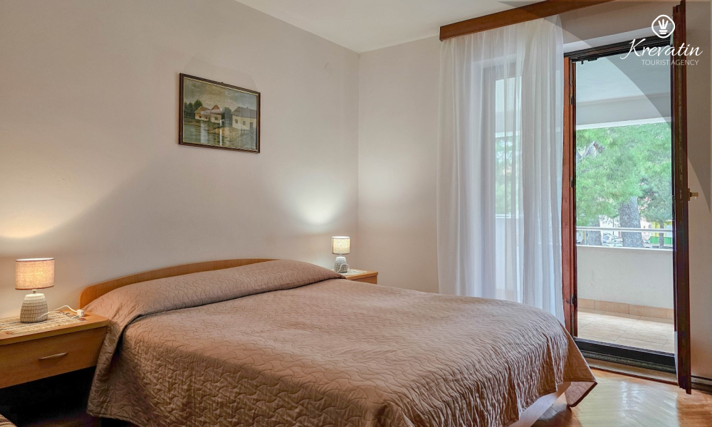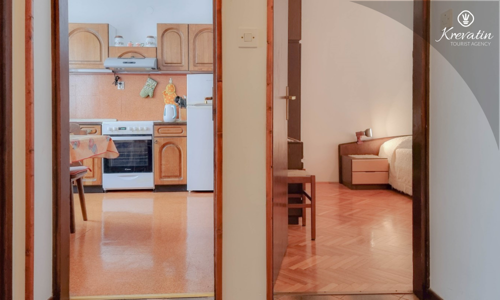 Diese Apartment für 4 Personen, am ersten Stock gelegen, besteht aus zwei Schlafzimmer und eine Küche mit Esszimmer. Die Küche ist mit Elektroherd, Backofen, Kühlschrank, Mikrowelle und Kaffeemaschine ausgestattet. Desweiteren gibt es ein Badezimmer mit Badewanne und Toilete, sowie einen Balkon mit Terrassenmöbeln. Inklusive sind SAT-TV, Klimaanlage, WLAN, Bettwäsche und Handtücher. Haustiere sind nicht erlaubt.