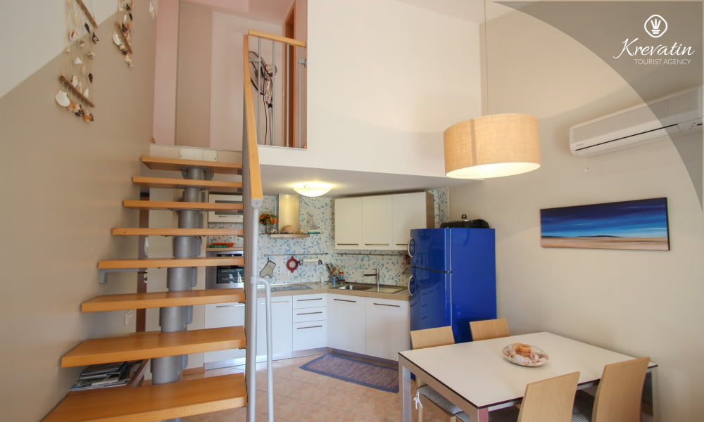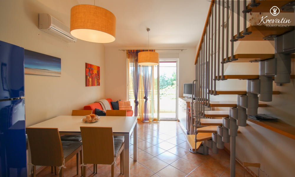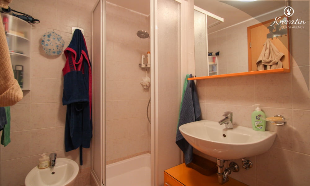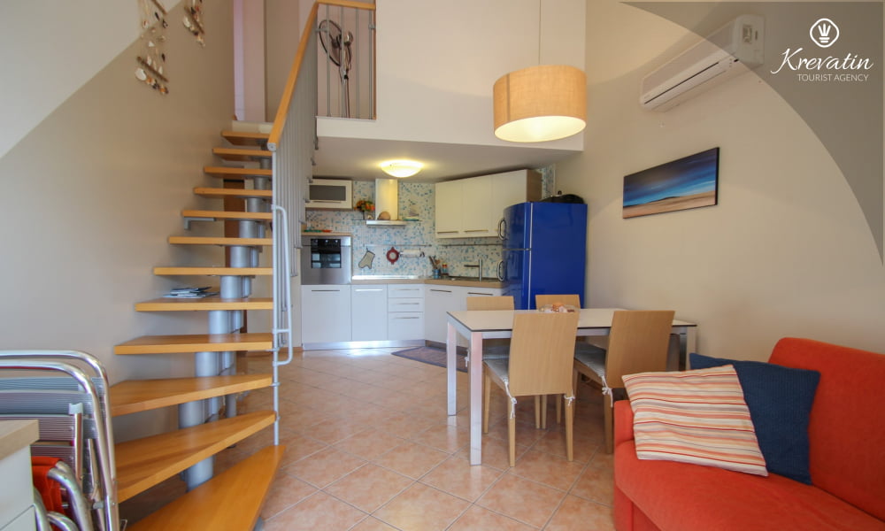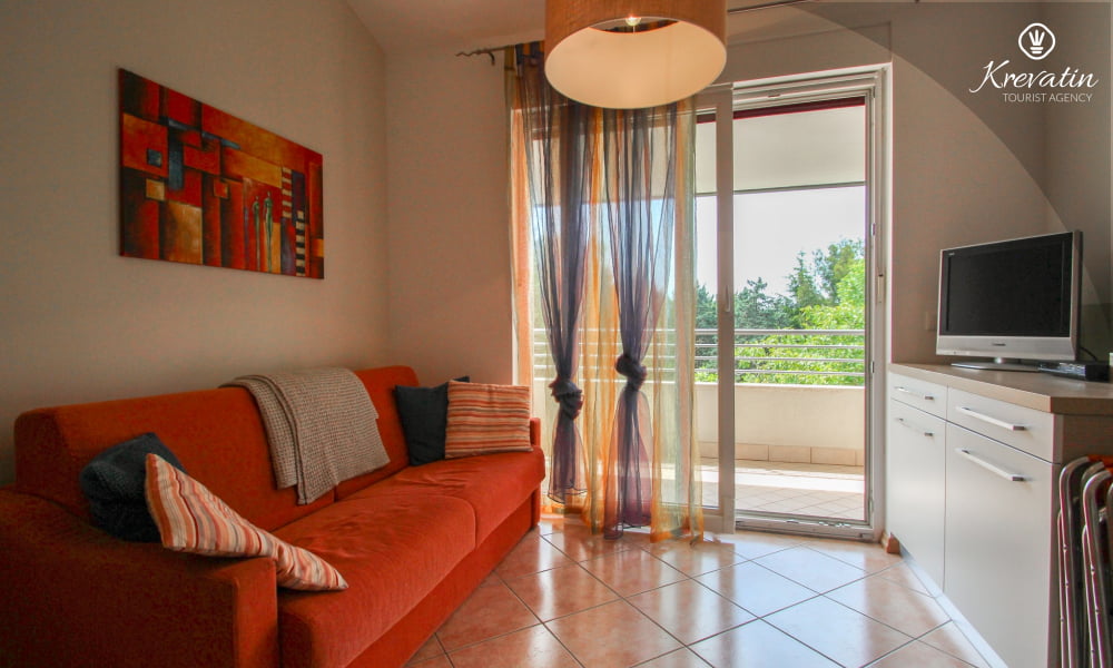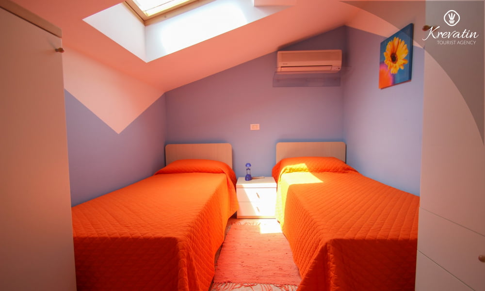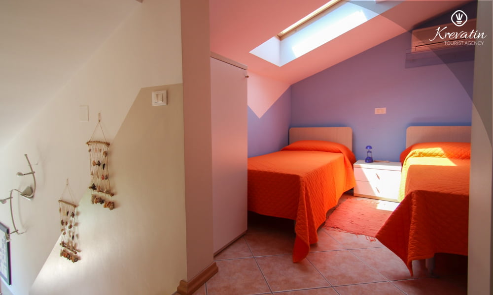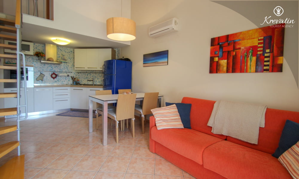 Die Wohnung bietet Platz für bis zu 4 Personen und besteht aus zwei komfortablen Schlafzimmern – eines mit einem Doppelbett und eines mit zwei getrennten Betten – und bietet allen Gästen eine komfortable Unterkunft. Das geräumige Wohnzimmer ist der perfekte Ort zum Entspannen nach einem erlebnisreichen Tag in der Schönheit Istriens.