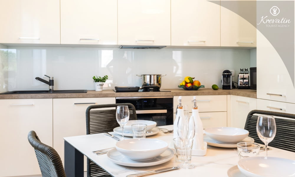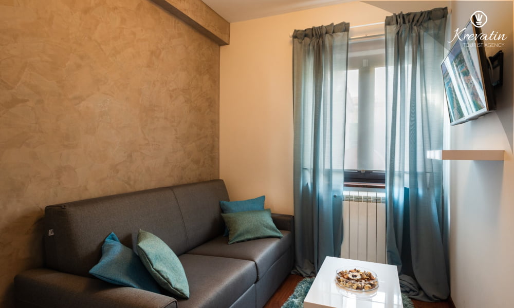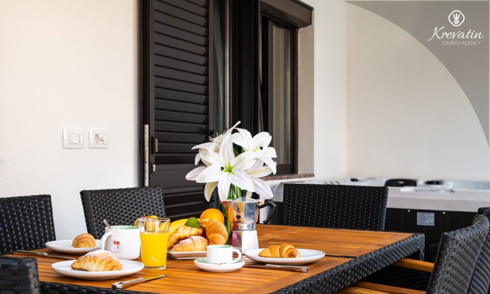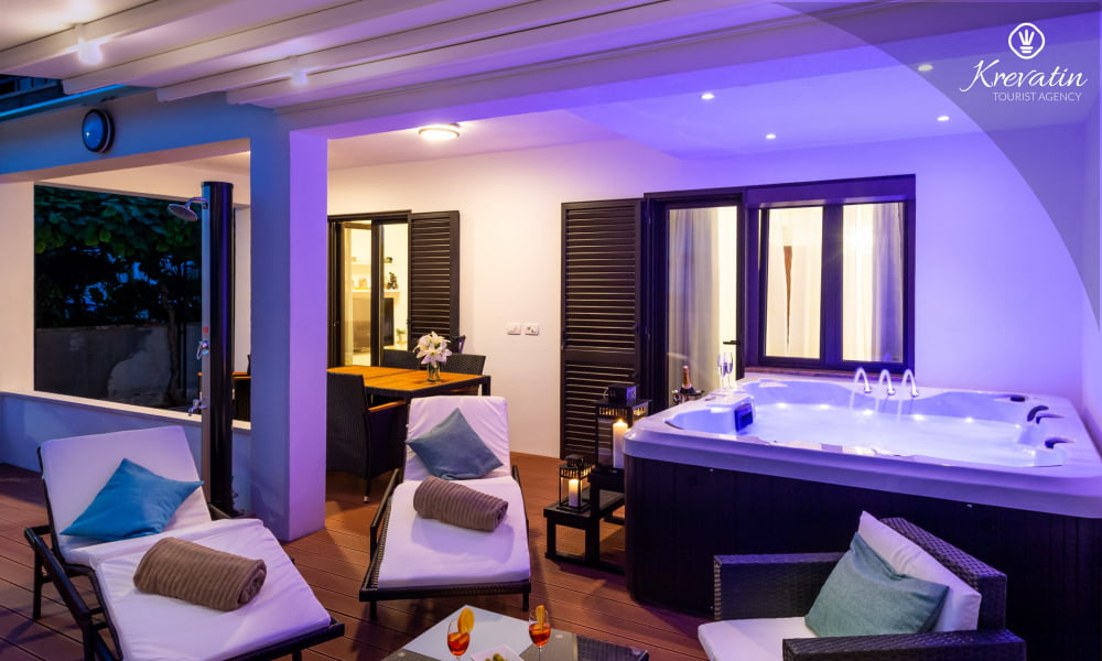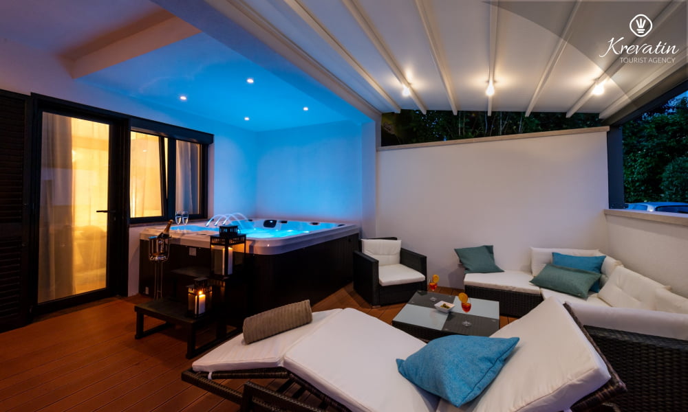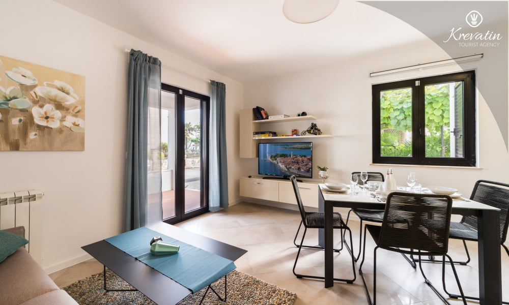 Diese Apartment für 4-6 Personen, im Erdgeschoss gelegen, besteht aus drei Schlafzimmern (zwei mit Doppelbett und eins mit ein Sofabett), ein Wohnzimmer und eine Küche mit Esszimmer. Die Küche ist mit Elektroherd, Backofen, Kühlschrank, Mikrowelle, Spülmaschine und Kaffeemaschine ausgestattet. Desweiteren gibt es ein Badezimmer mit Dusche und Toilete, eine weitere Toilete sowie eine grosse Terrasse mit Terrassenmöbeln und mit Whirlpool. Inklusive sind SAT-TV, Klimaanlage, WLAN, Waschmaschine, Bettwäsche und Handtücher. Haustiere sind nicht erlaubt.