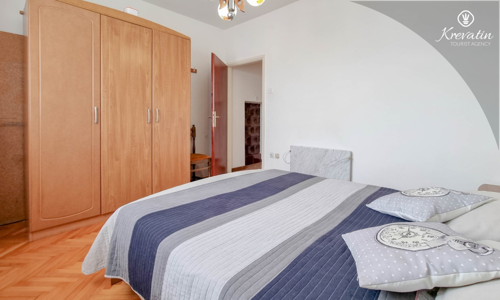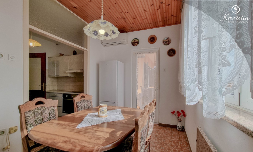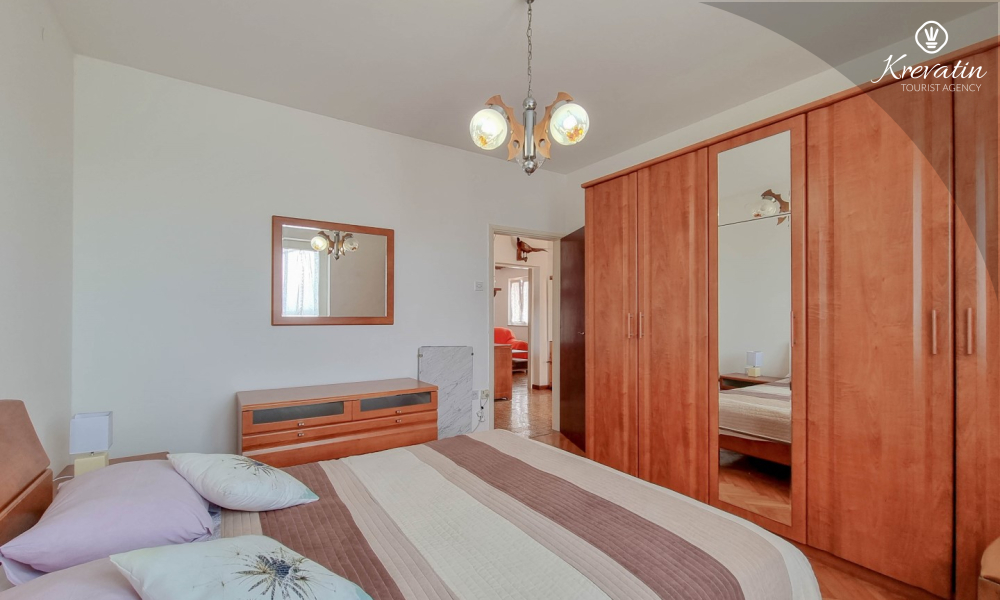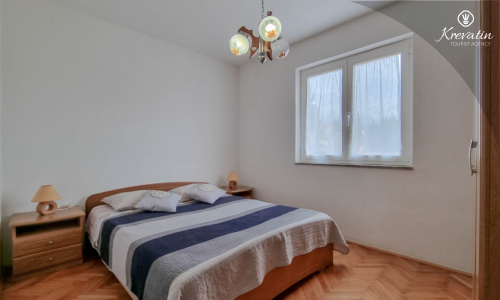 Dieses Apartment für bis zu 4 Personen befindet sich im ersten Stock und besteht aus zwei Schlafzimmern, einem Wohnzimmer und einer Küche mit Esszimmer. Die Küche ist mit Elektroherd, Backofen, Kühlschrank und Kaffeemaschine ausgestattet. Außerdem gibt es ein Badezimmer mit Dusche und WC. SAT-TV, Klimaanlage, WLAN, Bettwäsche und Handtücher sind im Preis inbegriffen, Haustiere sind gegen Aufpreis willkommen.