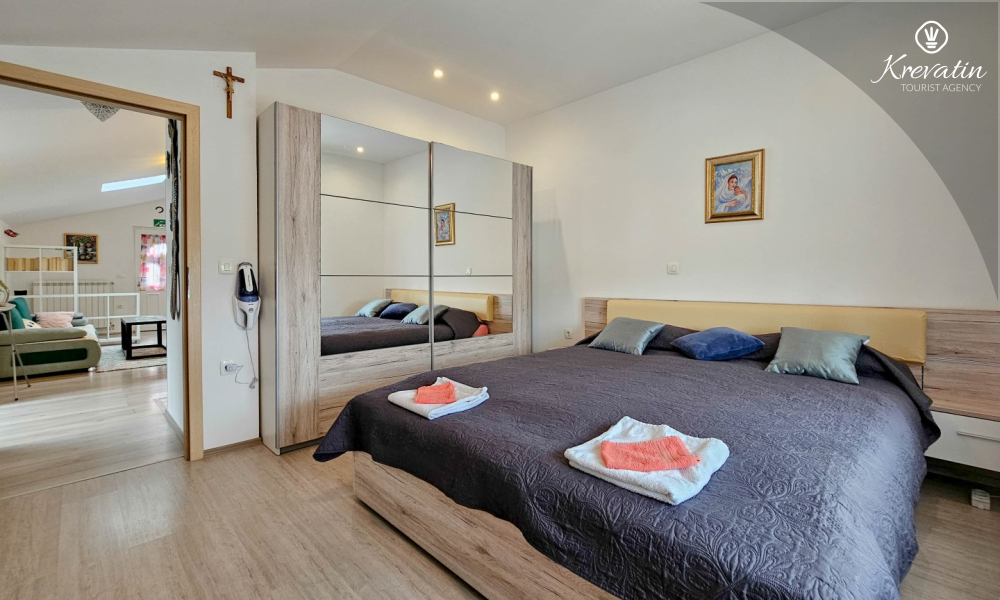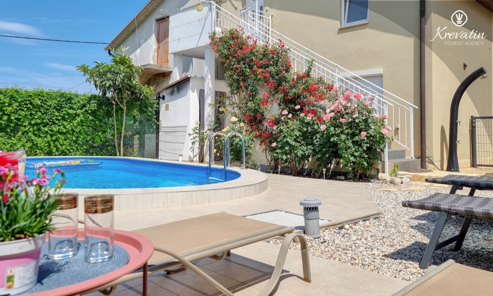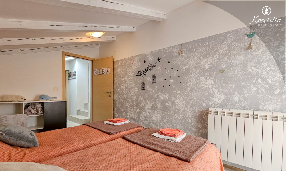 Willkommen in unserem charmanten Apartment in Juricani, einem idyllischen Ort in der Nähe von Umag, ideal zum Entspannen und Genießen der natürlichen Schönheit Istriens. Dieses geräumige Apartment befindet sich im ersten Stock eines Einfamilienhauses und bietet Platz für bis zu 5 Personen und ist die ideale Unterkunft für Familien oder kleine Gruppen von Freunden.