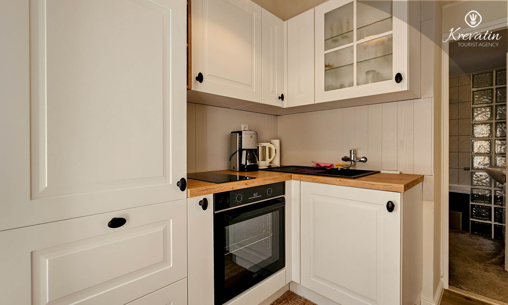 Willkommen in unserem Apartment im Herzen von Novigrad, einer der schönsten Städte an der Küste Istriens. Unsere komfortable Wohnung von 43 m2 ist perfekt für einen komfortablen Aufenthalt von vier Personen. Die Küche ist mit dem Nötigsten ausgestattet und verfügt über eine Kaffeemaschine, sodass Sie Ihre Lieblingsgerichte zubereiten oder bei einer Tasse Kaffee entspannen können.