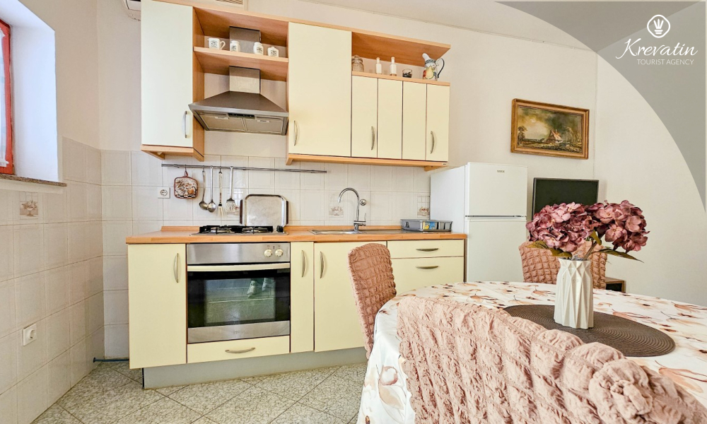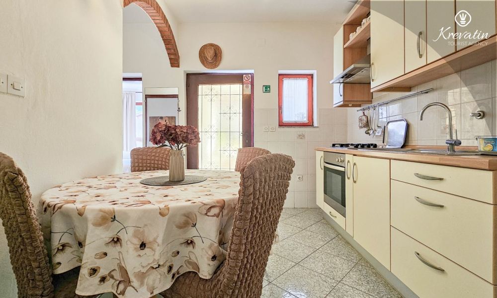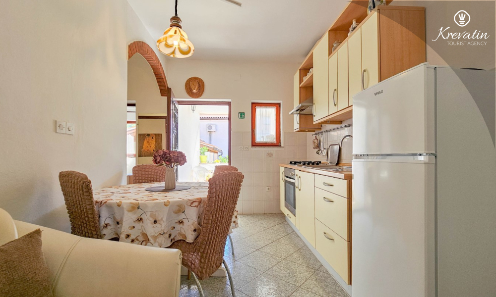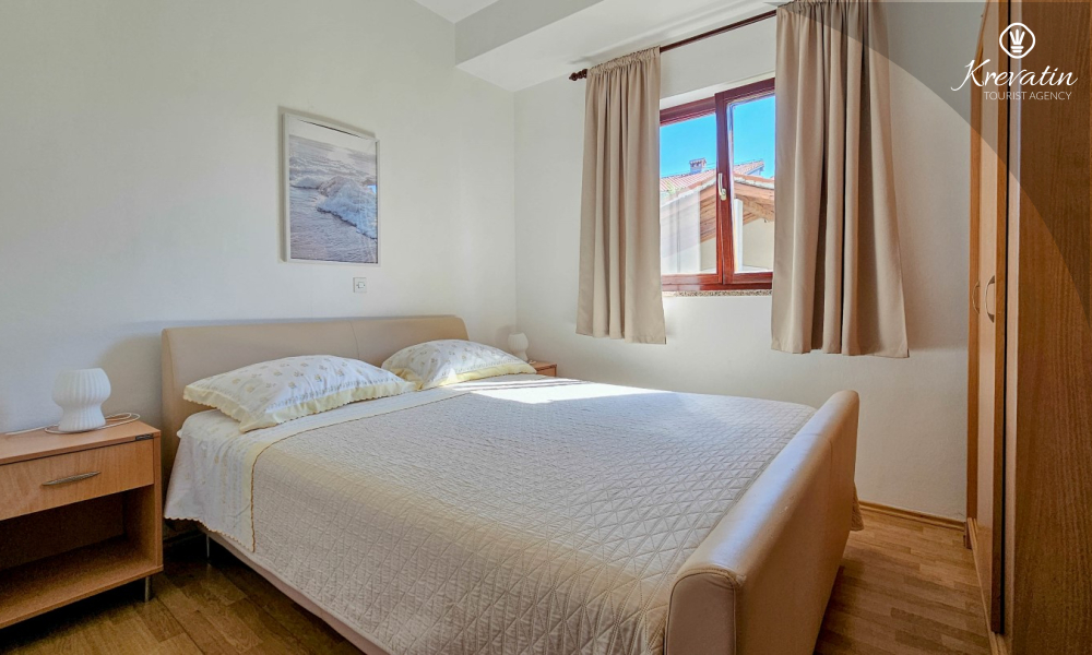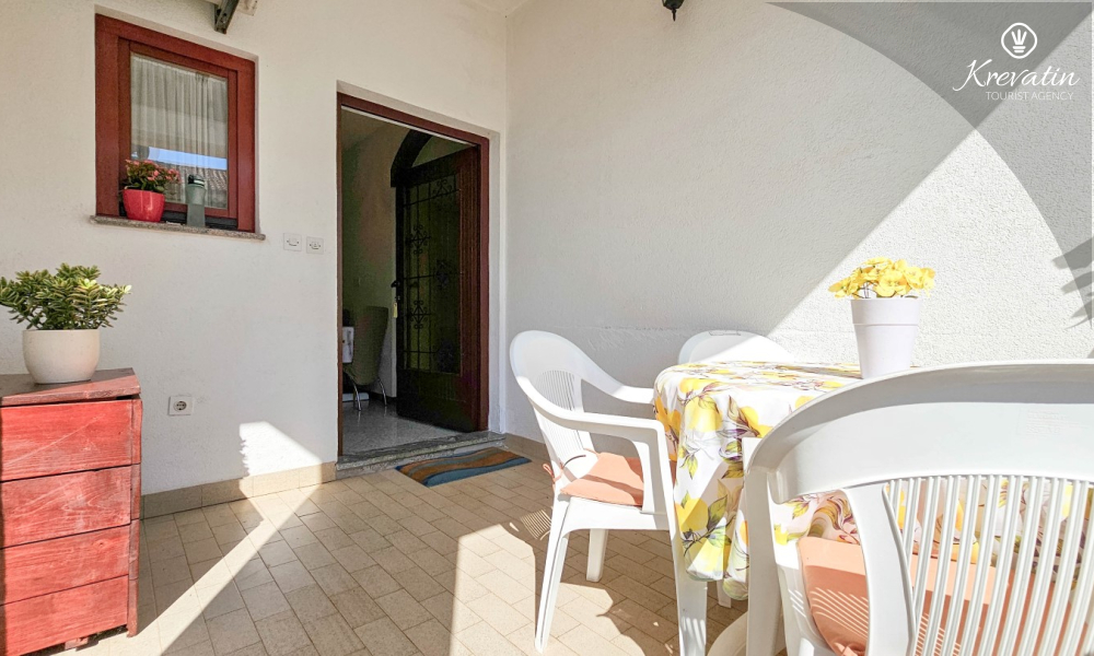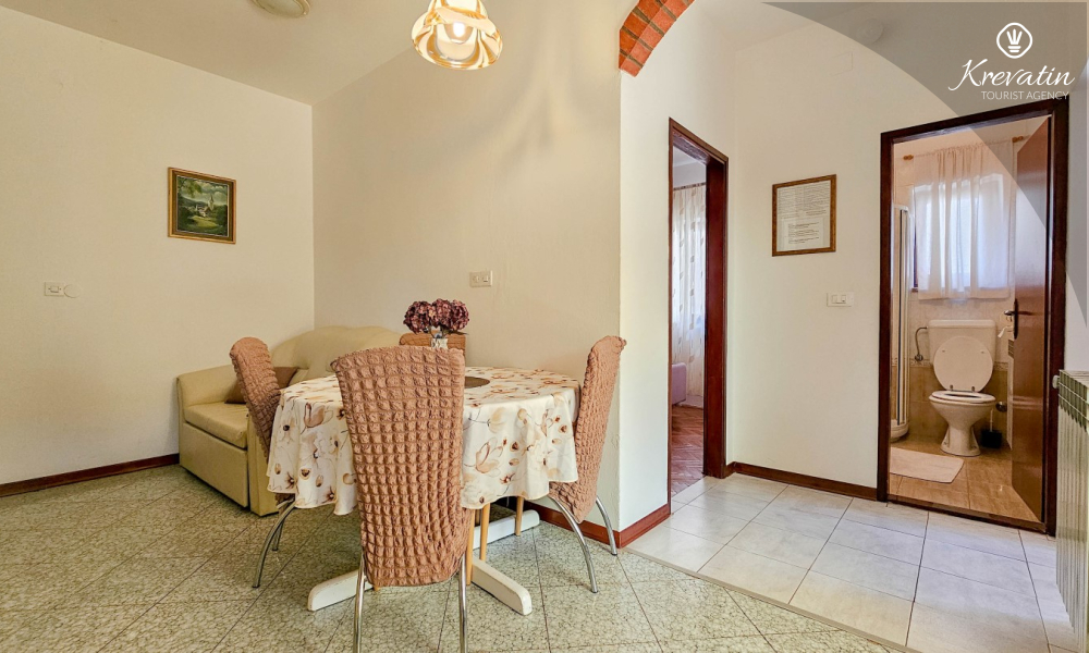 Das Apartment ist ideal für vier Personen und verfügt über zwei komfortable Schlafzimmer mit Doppelbetten, ein Wohnzimmer, eine mit grundlegenden Annehmlichkeiten ausgestattete Küche und ein praktisches Badezimmer mit Dusche und WC. Die Außenterrasse mit einem schönen Tisch und Stühlen lädt zum Entspannen im Freien und Genießen der warmen istrischen Abende ein.