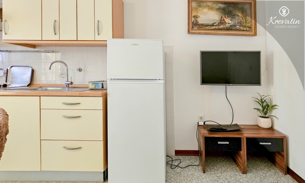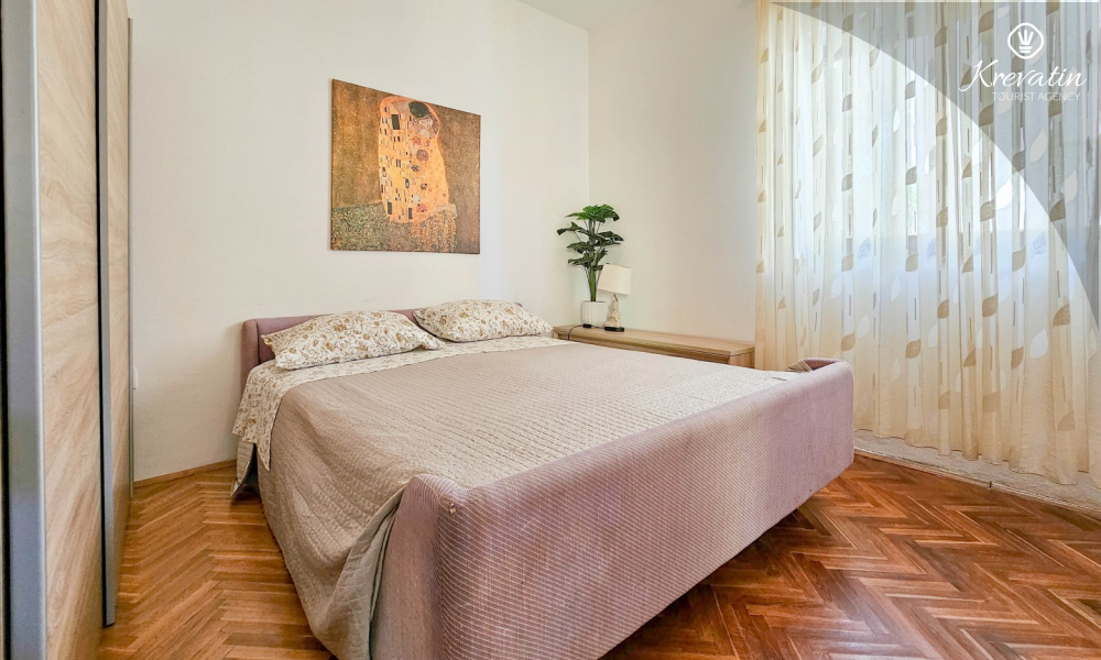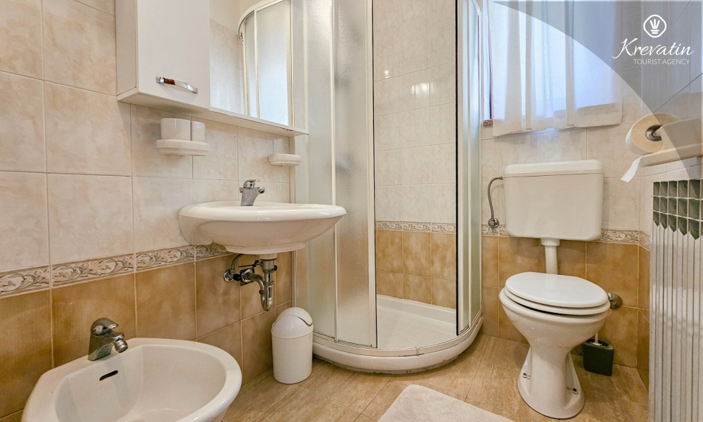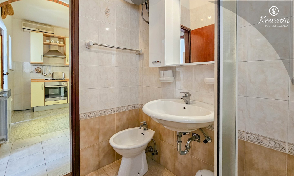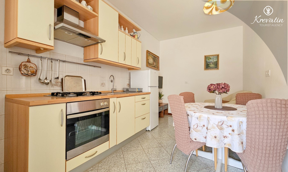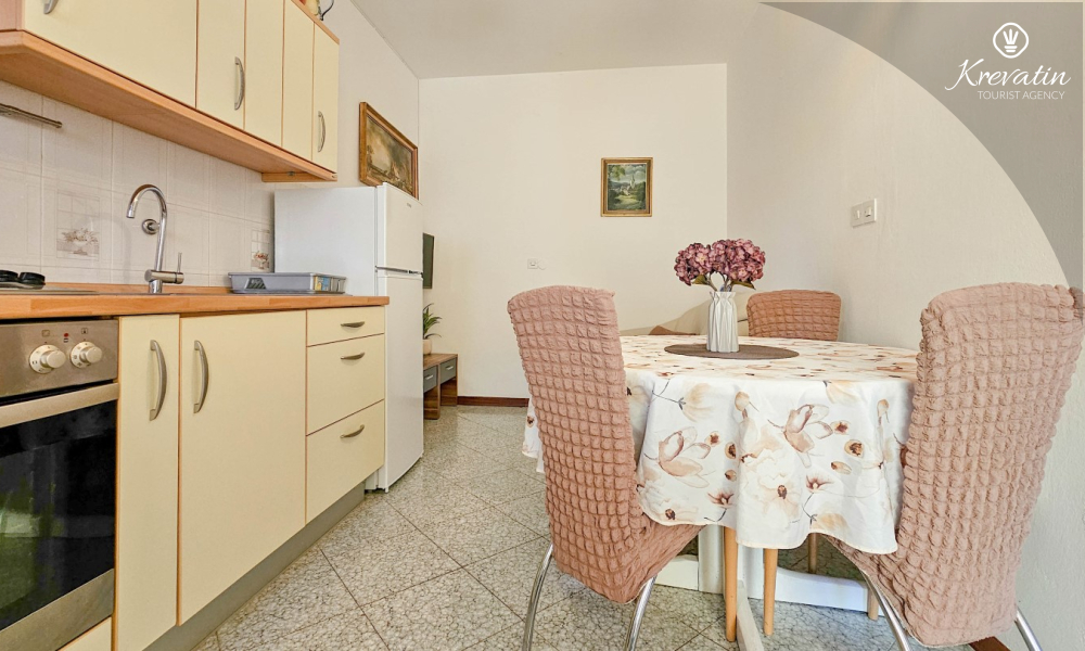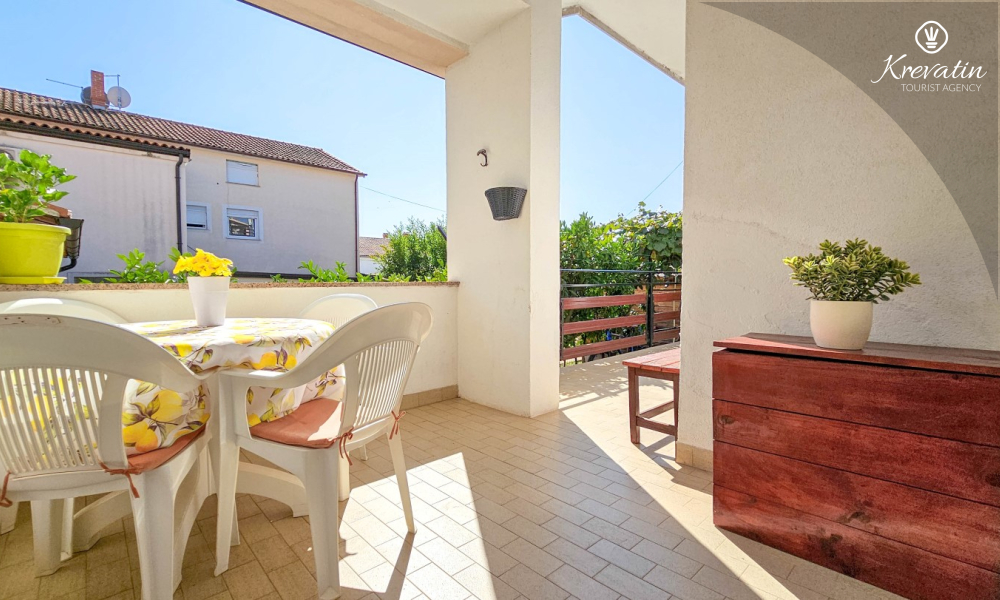 Das Apartment ist ideal für vier Personen und verfügt über zwei komfortable Schlafzimmer mit Doppelbetten, ein Wohnzimmer, eine mit grundlegenden Annehmlichkeiten ausgestattete Küche und ein praktisches Badezimmer mit Dusche und WC. Die Außenterrasse mit einem schönen Tisch und Stühlen lädt zum Entspannen im Freien und Genießen der warmen istrischen Abende ein.