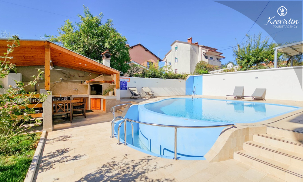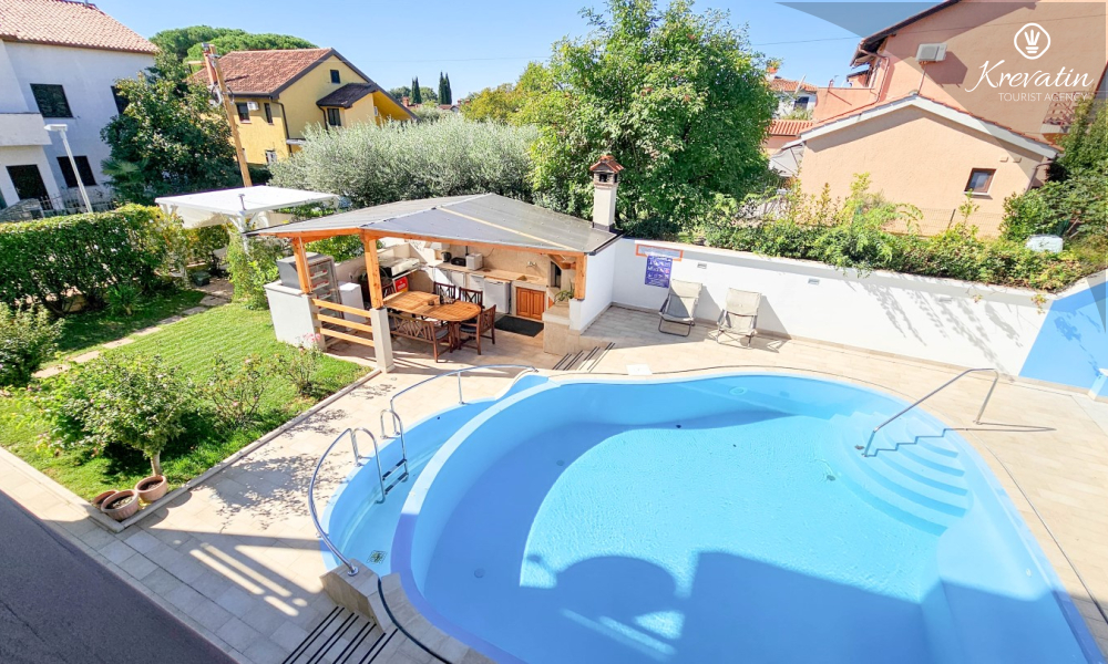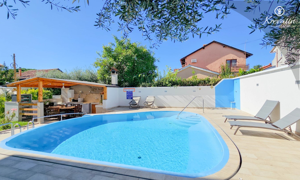 Das Haus verfügt außerdem über einen Swimmingpool und eine Terrasse mit Sommerküche und Grill, die mit den anderen Gästen geteilt werden.