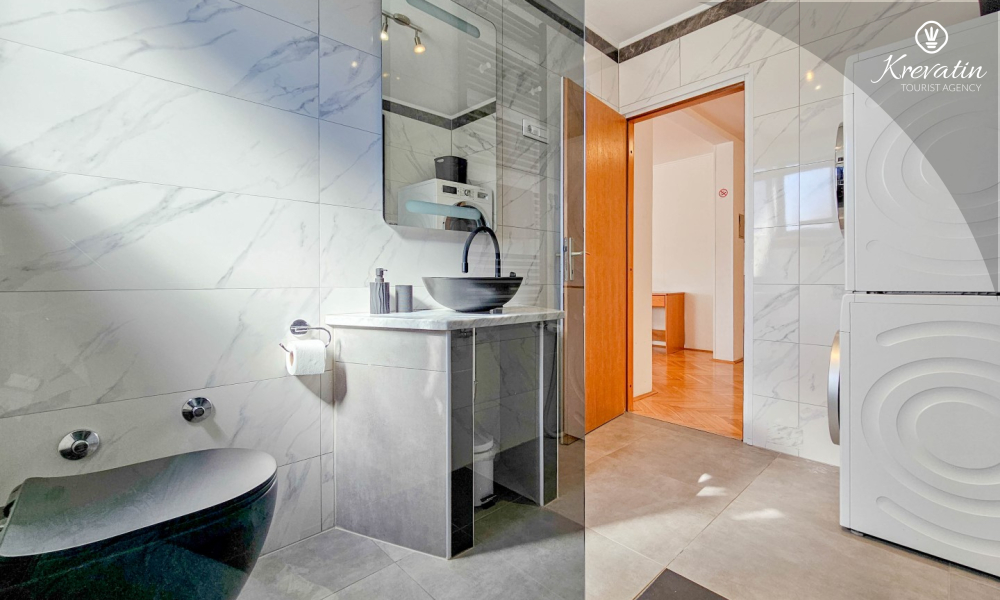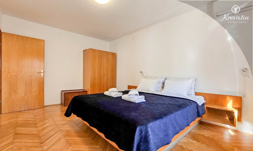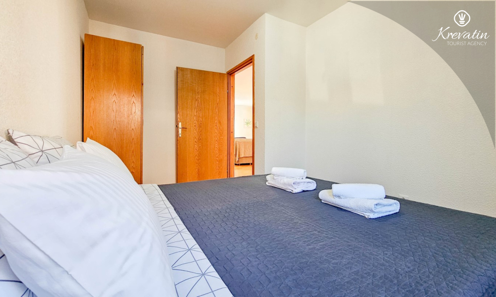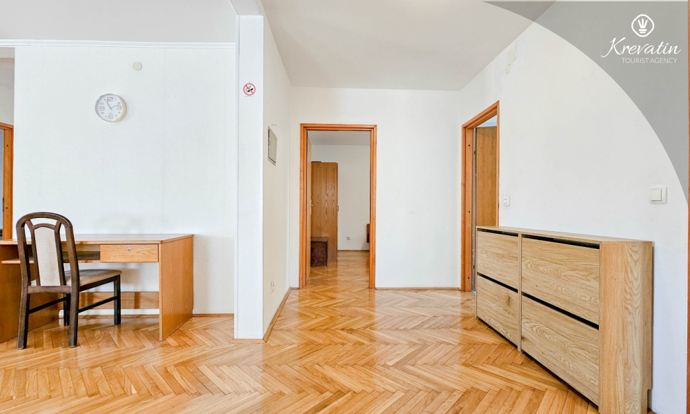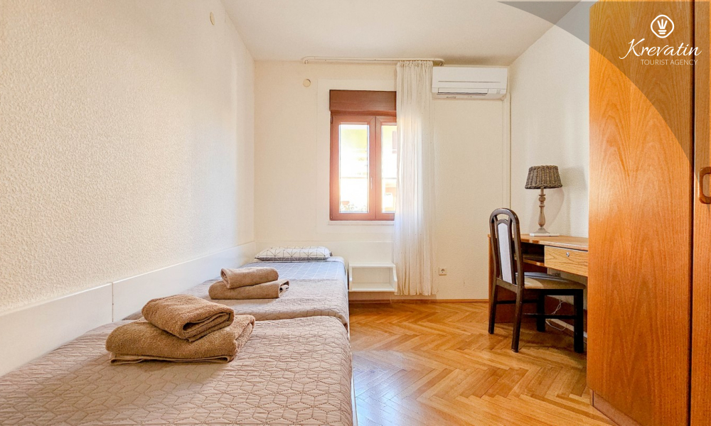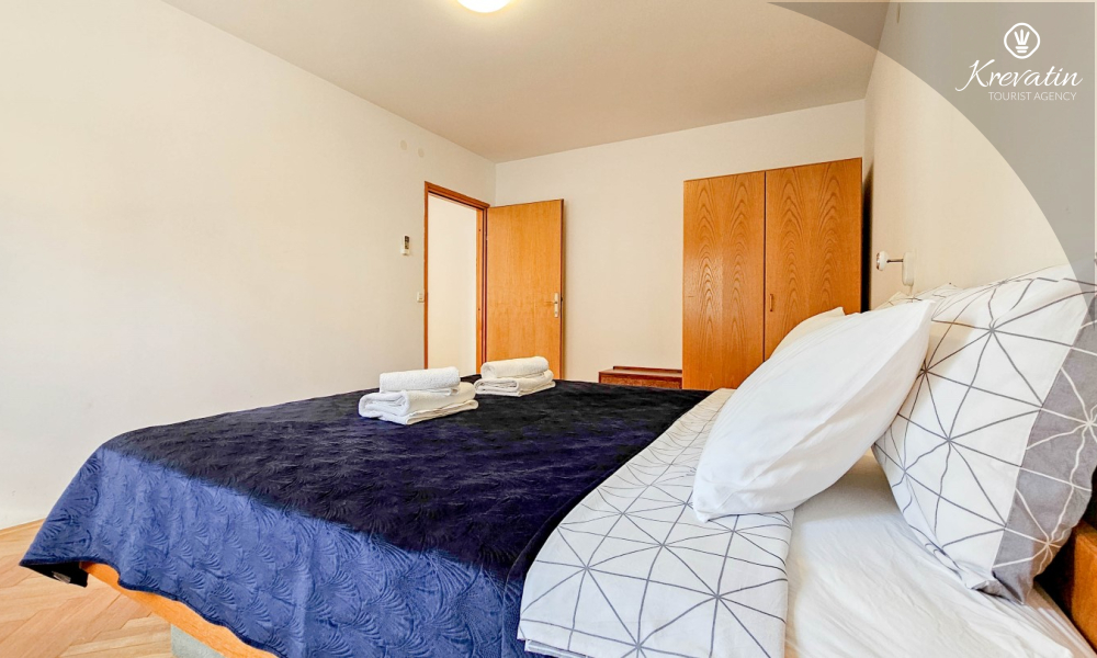 Sie verfügt über drei Schlafzimmer, ein großes Wohnzimmer mit Essbereich und Küche sowie zwei Badezimmer mit Dusche und WC. Im Wohnzimmer können zwei weitere Personen übernachten. Ein geräumiger Balkon mit Blick auf die Stadt lädt zum Verweilen ein und ist ideal für den Morgenkaffee oder gemütliche Abende.