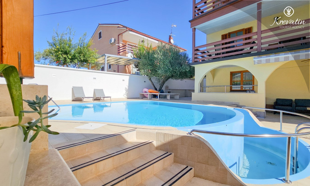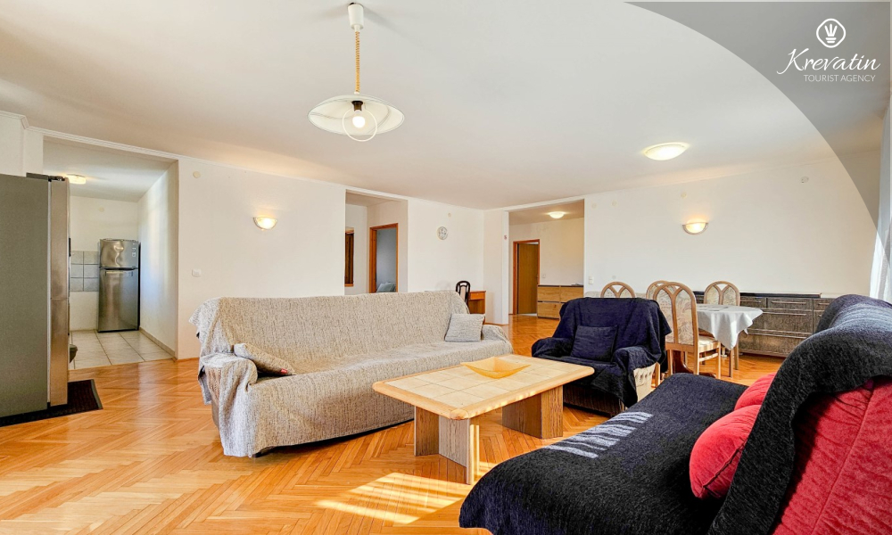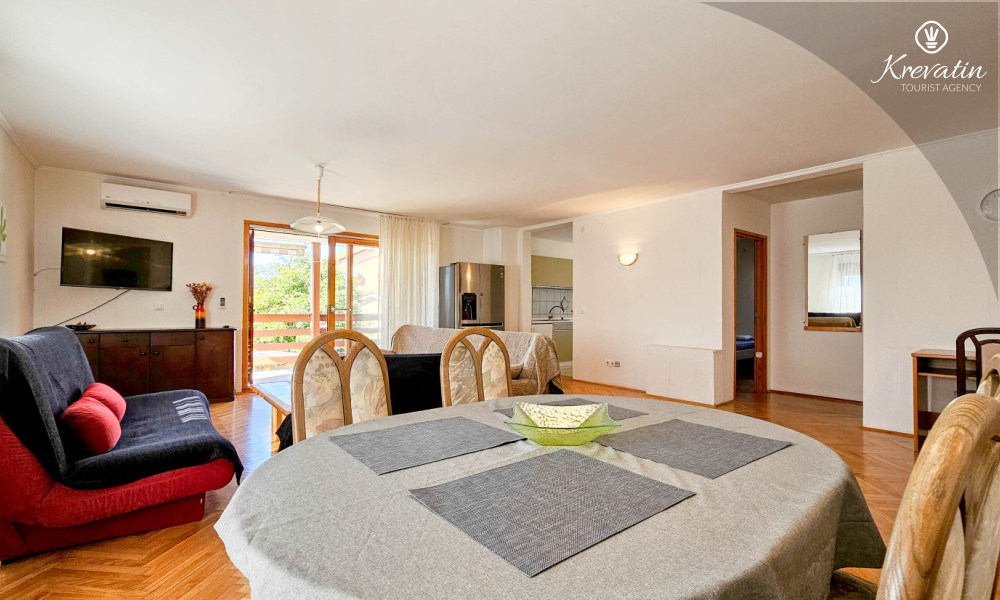 Diese geräumige Wohnung für 6 bis 8 Personen befindet sich im ersten Stock eines Mehrfamilienhauses in einem ruhigen Viertel von Novigrad.